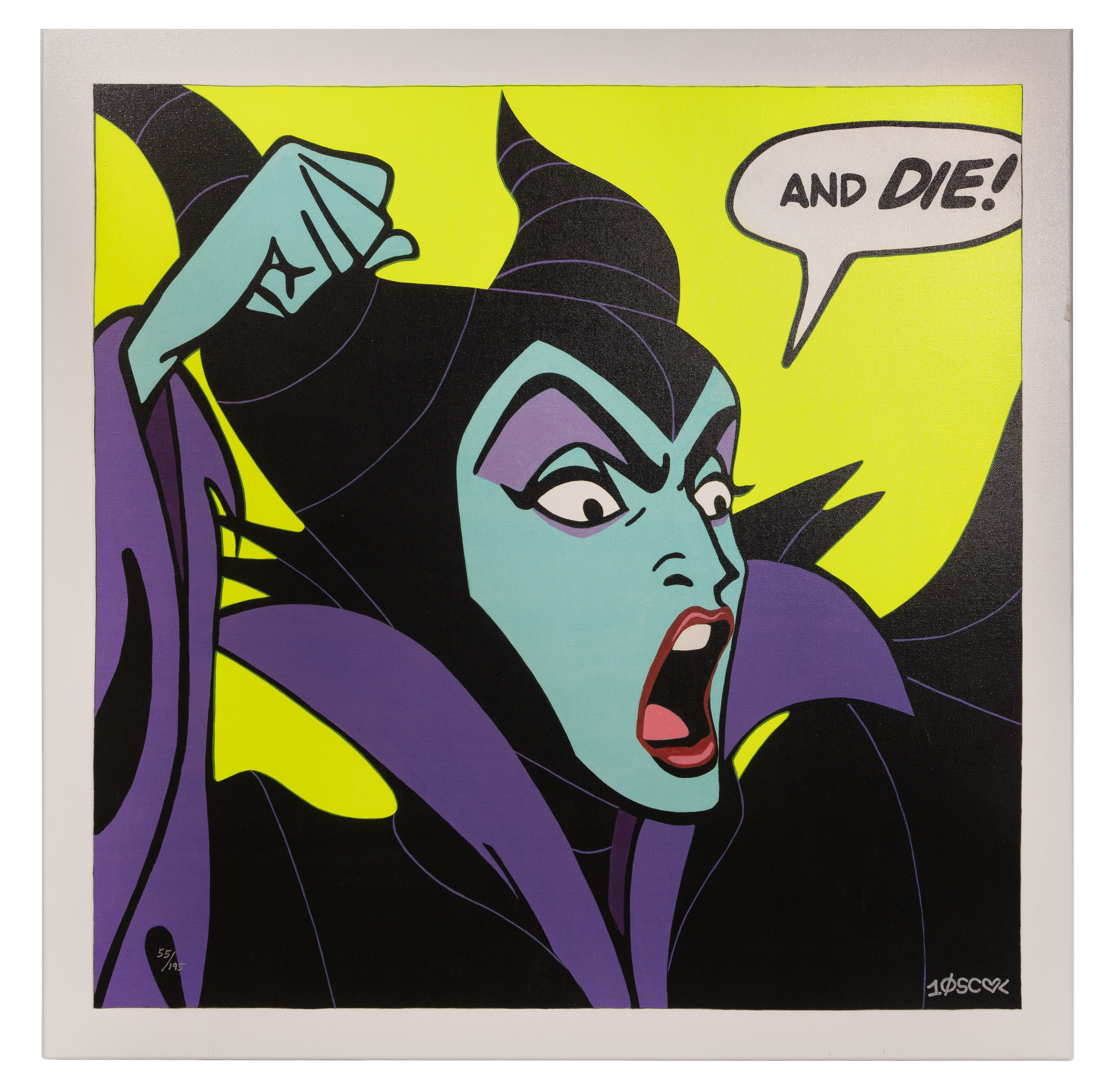 Undated, ink artist cypher lower right, #55/195 lower left, depicting Maleficent, gallery wrapped canvas on stretcher, unframed