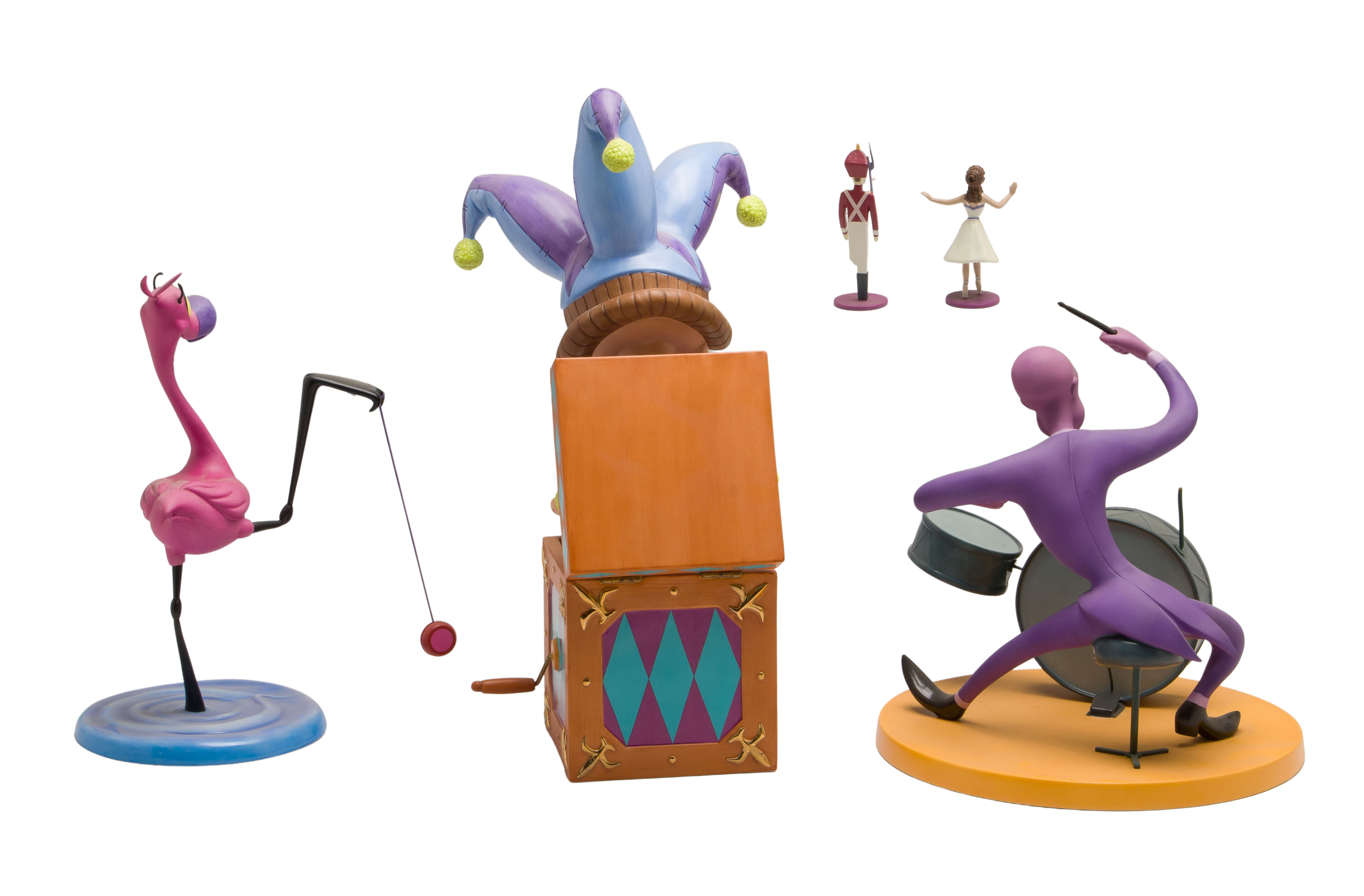 (5) total items including a porcelain and metal 3-piece #1217314 ‘Jealous Jack’ set having a box, a porcelain ‘Flamingo Fling’ and a porcelain ‘Drumming up a Dream’