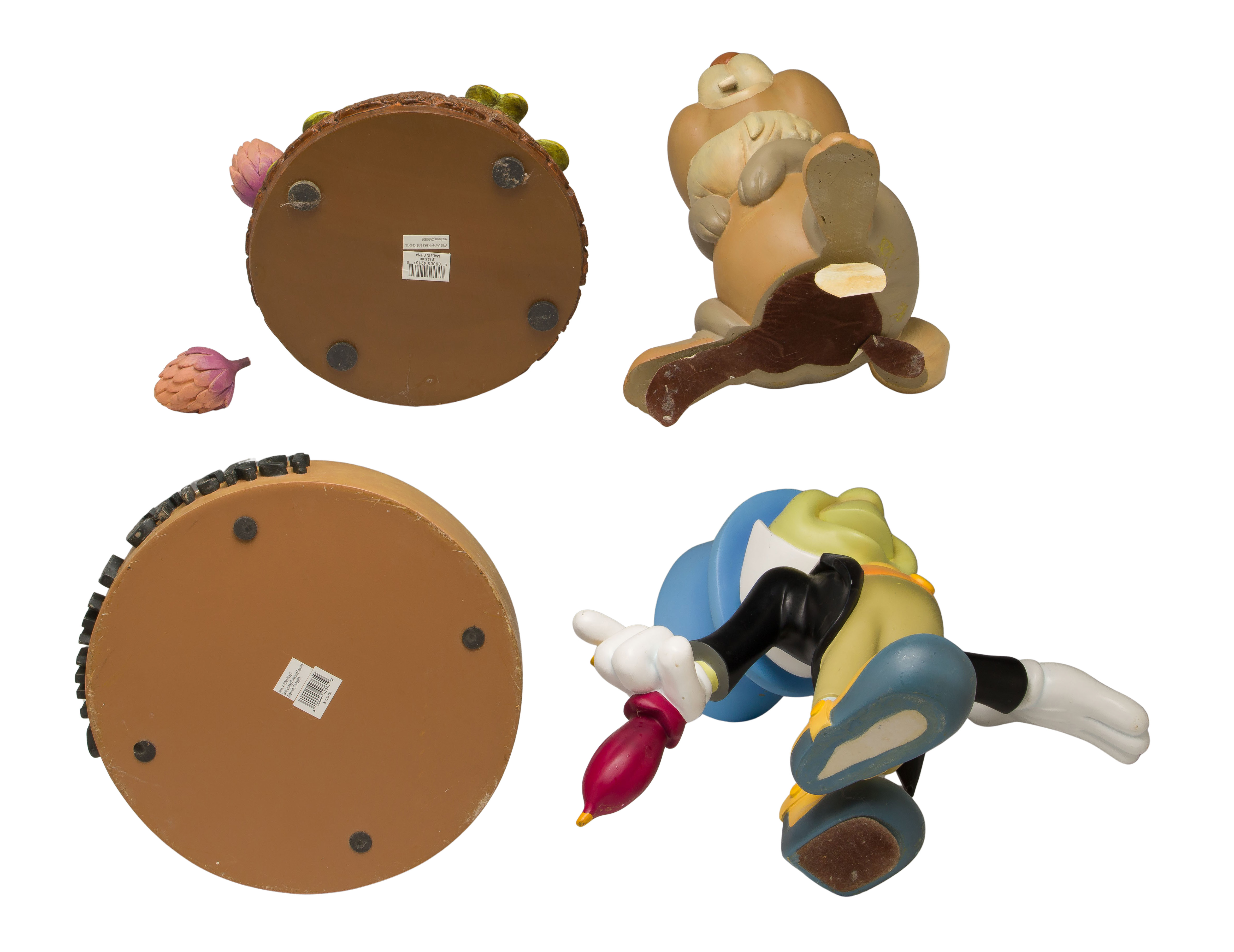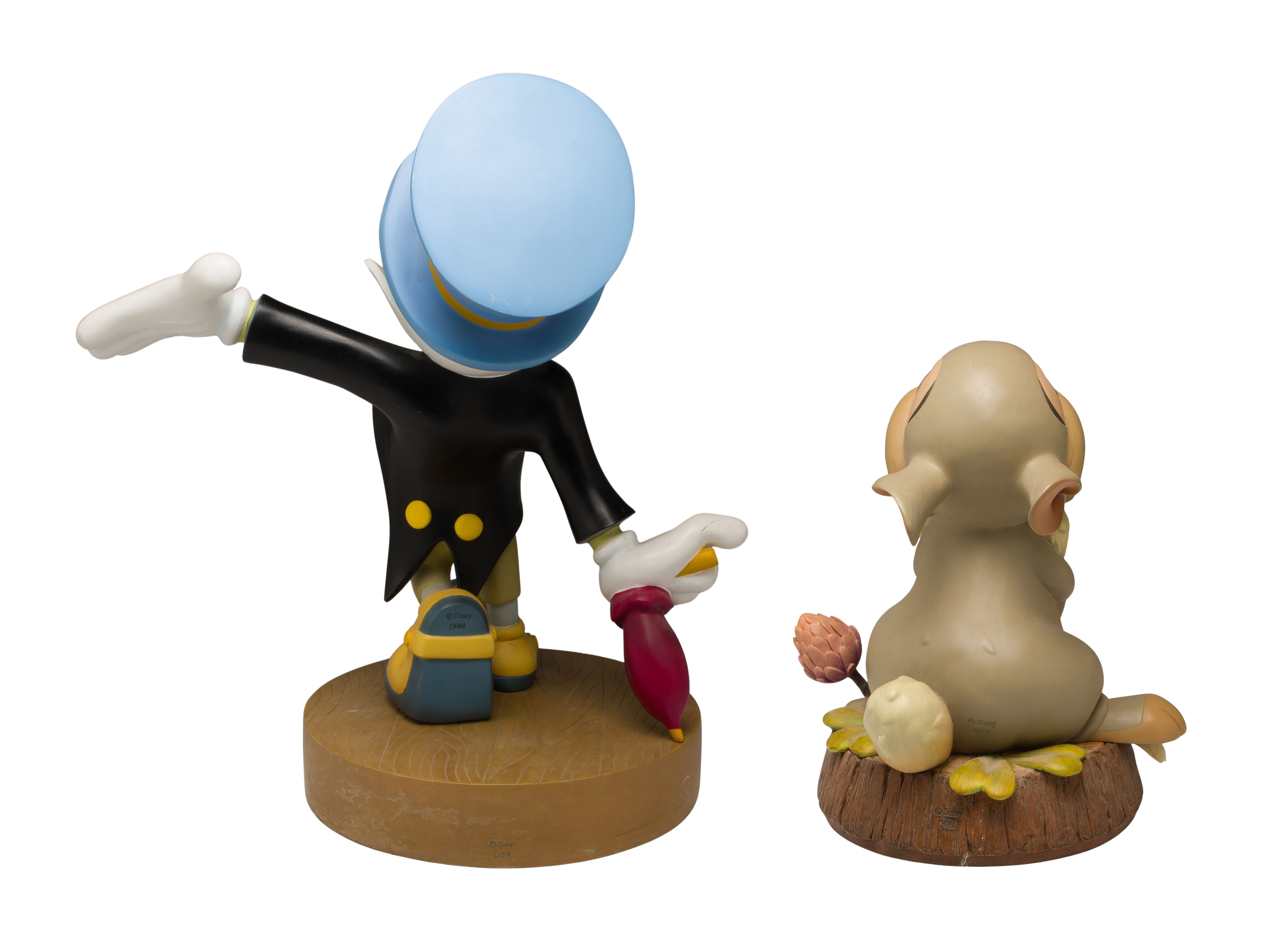 (2) porcelain items including Thumper from ‘Bambi’ having a 9-inch diameter base as well as a Jiminy Cricket from ‘Pinocchio’ on a base bearing his name, both items stamped ‘Disney’