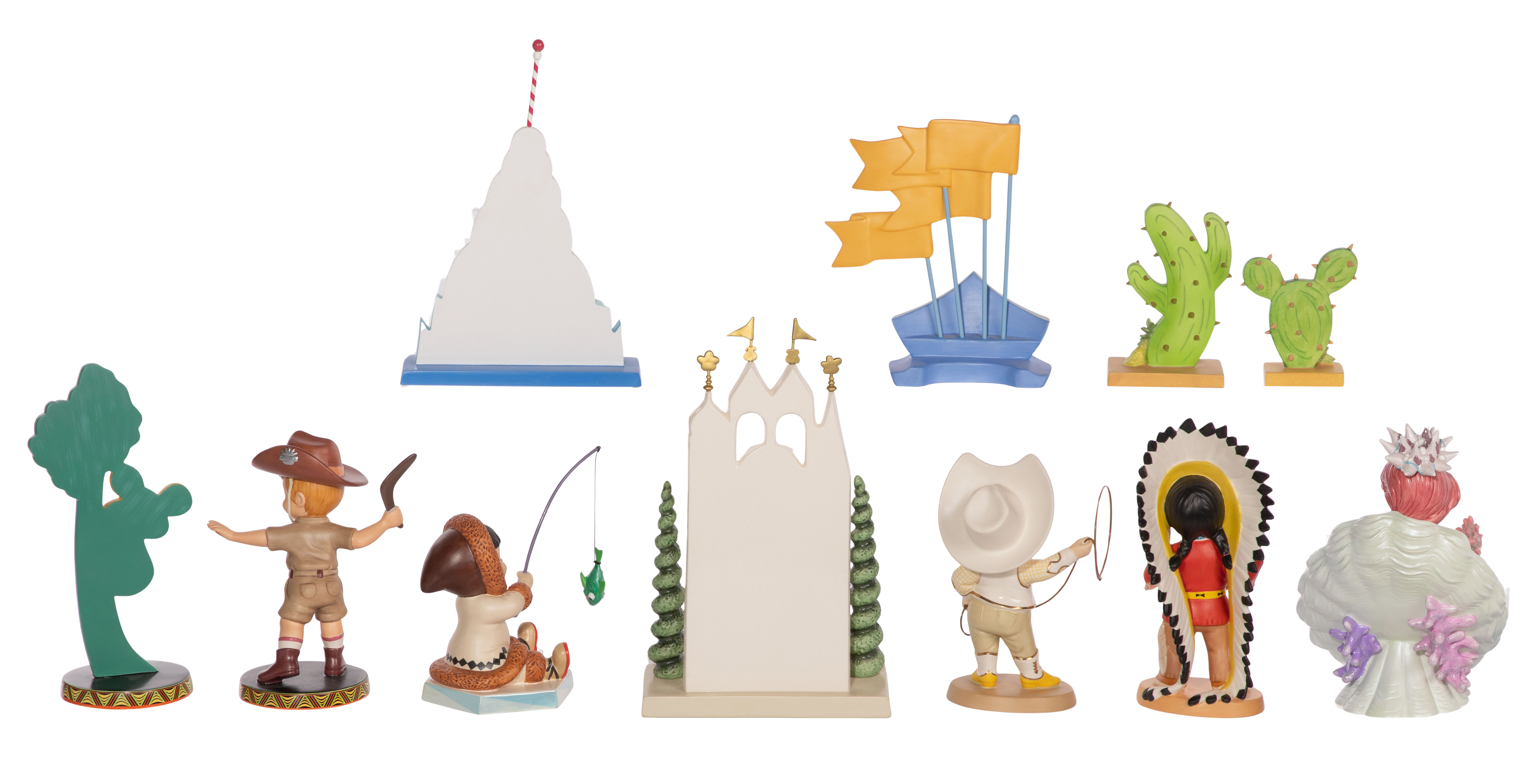 (11) porcelain and resin items including #1231969 ‘Howdy Partner’ and ‘Mickey Cactus’, having boxes, as well as the flag ship, Australia, an igloo, the Glockenspiel and other figures, all marked on underside