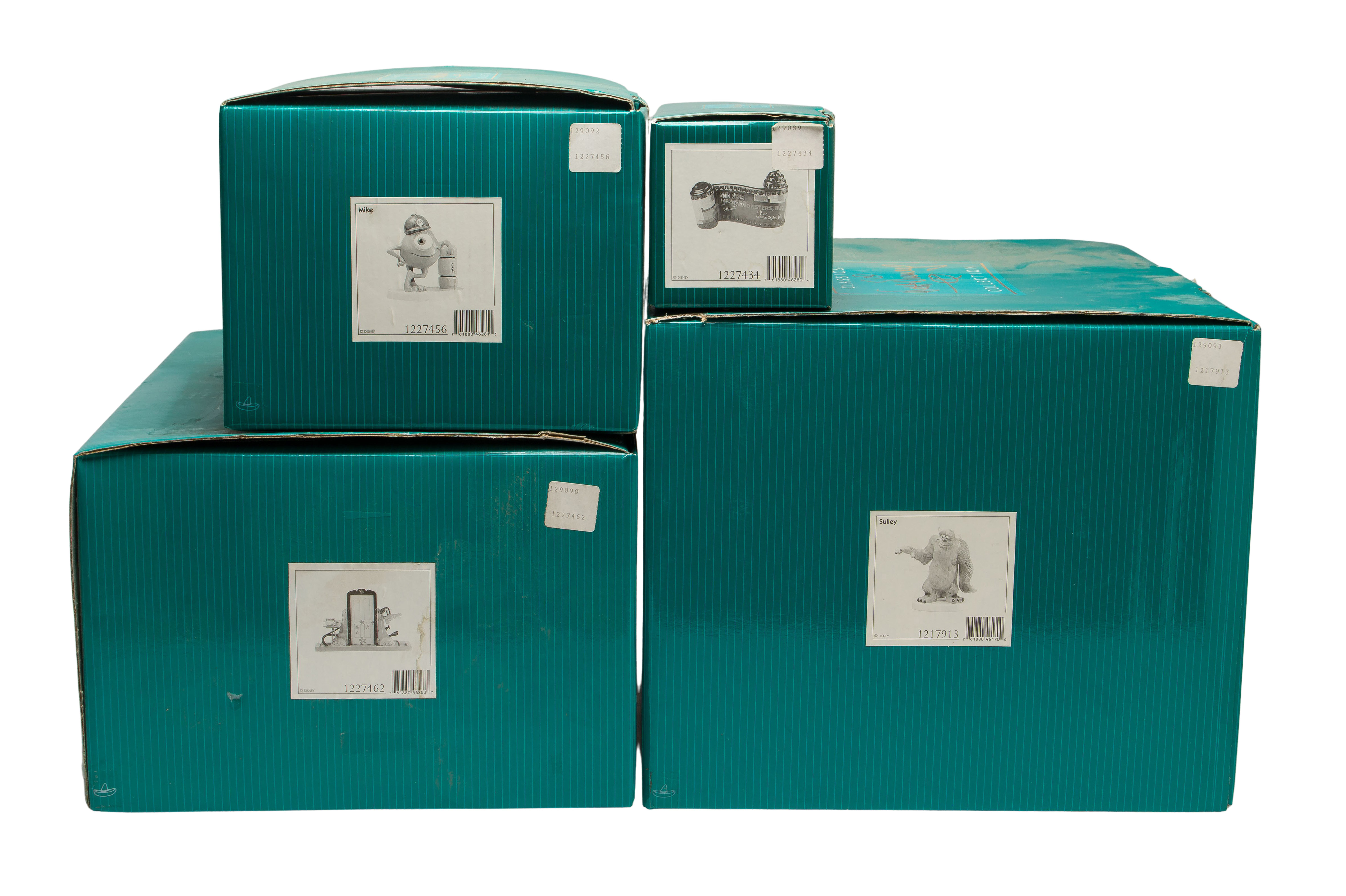 (7) porcelain items including #1227456 ‘It’s Been Fun’ Mike, #1217913 ‘Good Bye Boo’ Sulley, #1227462 ‘Boo’s Door Station’ and #29091372 ‘Opening Title’ plaque, having original packaging and boxes as well as unboxed items including ‘Slitherly Scarer’ Randall, ‘Tiny Terror’ Boo and ‘Boo’