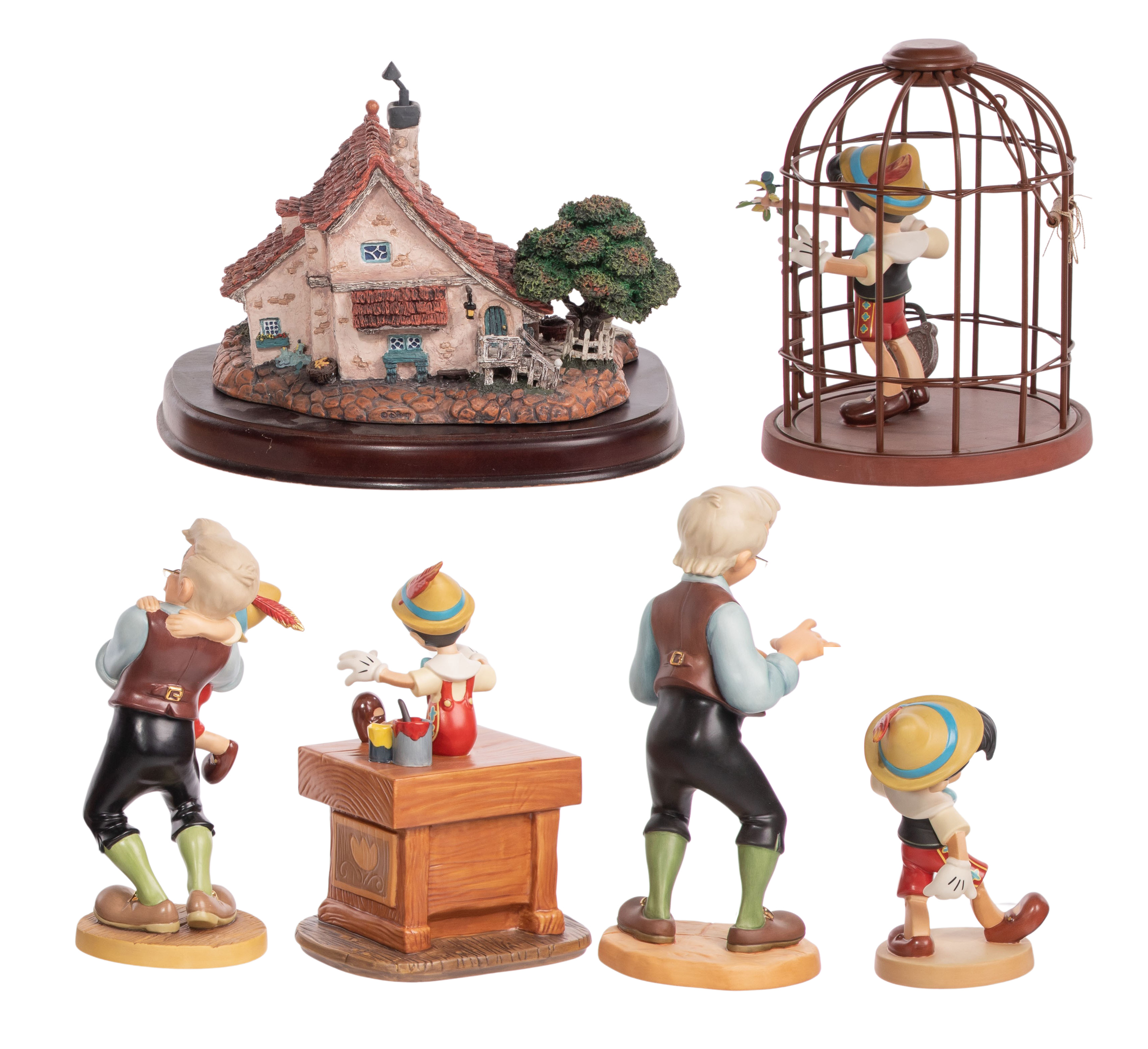 (6) items including in porcelain ‘A Fathers Joy’, #43/750, ‘Look Out World’, ‘A Gift of Life is Thine’, ‘I’ll Never Lie Again’, ‘Good-Bye Son’ and a resin ‘Geppetto’s Toy Shop’