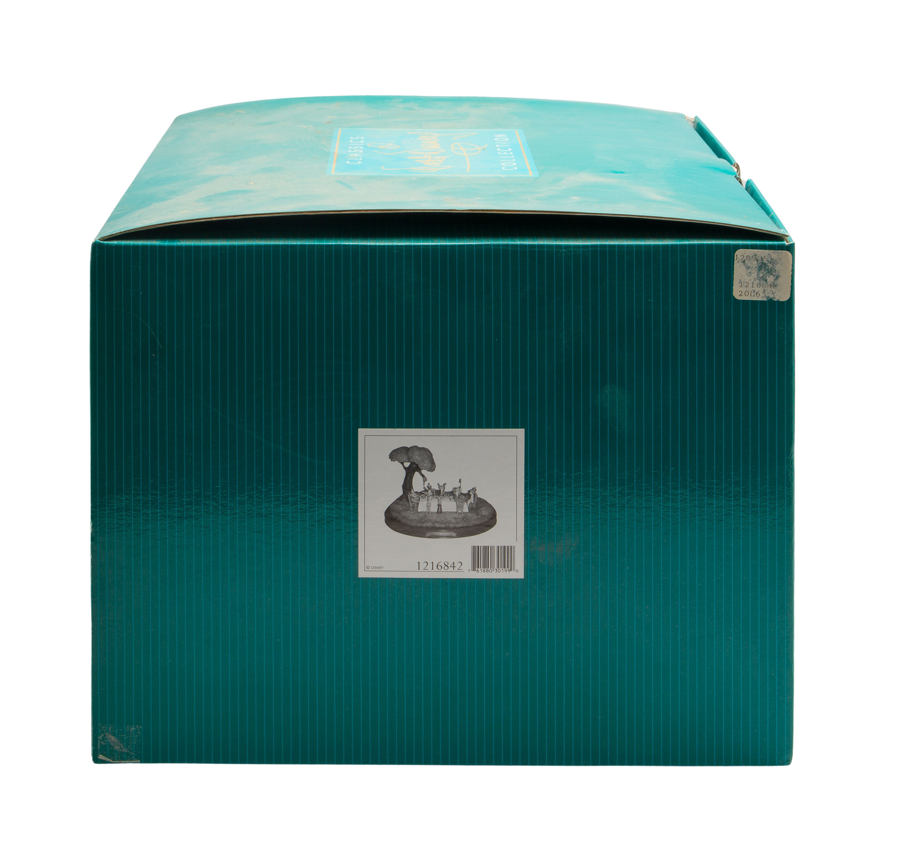 Condition: light wear overall, some trees on larger castle bent and one tree broken off, minor scuffs on box