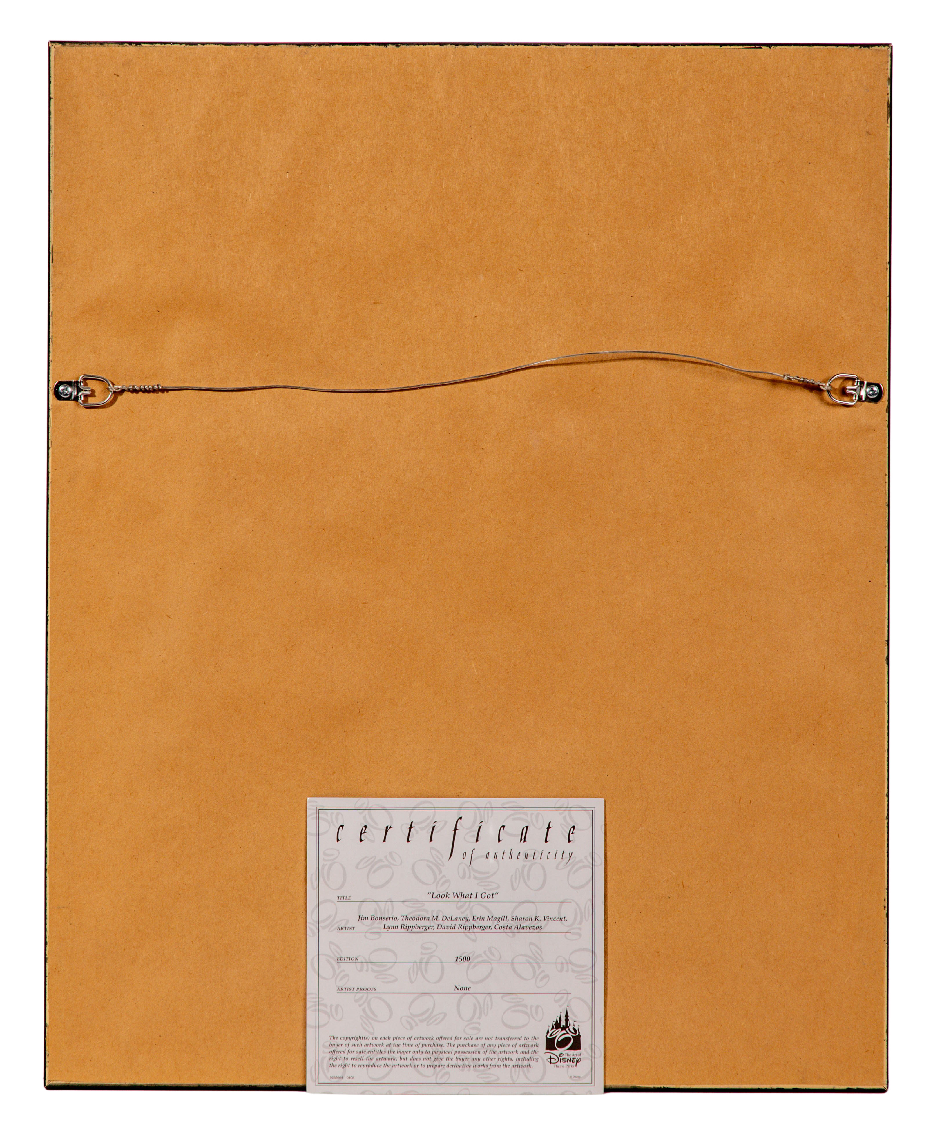 (2) items including 2005 ‘All Mixed Up’ and 2011 ‘Look What I Got’ from an edition of 1500, having COA verso, each having a sericel, pin and card ink signed by animation artists, matted behind acrylic in black wood frames