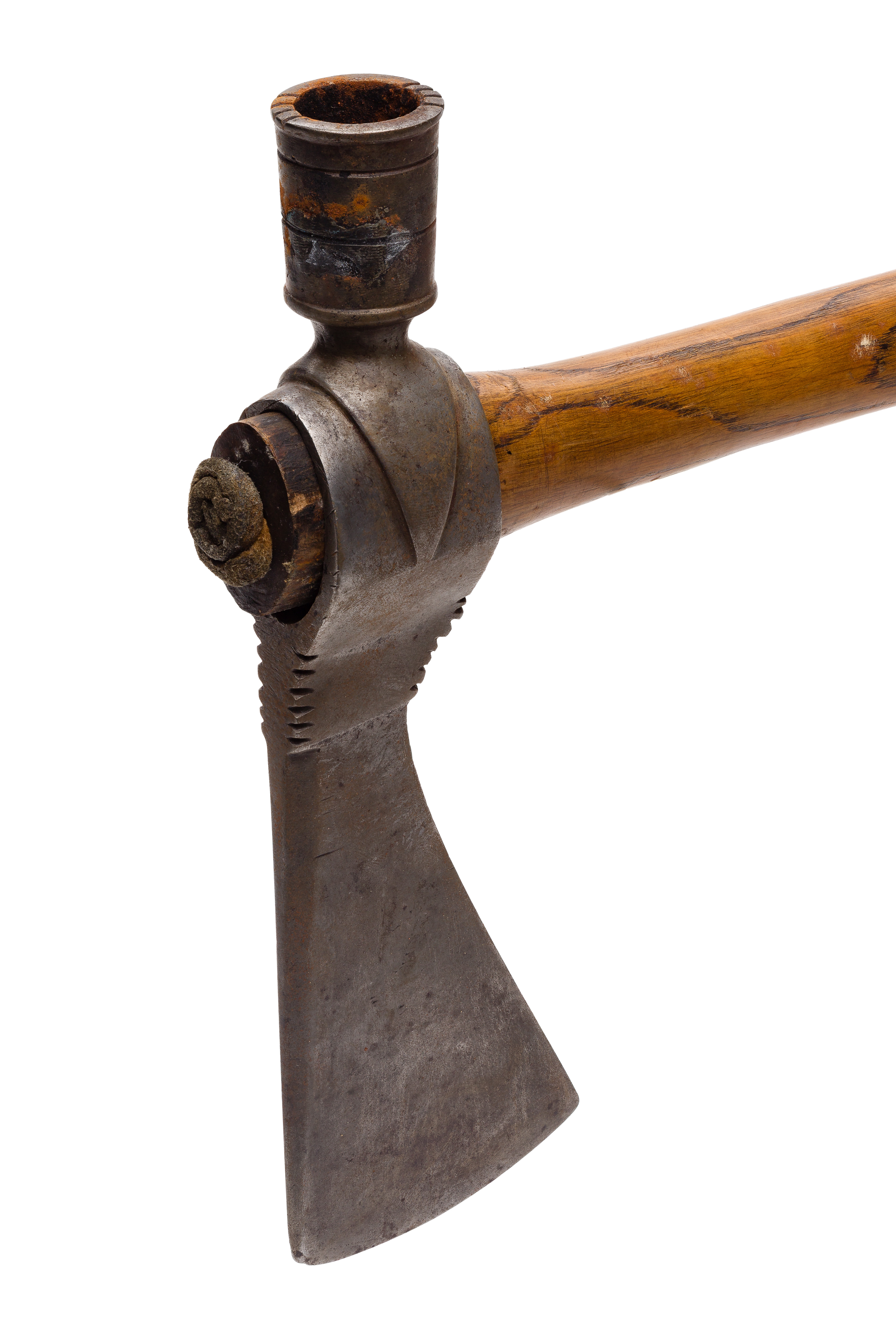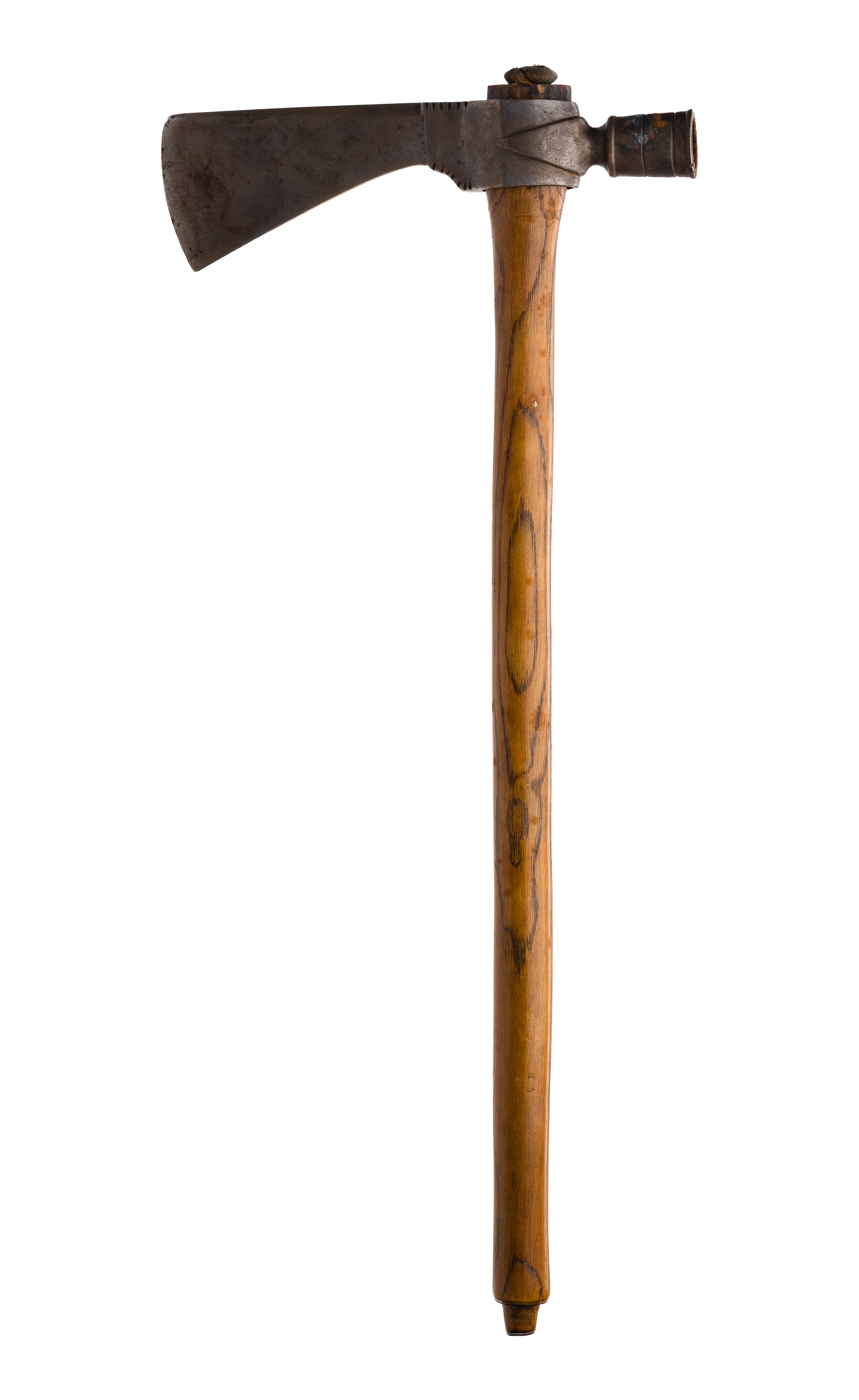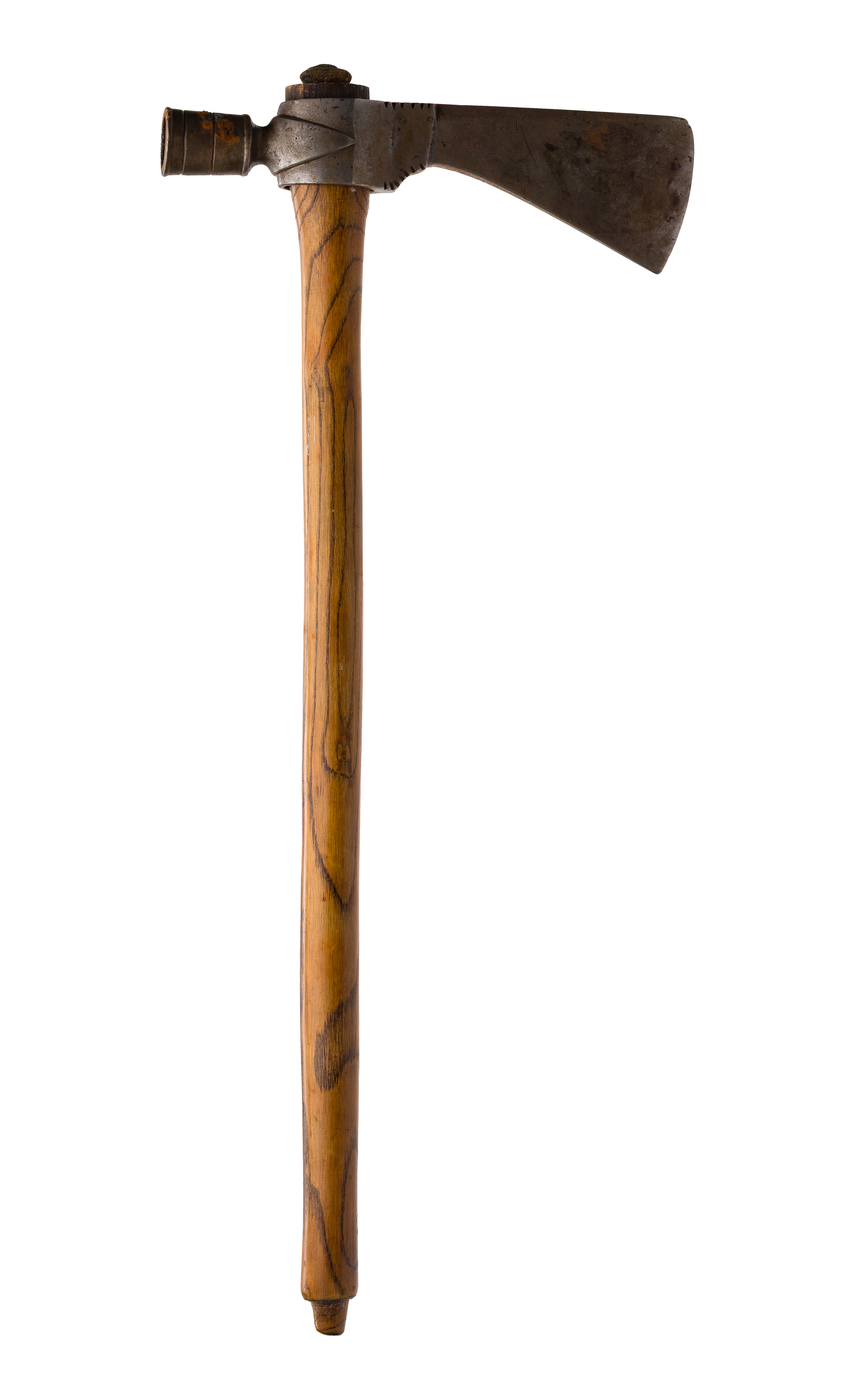 Forged steel on an ash wood stem / handle having a buckskin clean-out plug, in a style commonly attributed to the War of 1812 era