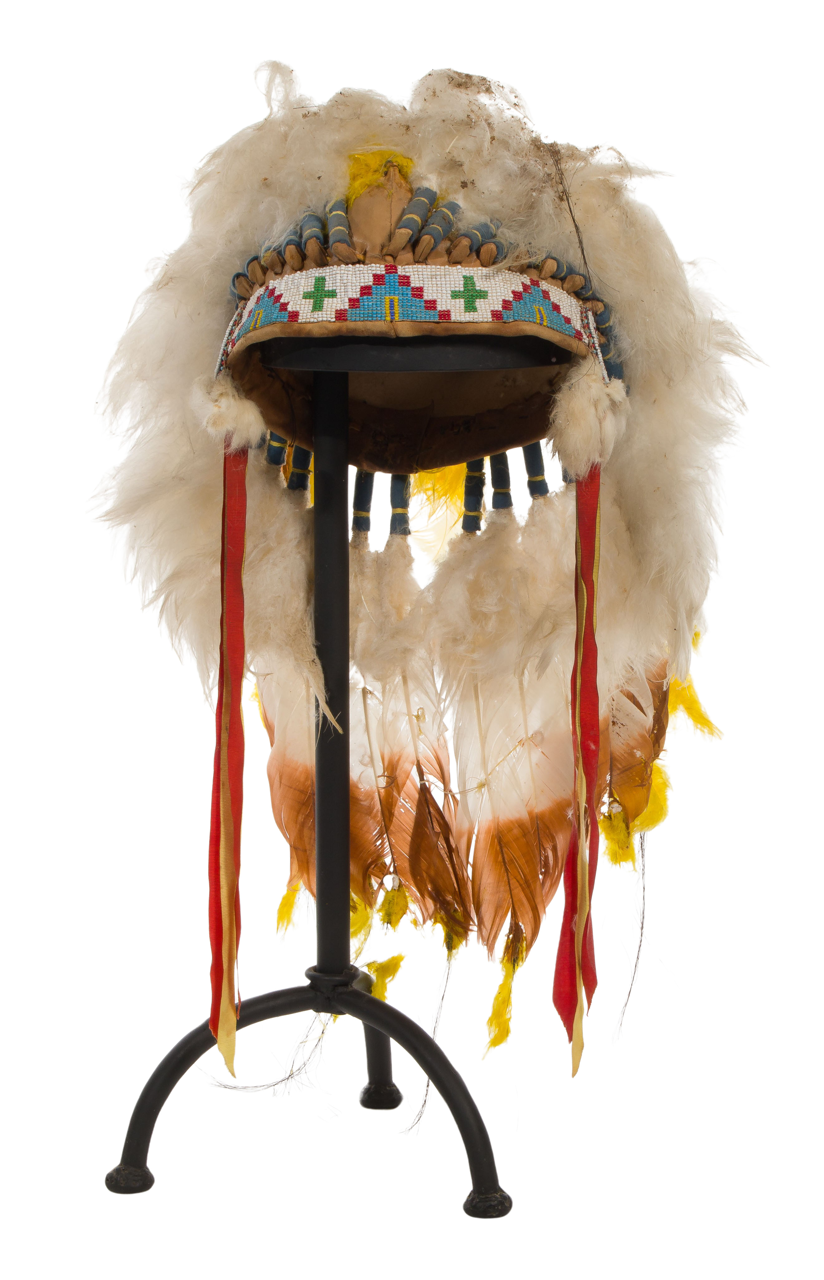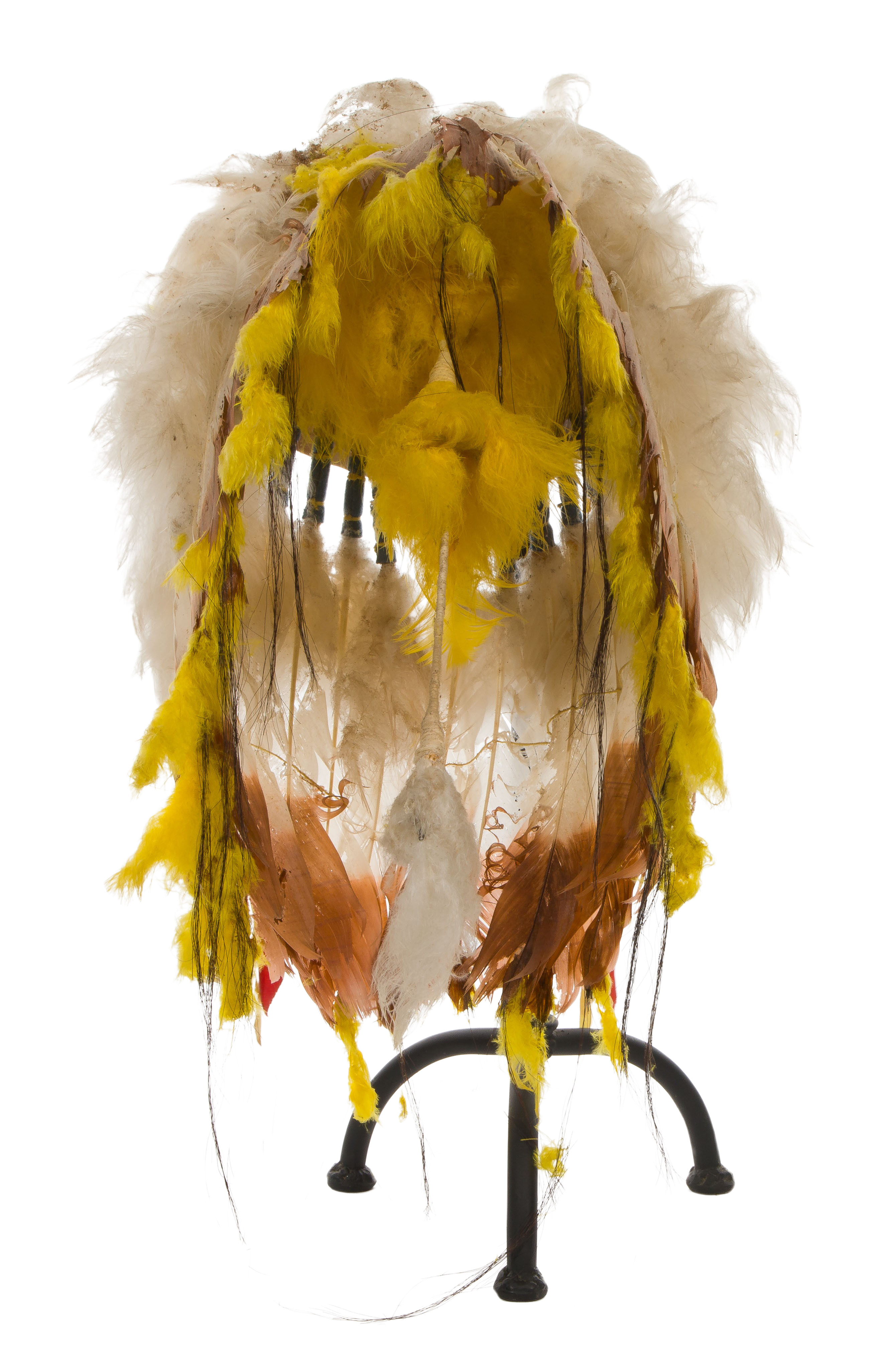 Condition: light wear to the beadwork, feathers are dirty and damaged