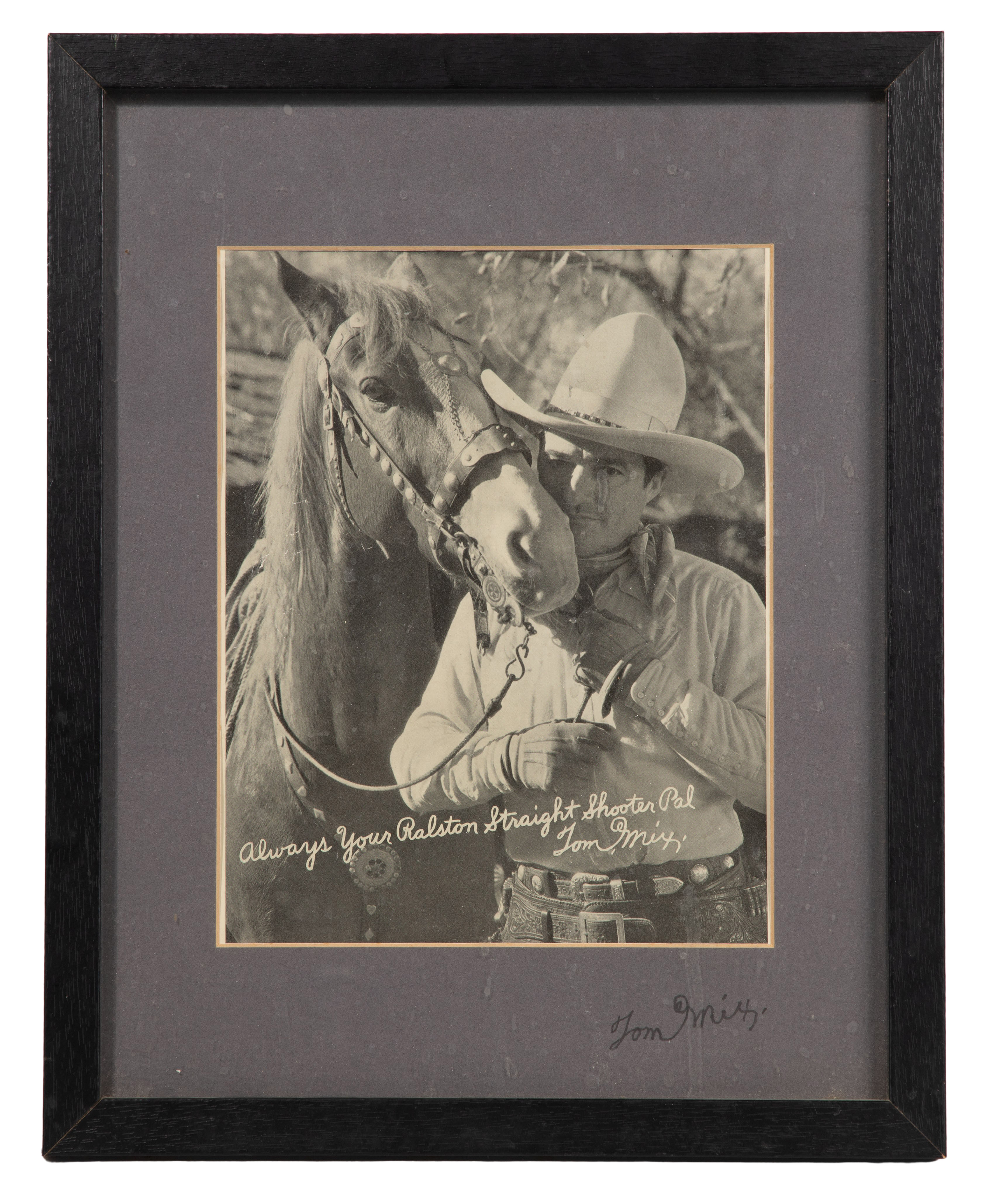 Having a printed signature on photograph, hand signed in marker on mat, in black wood frame