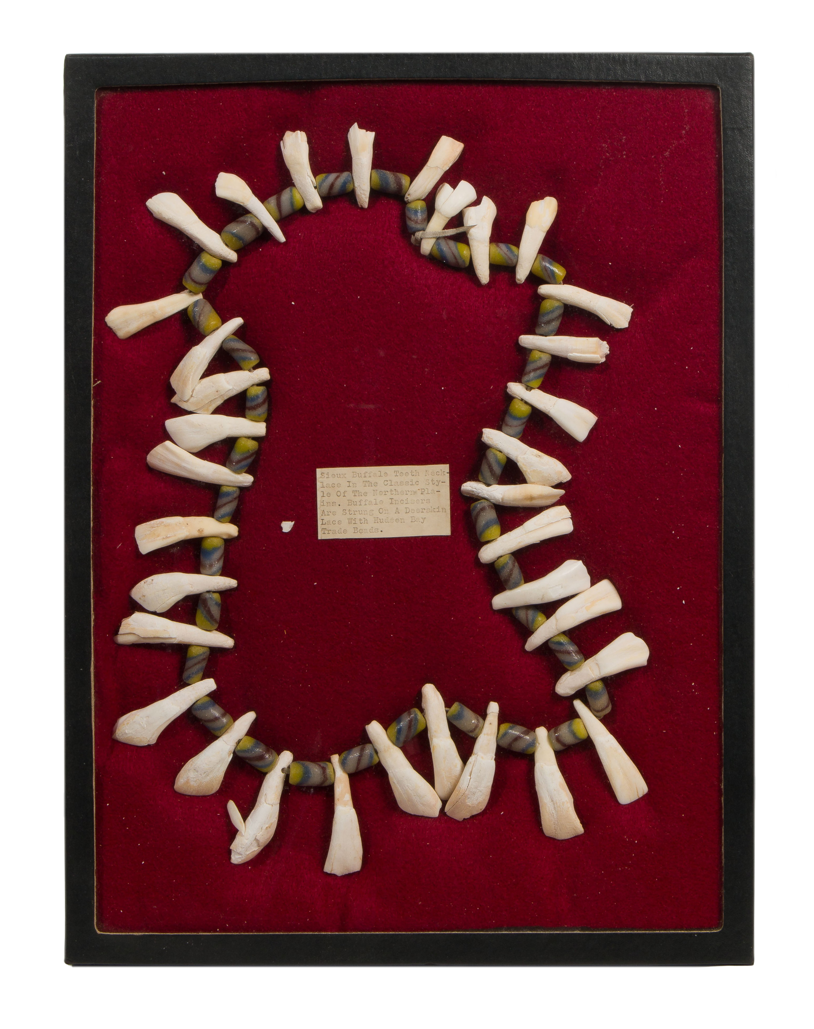 Having buffalo incisor teeth, Hudson Bay trade beads, strung together on a deer skin leather cord