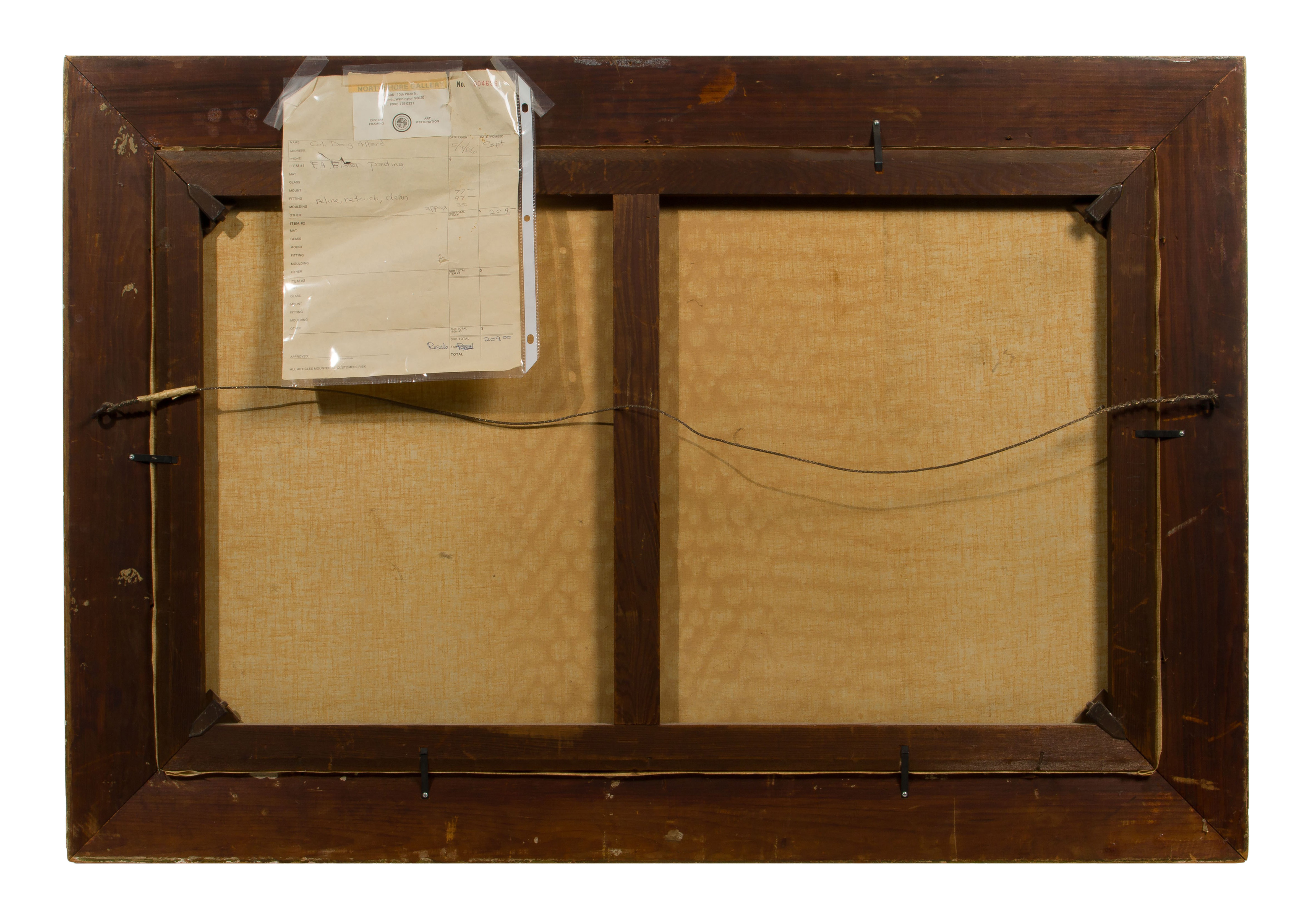 Condition: relined and cleaned, inpainting, frame having moderate wear and chips to gesso