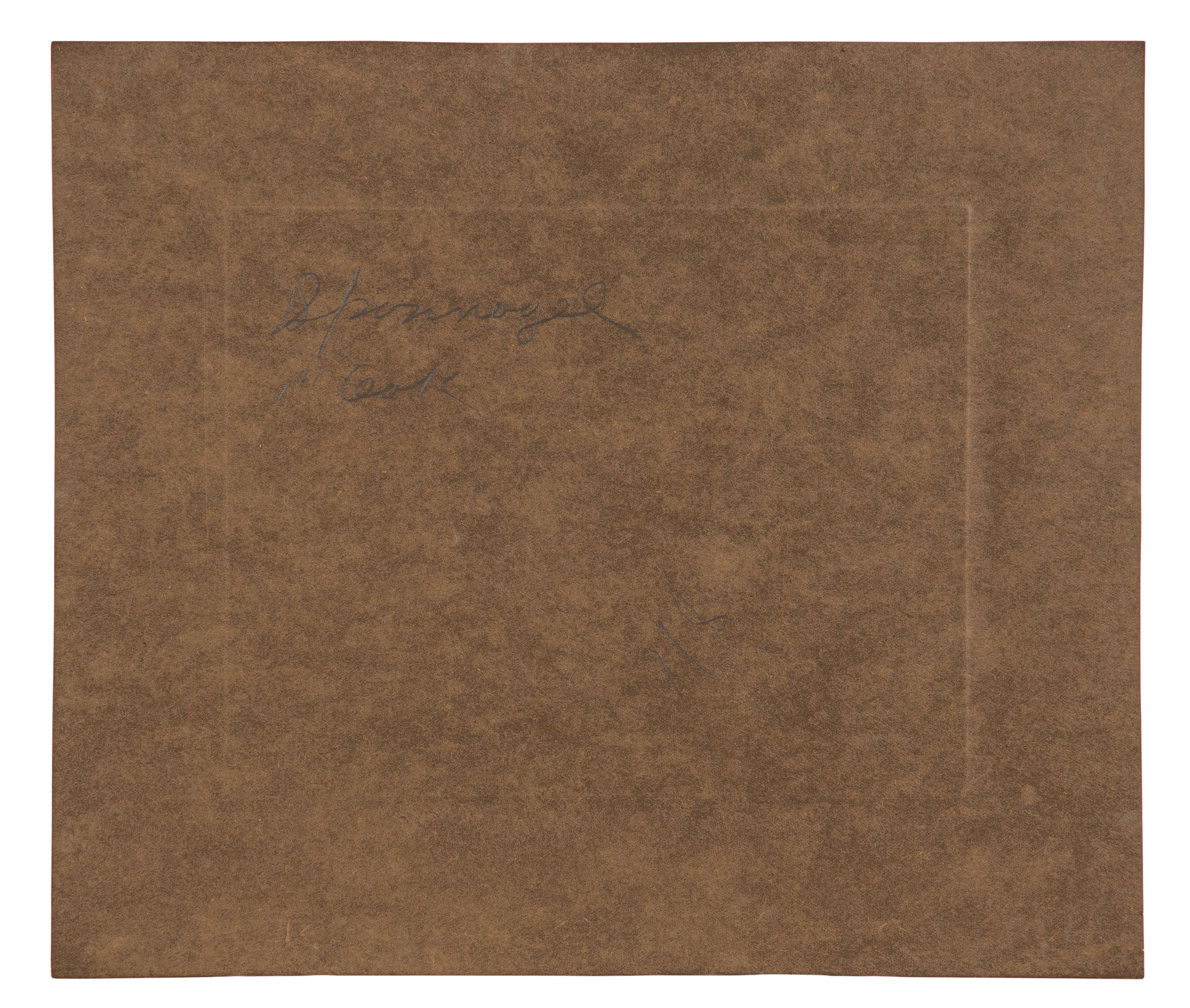 Condition: glued down to paper backing, frame having chips, tears to backing of frame
