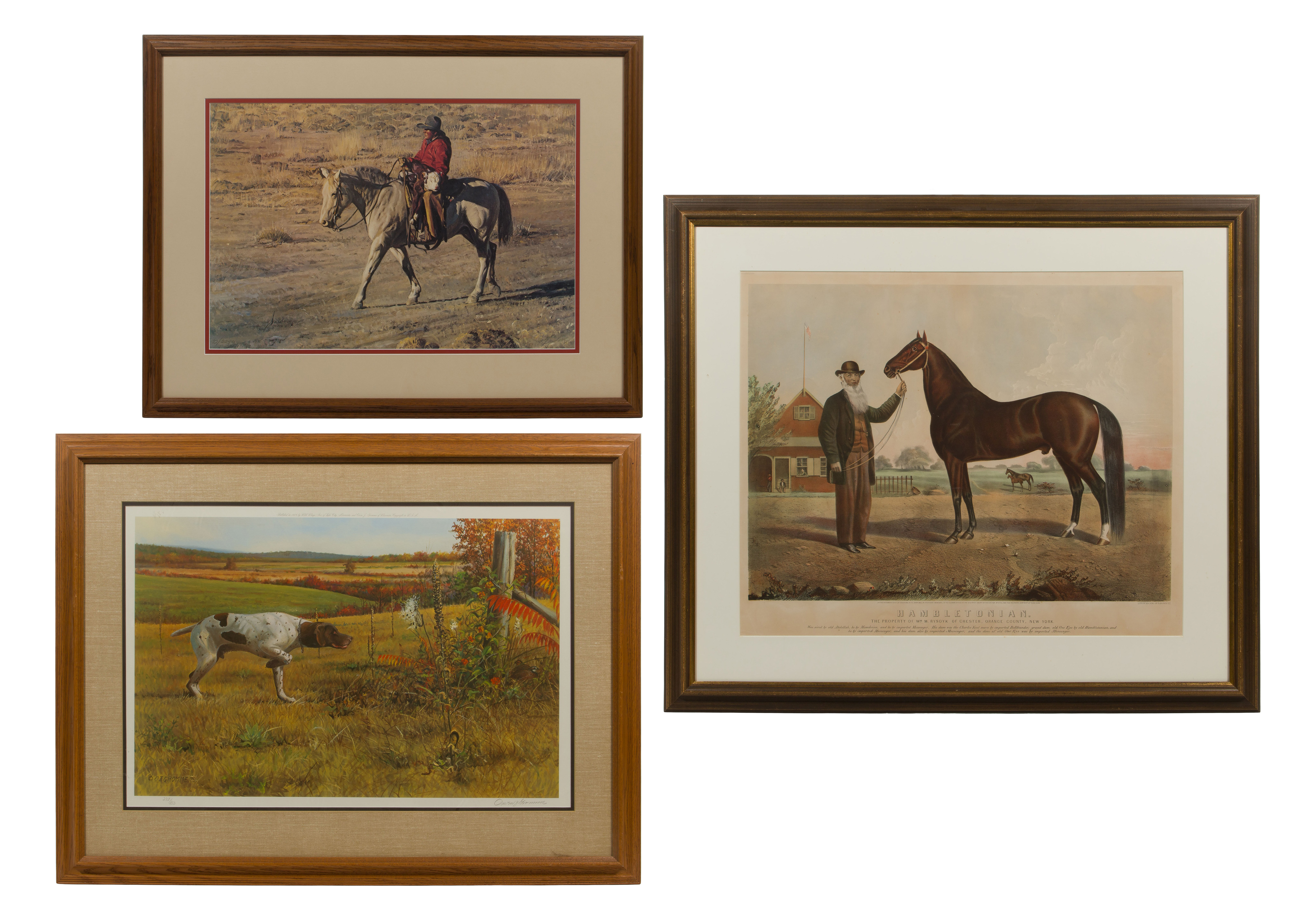 (3) total items including Gordon Snidow (American, b.1936) 1976 ‘The Littlest Straggler’ #92/2250 and Owen Gromme (American, 1896-1991) 1978 ‘German Shorthaired Pointer’ offset lithographs; together with a Currier & Ives ‘Hambletonian’, all matted behind glass / acrylic in wood frames