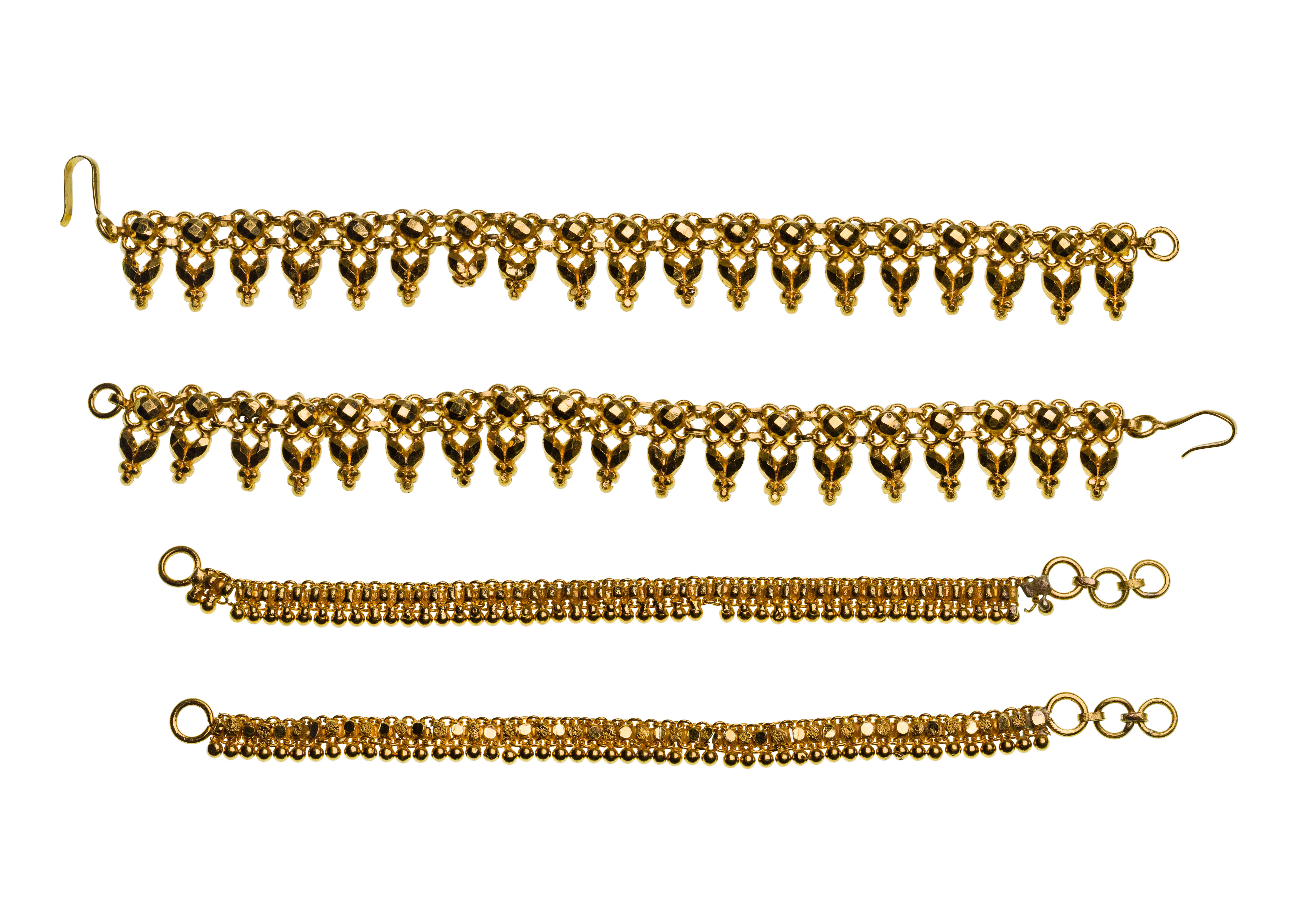 (4) item including (2) pairs of ankle chains / belt accents (unmarked 20k)