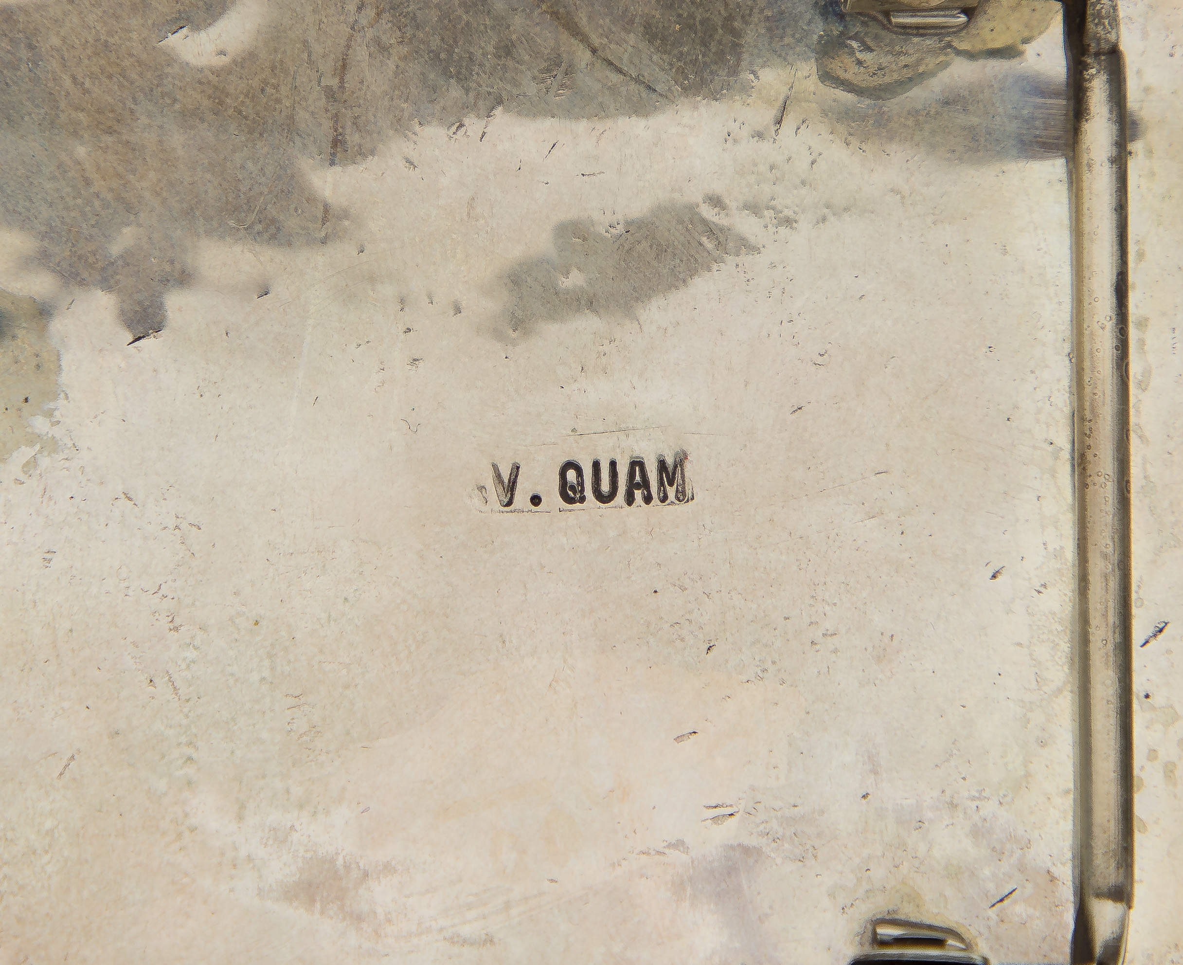 (3) items signed ‘W. & V. Quam’ (Zuni) variations including an oval belt buckle, a loose wristwatch band and a Seiko automatic wristwatch on a band having silver shoulders, all adorned with mother-of-pearl, turquoise, coral and onyx (loose band marked ‘sterling’)