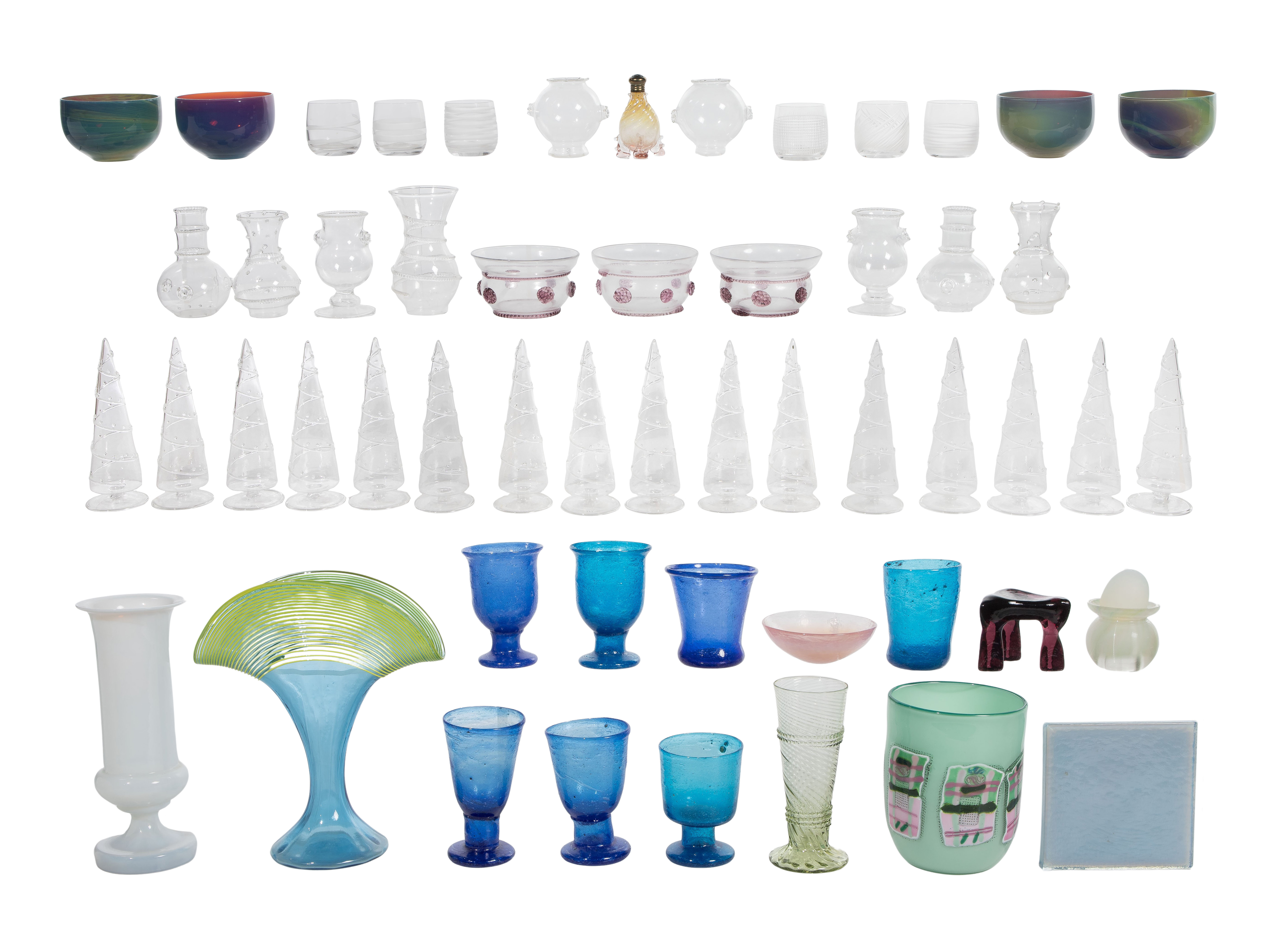 (54) items including glasses, bowls, vases, Christmas trees and cups, all in various shapes, sizes and colors