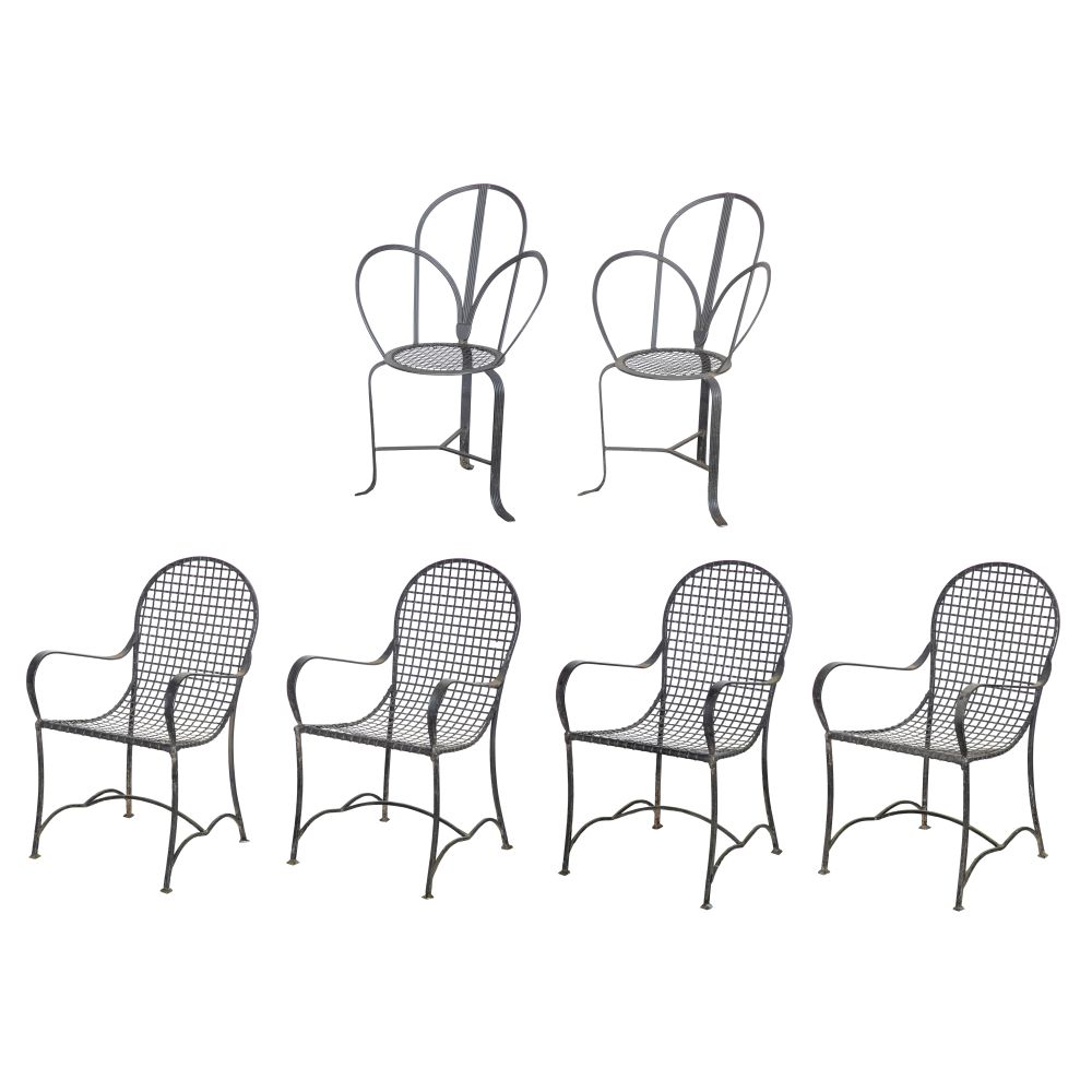 (6) items including a set of (4) having a grate design and a pair having round seats and details