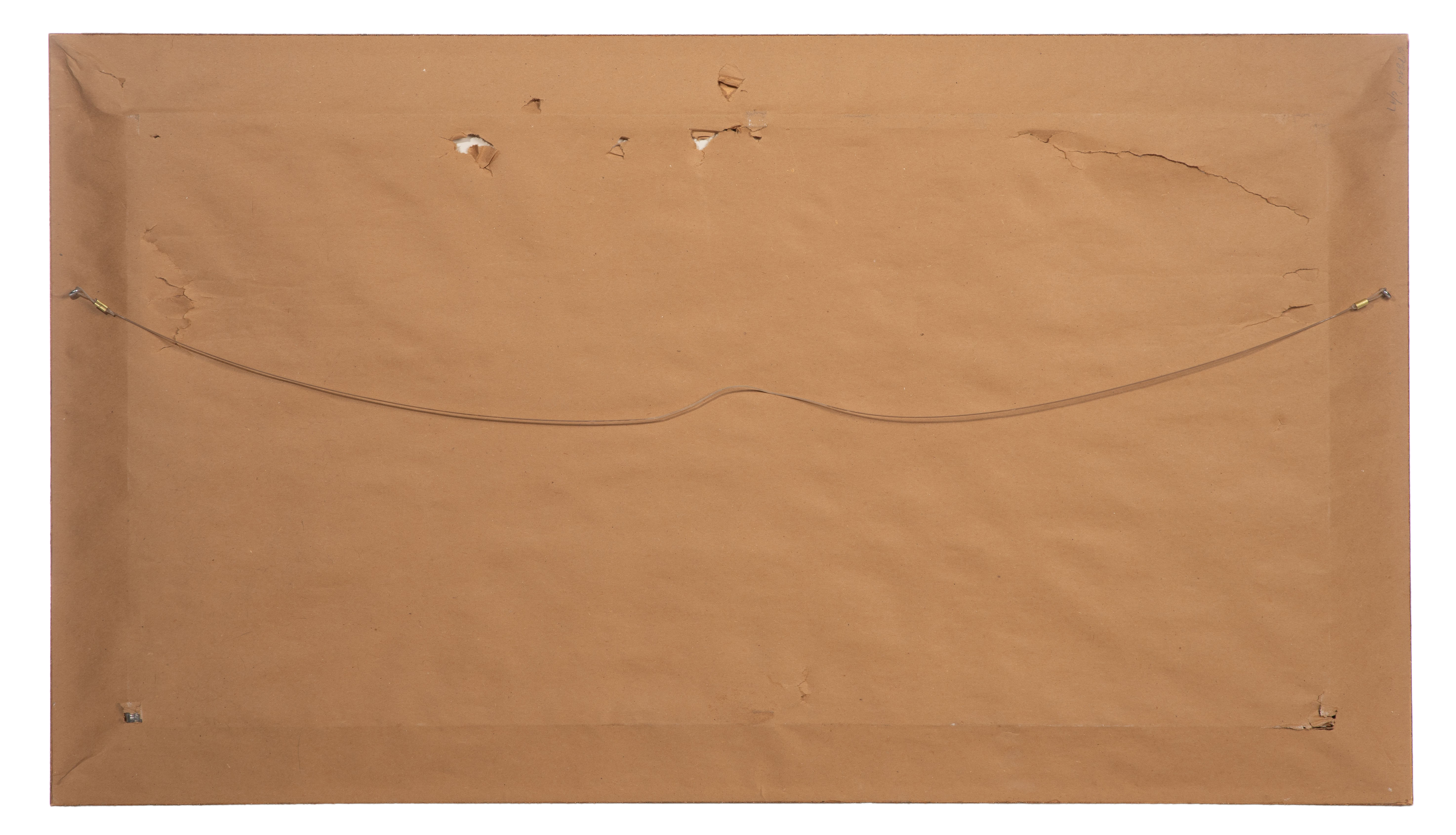 Undated, signed, depicting the Dutch North Dike having windmills and figures at the edge of the water, behind glass in a gold-tone gesso on wood frame having a brass title label