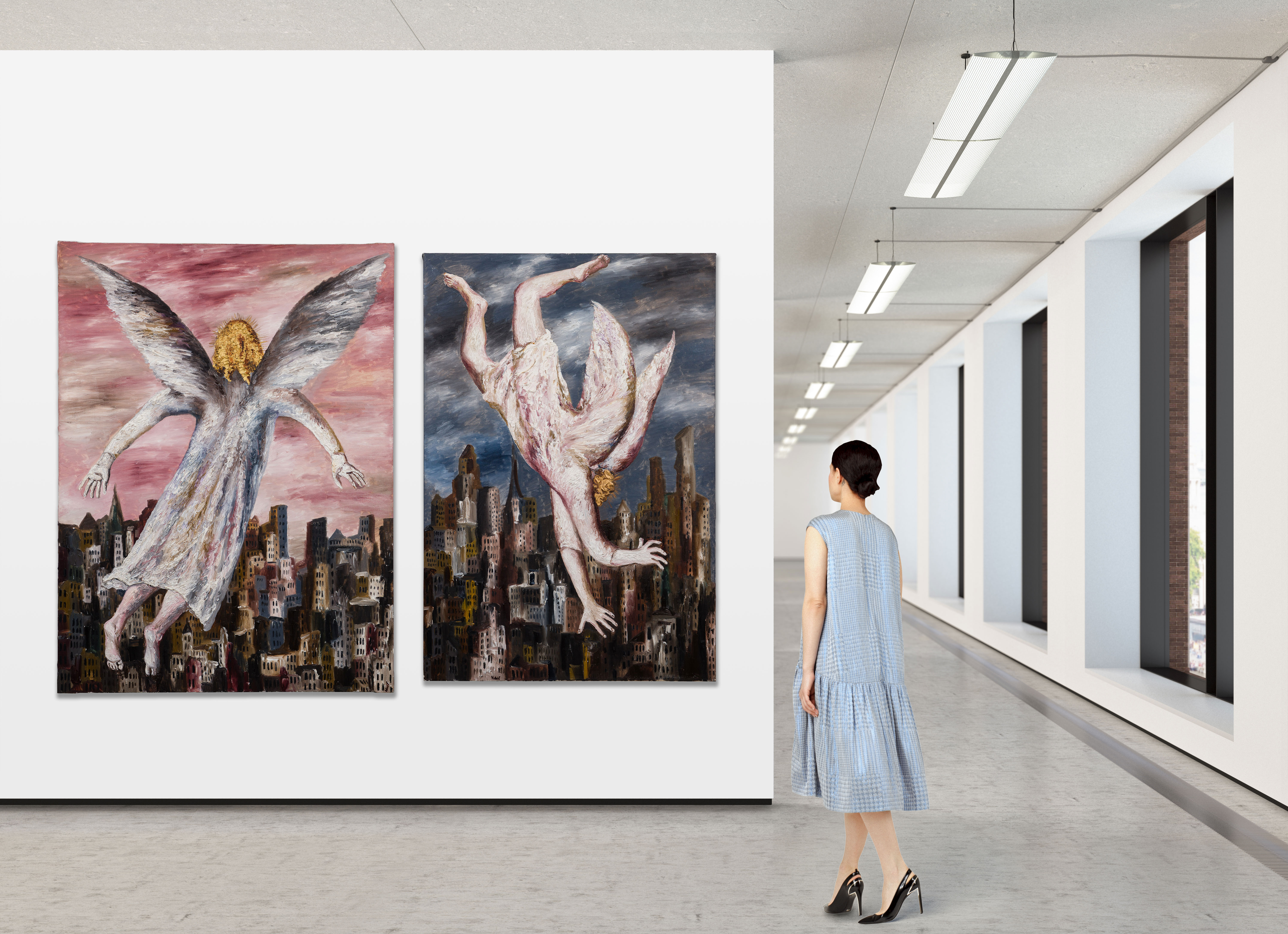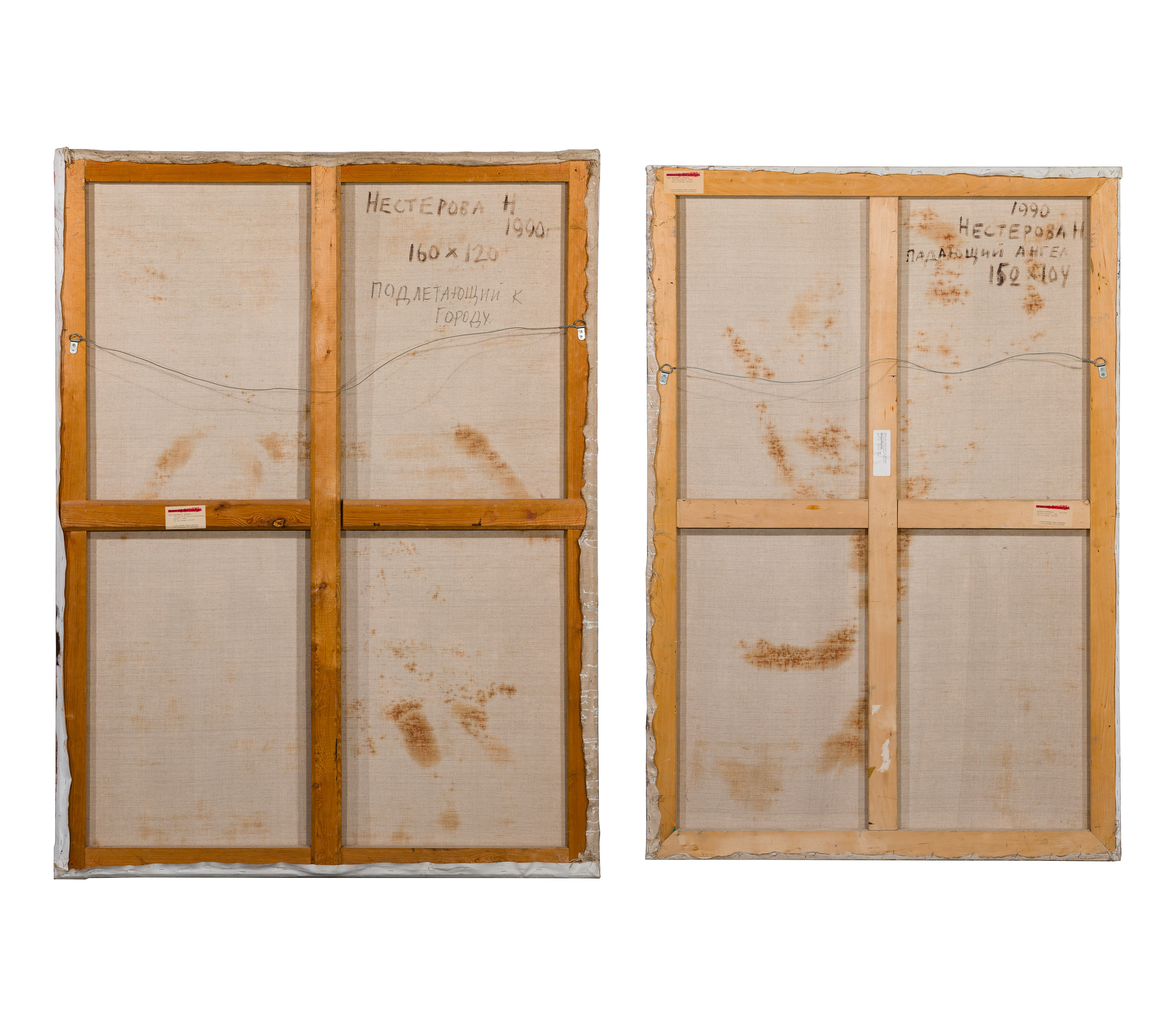 Natalia Nesterova (Russian, b.1944) ‘Flying Up to the City’ Oils on Canvas Diptych