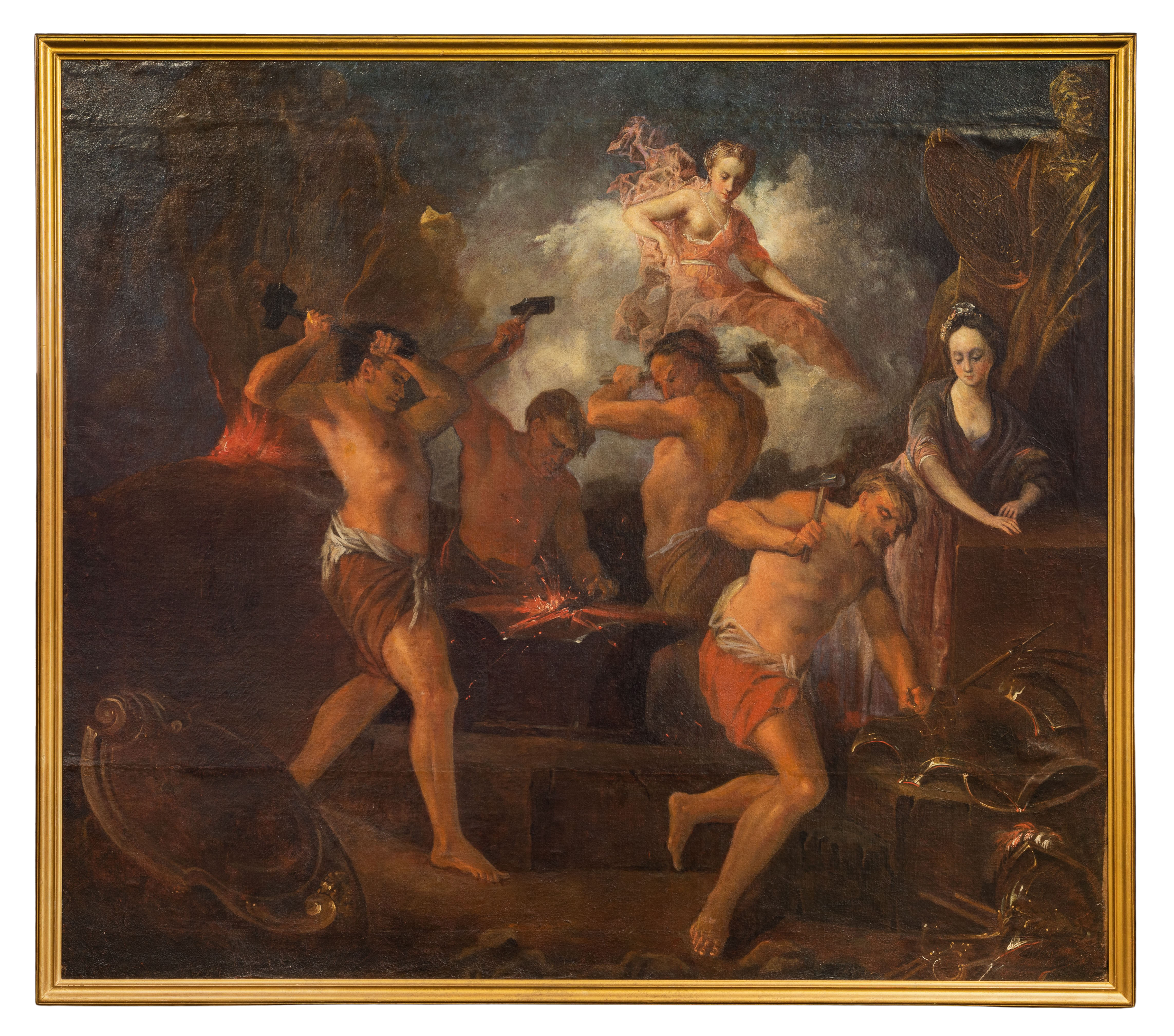 Undated, unsigned, depicting a scene in a forge, in wood frame