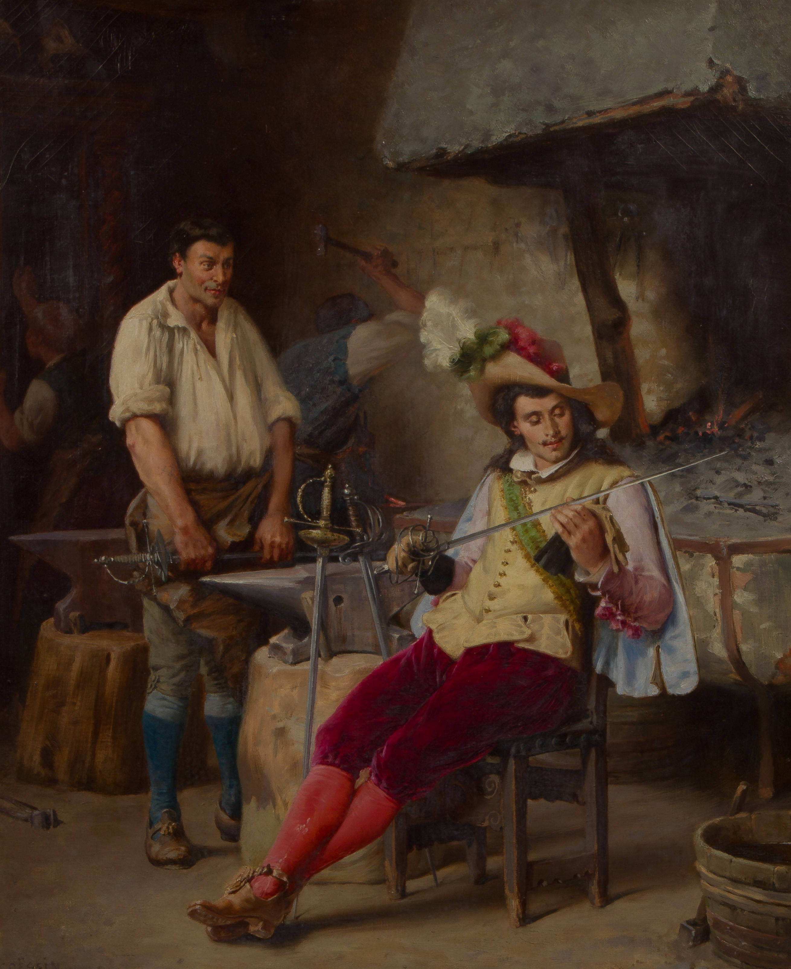Charles-Alexandre Coessin de la Fosse (French, 1829-1910) ‘The New Blade’ Oil on Canvas