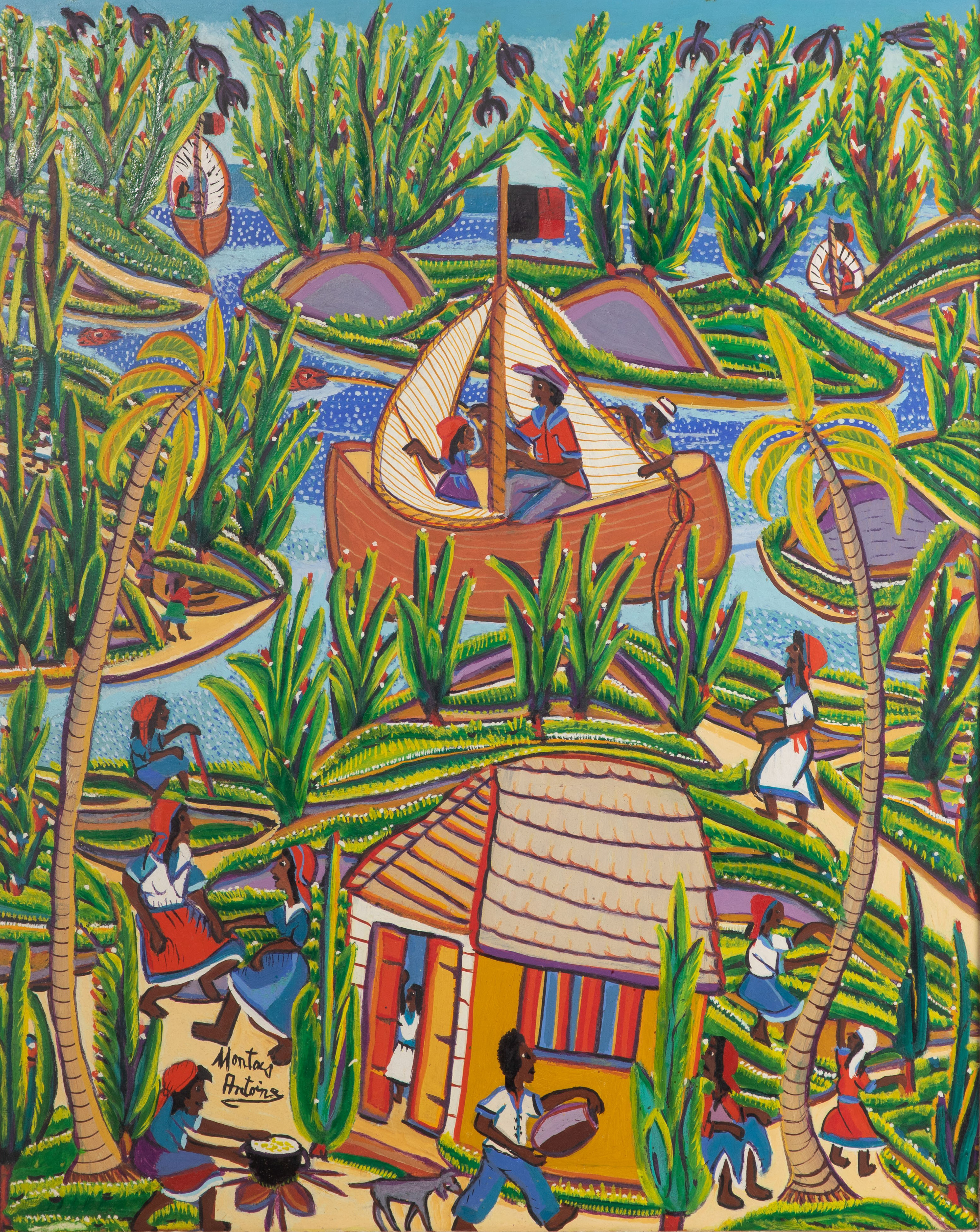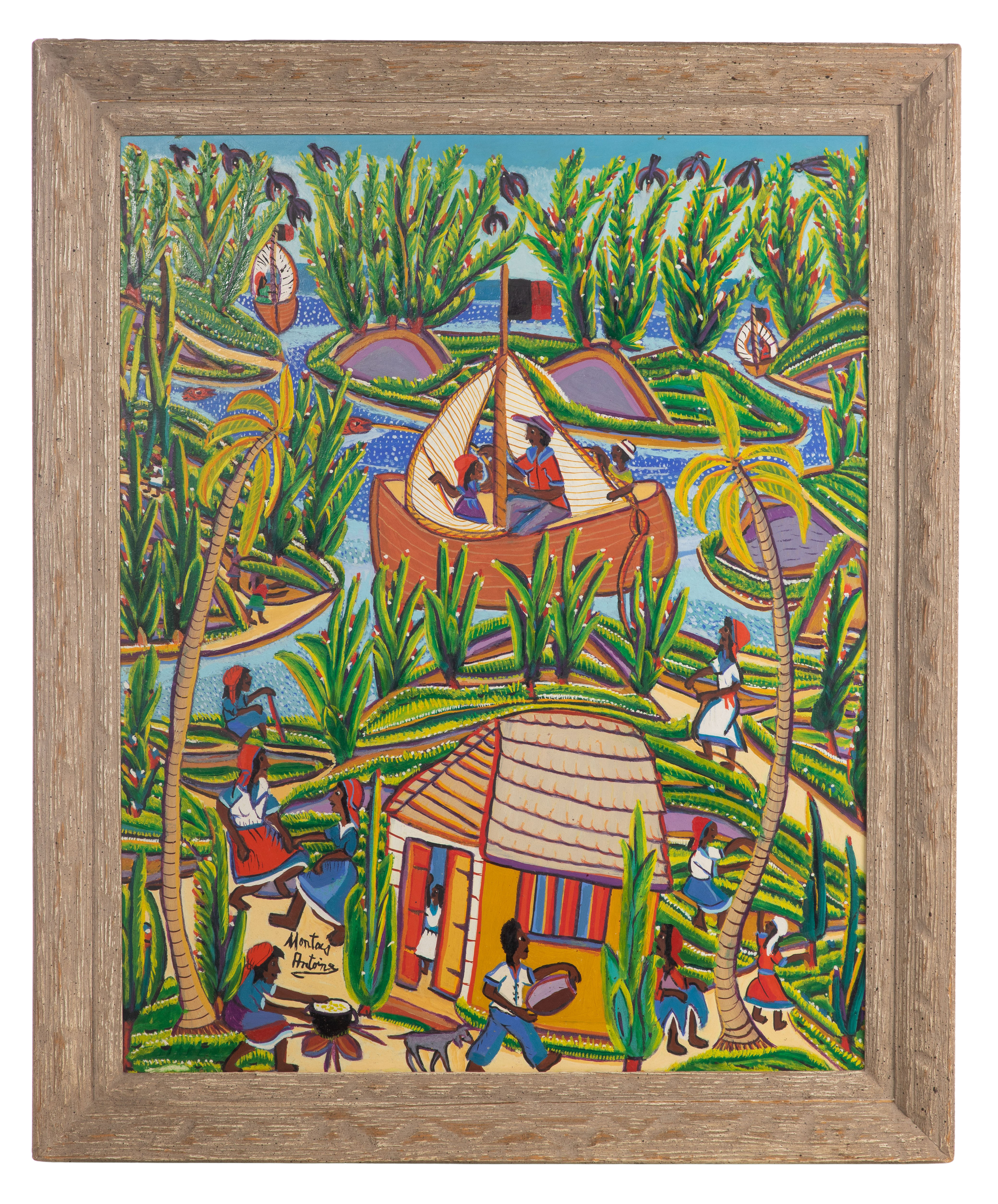 Montas Antonie (Haitian, 1926-1988) ‘Found Land’ Oil on Board