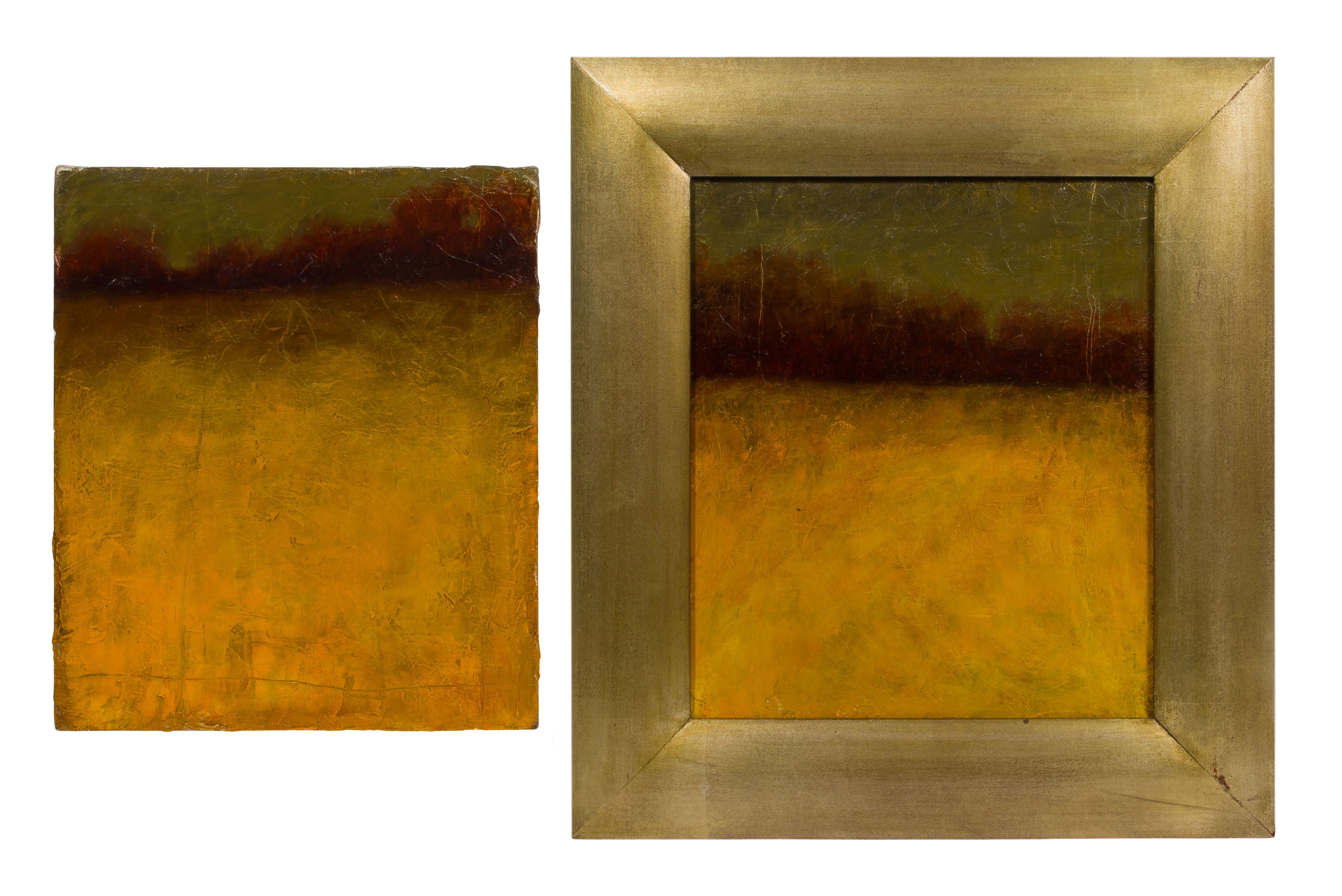 (2) items, both signed, dated and titled verso, including 1995 ‘Landscape in Yellow II’, unframed, and 1999 ‘I Landscape in Yellow’ in a gold-tone wood frame, both having incised linear elements, both retaining Judith Racht Gallery exhibition label cards