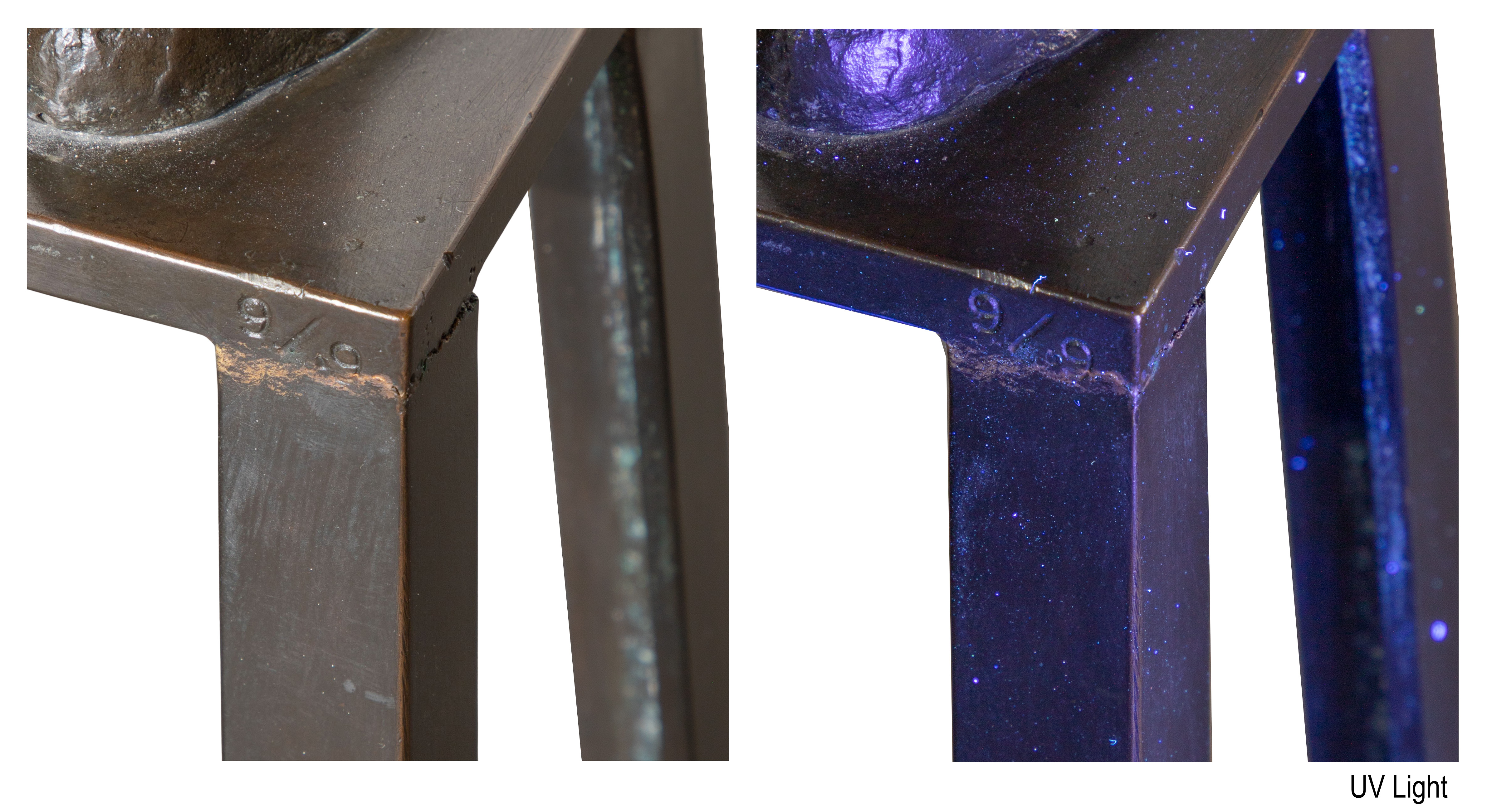 UV inspected, back leg on stand appearing repaired, scuffs