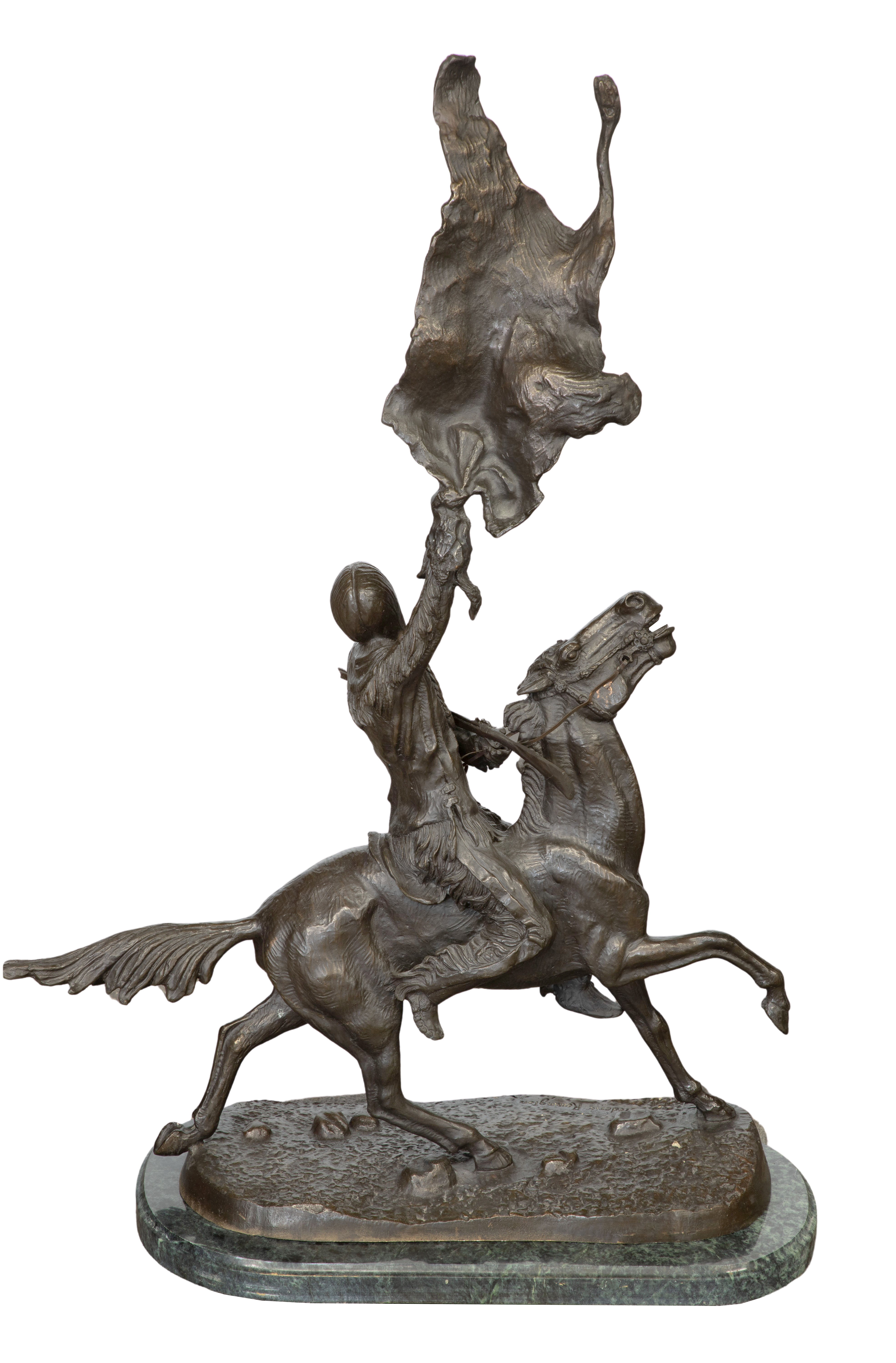 After Frederic Remington (American, 1861-1909) ‘Buffalo Signal’ Cast Bronze Sculpture