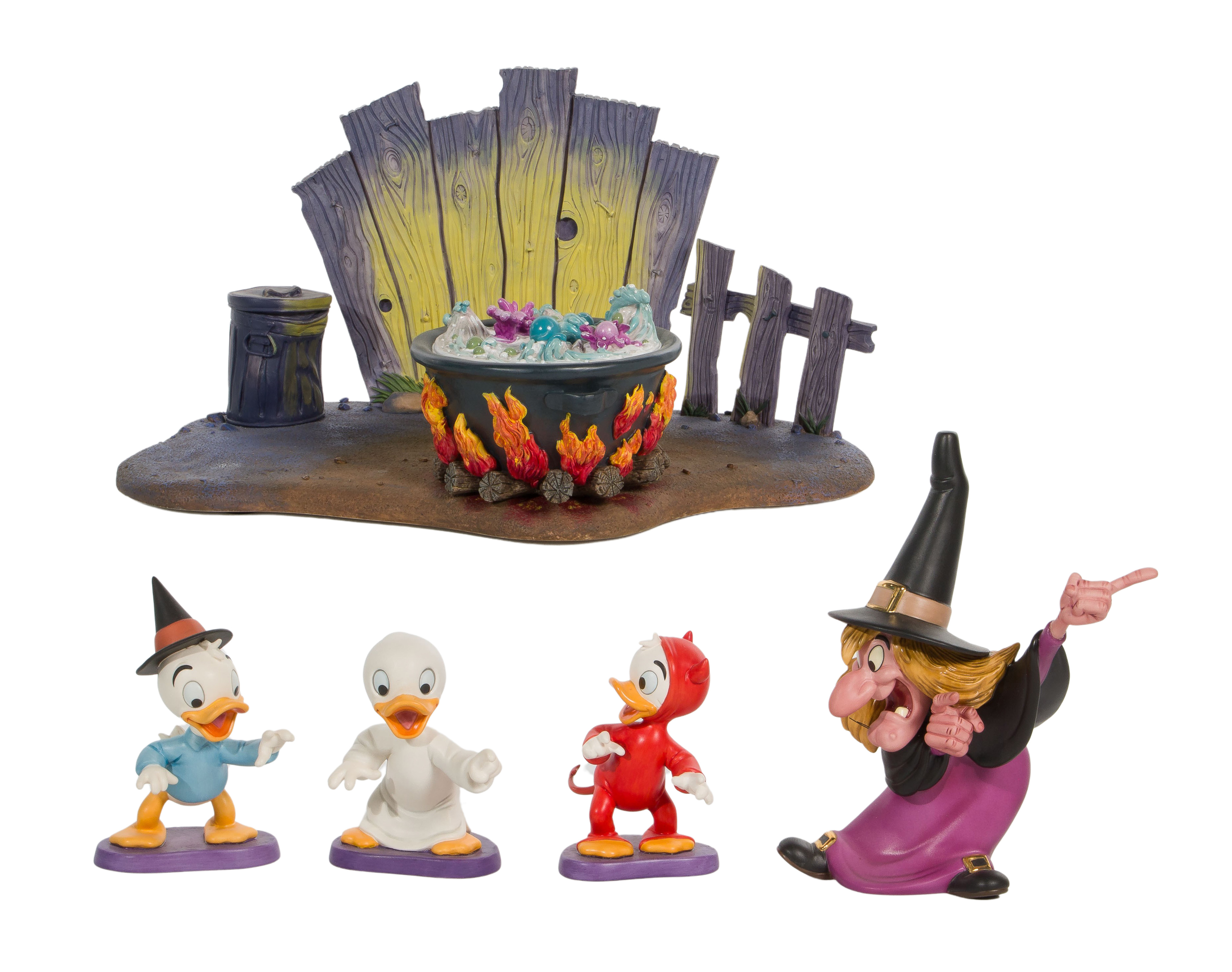 (5) items including a witch and Huey, Dewey and Louie figurines and a Trick or Treat base (resin), all having original boxes, some having COAS