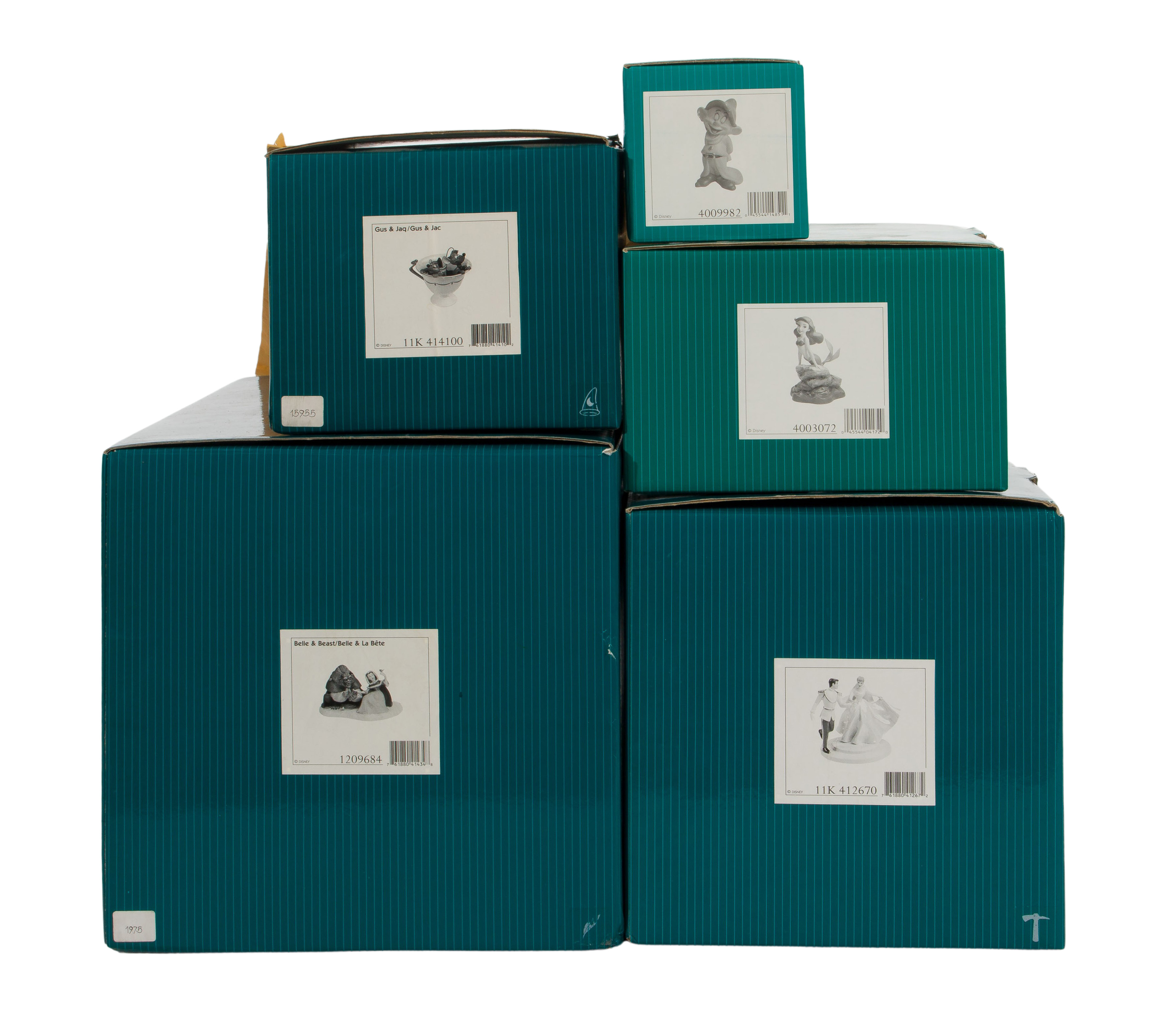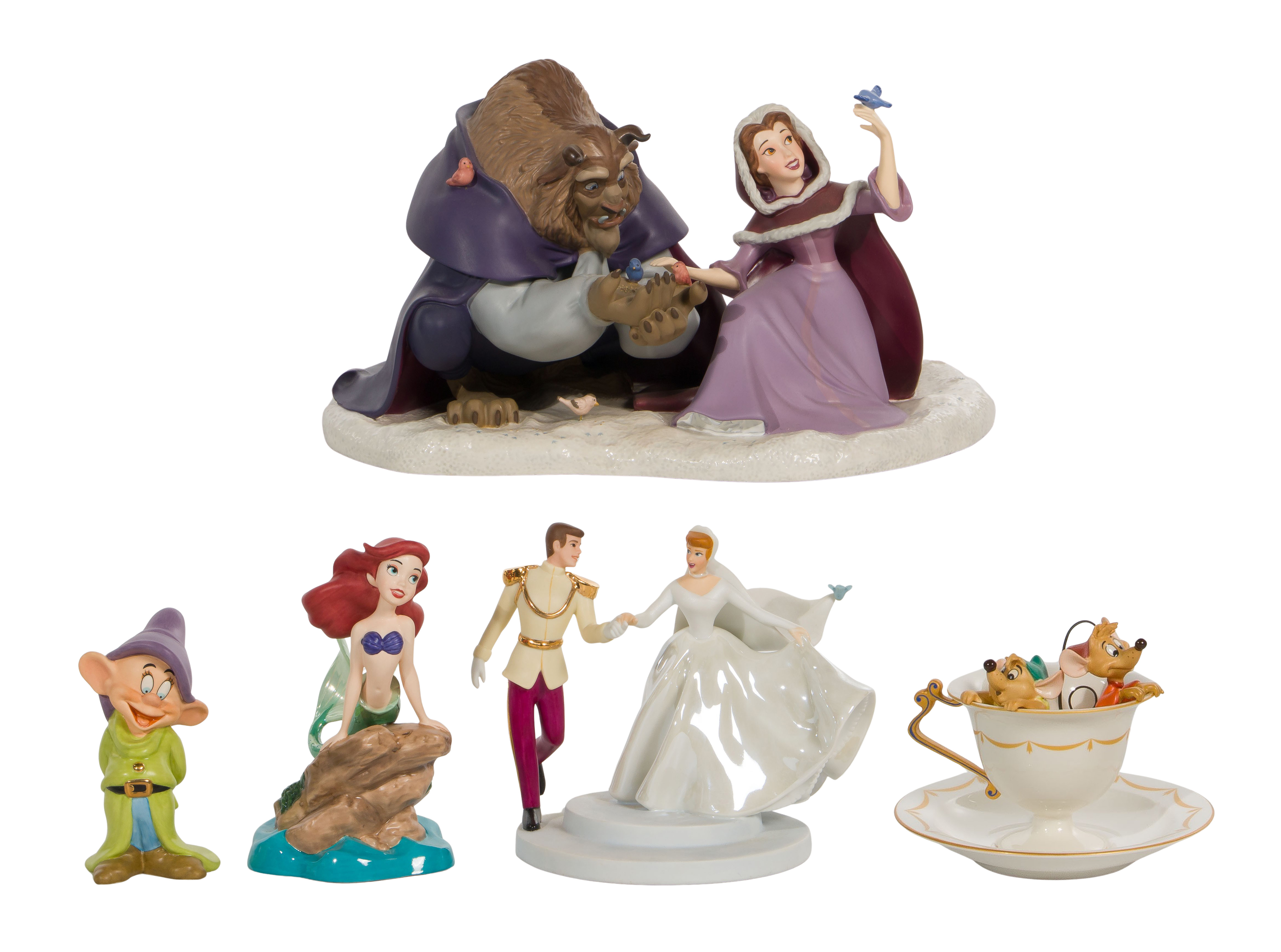 (5) items including Beauty and the Beast, Dopey, Ariel, Cinderella and the Prince, and Gus and Jaq in a teacup, all having original boxes and COAs