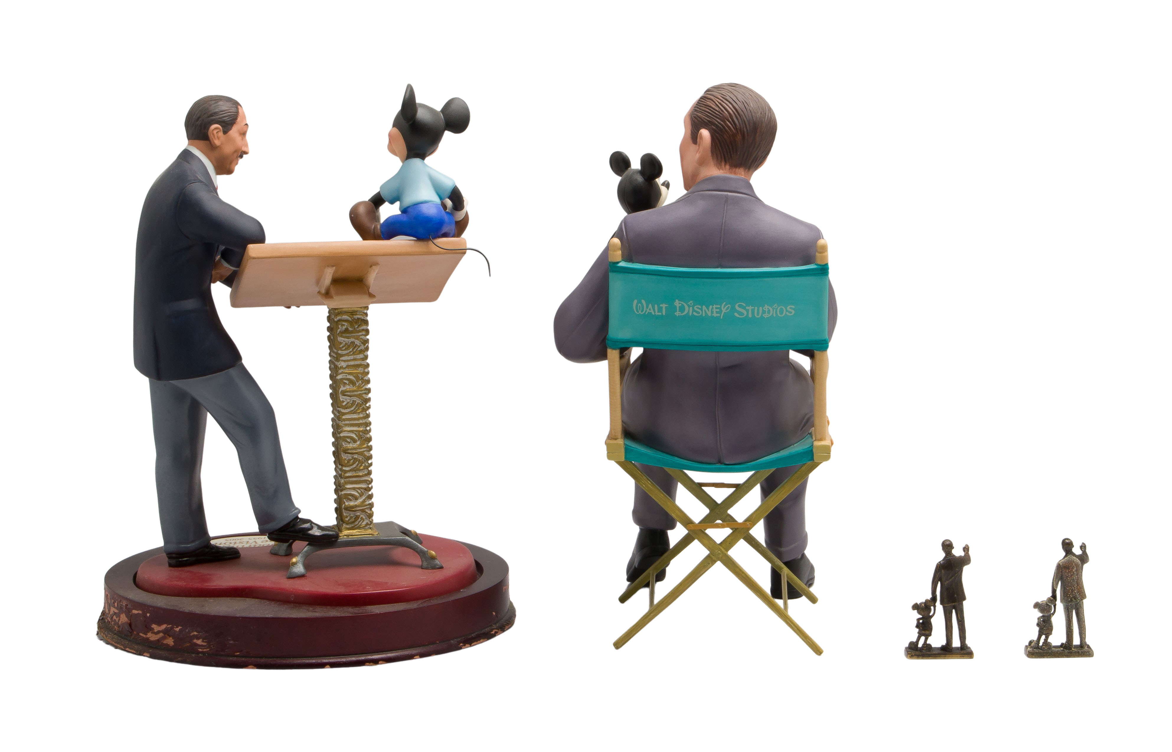 (4) items including a porcelain ‘…It Was all Started by a Mouse’ 100th birthday, a porcelain ‘Sharing the Vision’, #997/1955 and (2) bronze metal miniatures, most having boxes