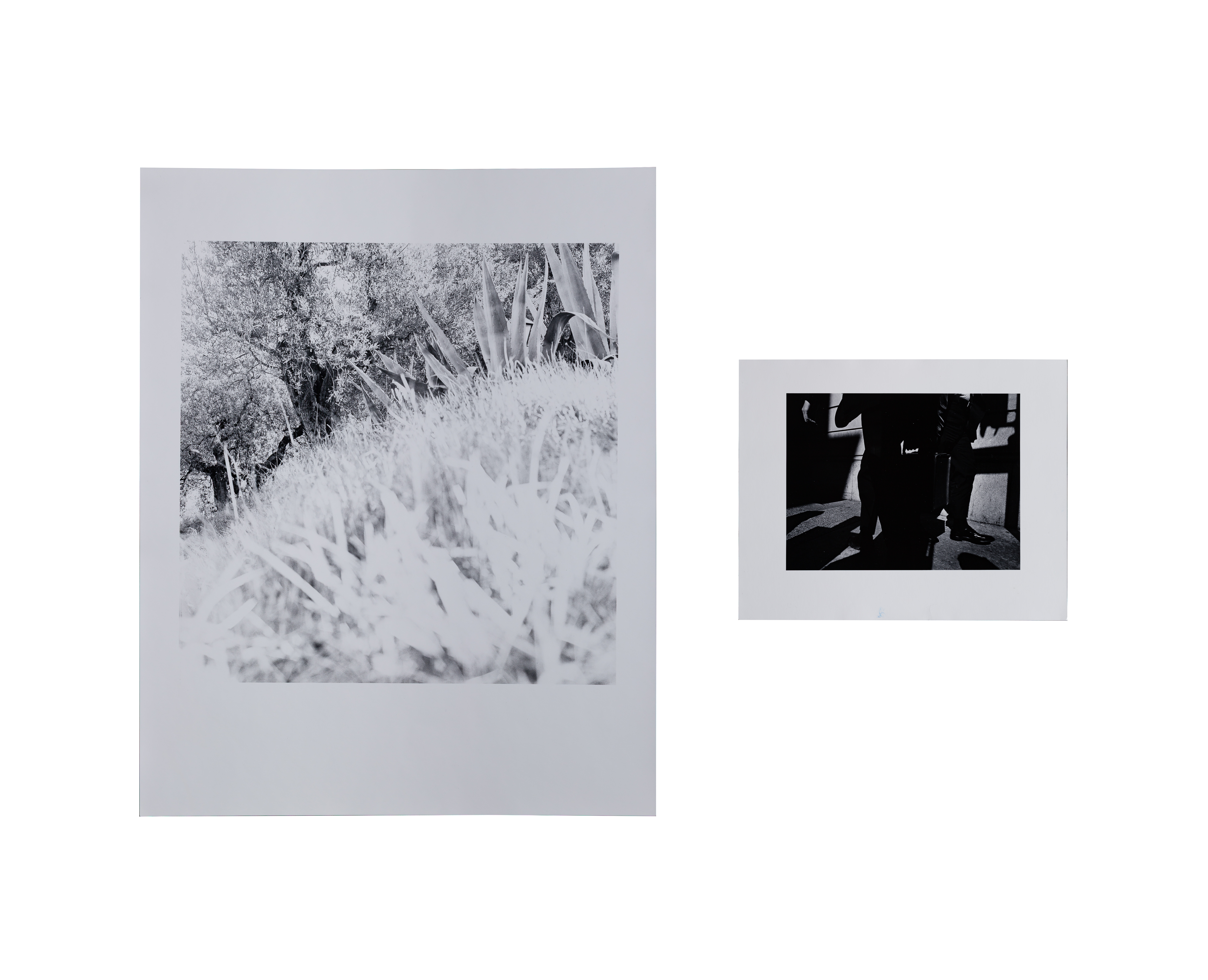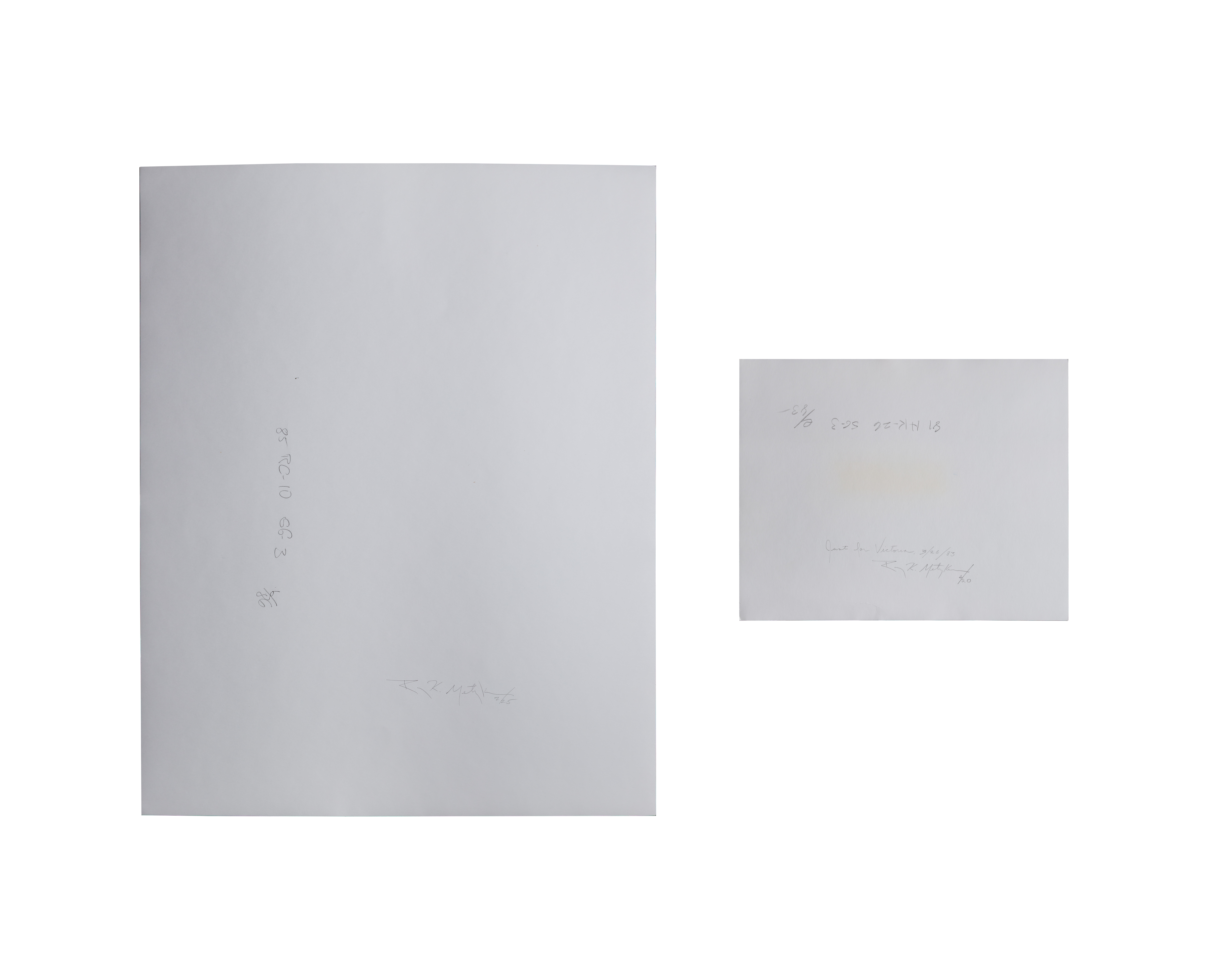 (2) items including a close-up of foliage having a forested background, pencil signed, dated ‘6/86’ and #2/25 verso and ‘City Whispers’, depicting partial figures in silhouette, pencil signed below gift inscription dated ‘3/26/83’ and #4/20 verso of 8 x 10-inch sheet in a plastic sleeve retaining a label giving date ‘1981’, both unframed