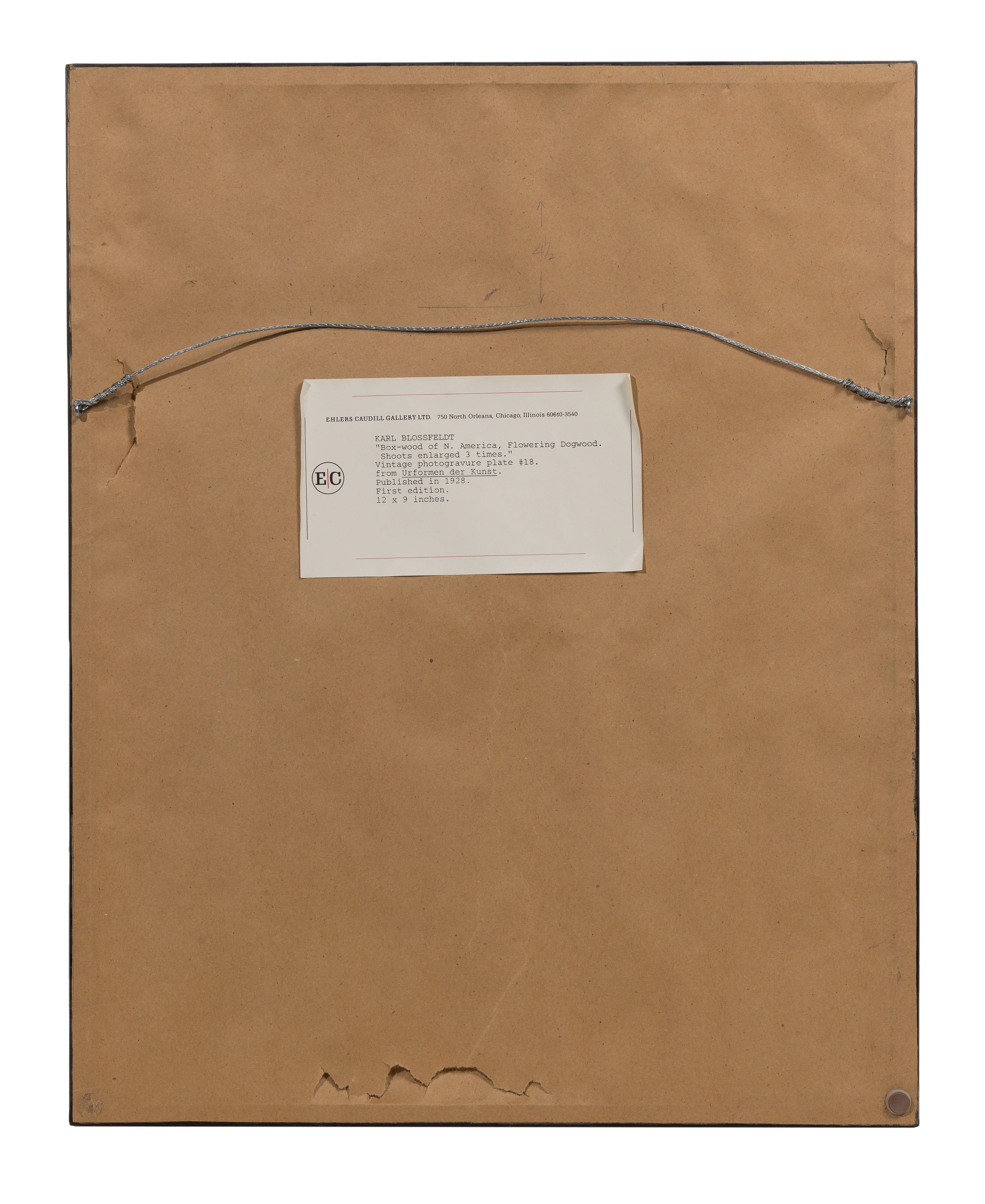 Plate #18 from the book ‘Urformen der Kunst’ self-published by Blossfeldt in 1928, the full translated title being ‘Boxwood of North America, Flowering Dogwood Shoots enlarged 3 Times’, matted behind acrylic in a painted wood frame having Ehlers Caudill Gallery, Chicago label verso