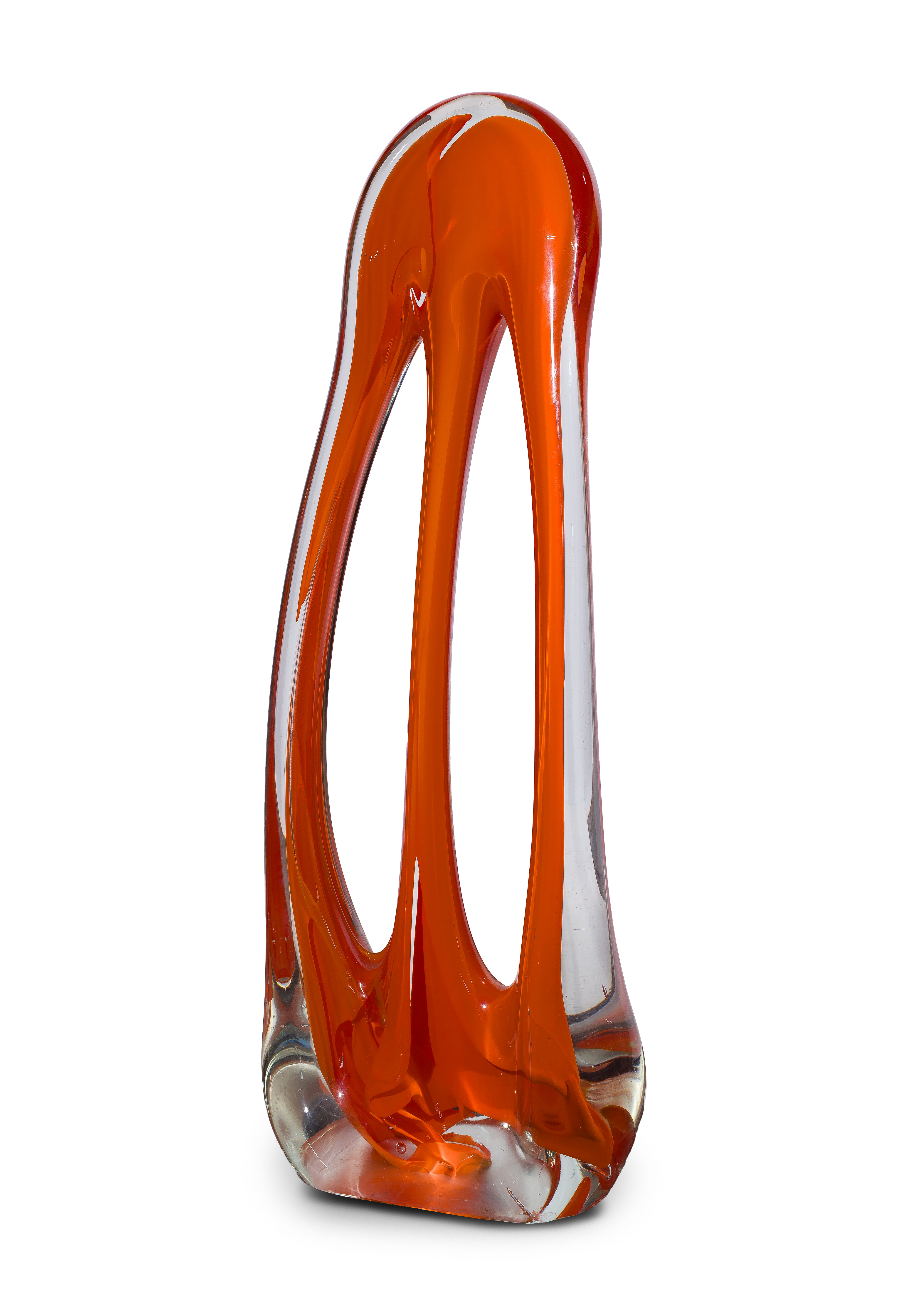 Undated, unsigned, elongated tripart form having orange encased within clear glass