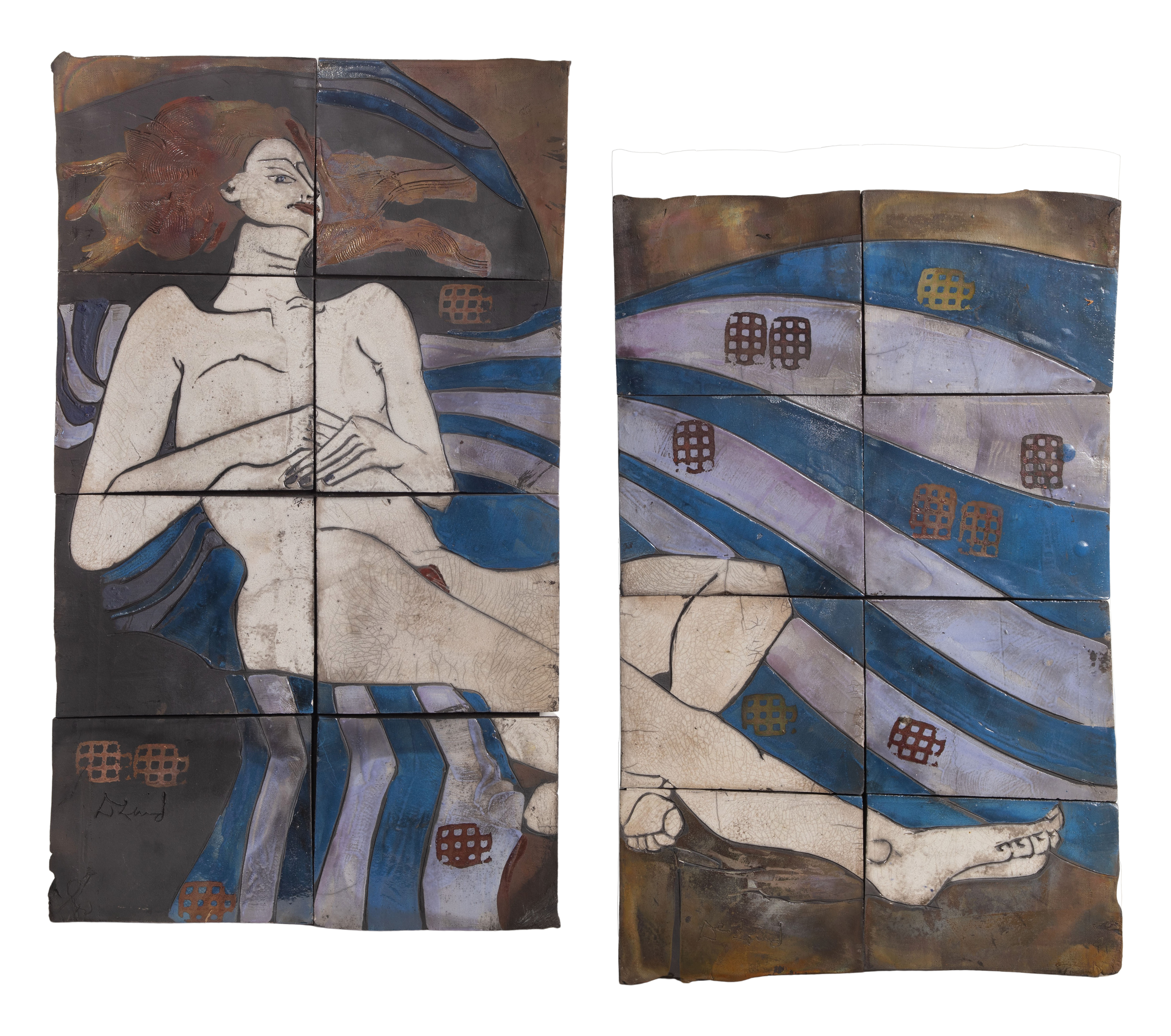 Doug DeLind (American, b.1947) ‘Nude Blue’ Raku Pottery Diptych