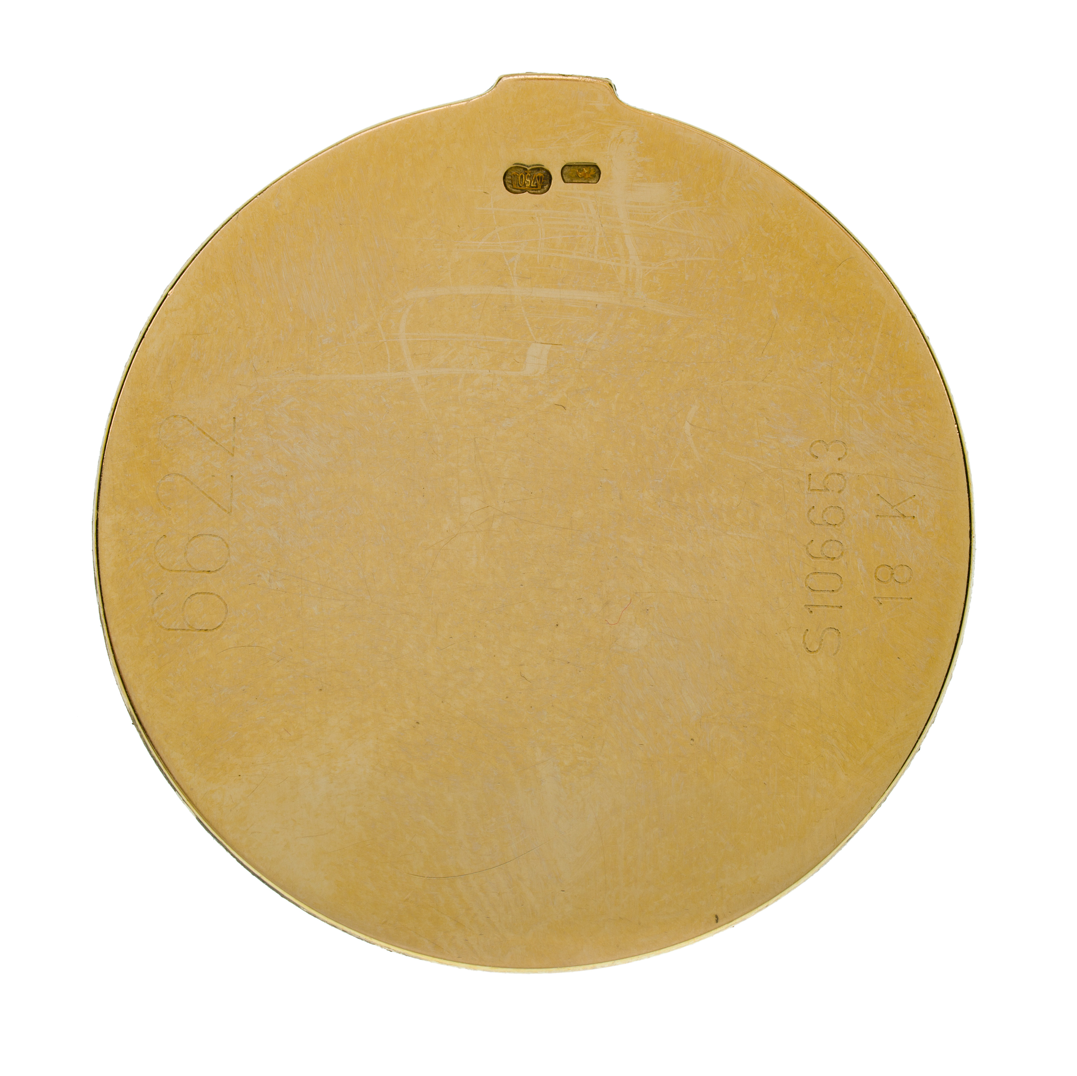 Weight: 18k gold: 63.40 dwts. (total including crystal and movement)