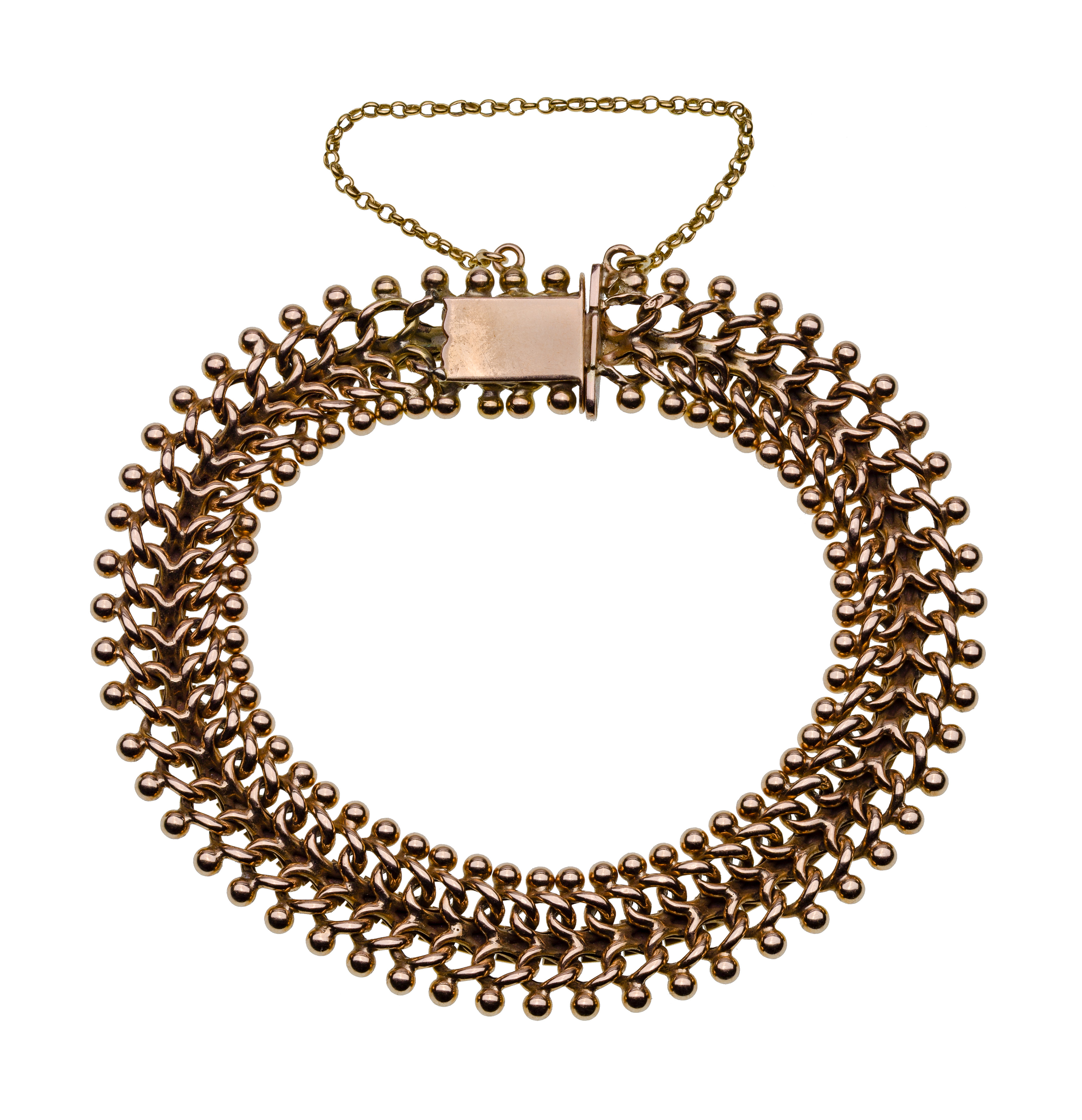1/2-inch wide having a central band with beading to each side (unmarked 14k)