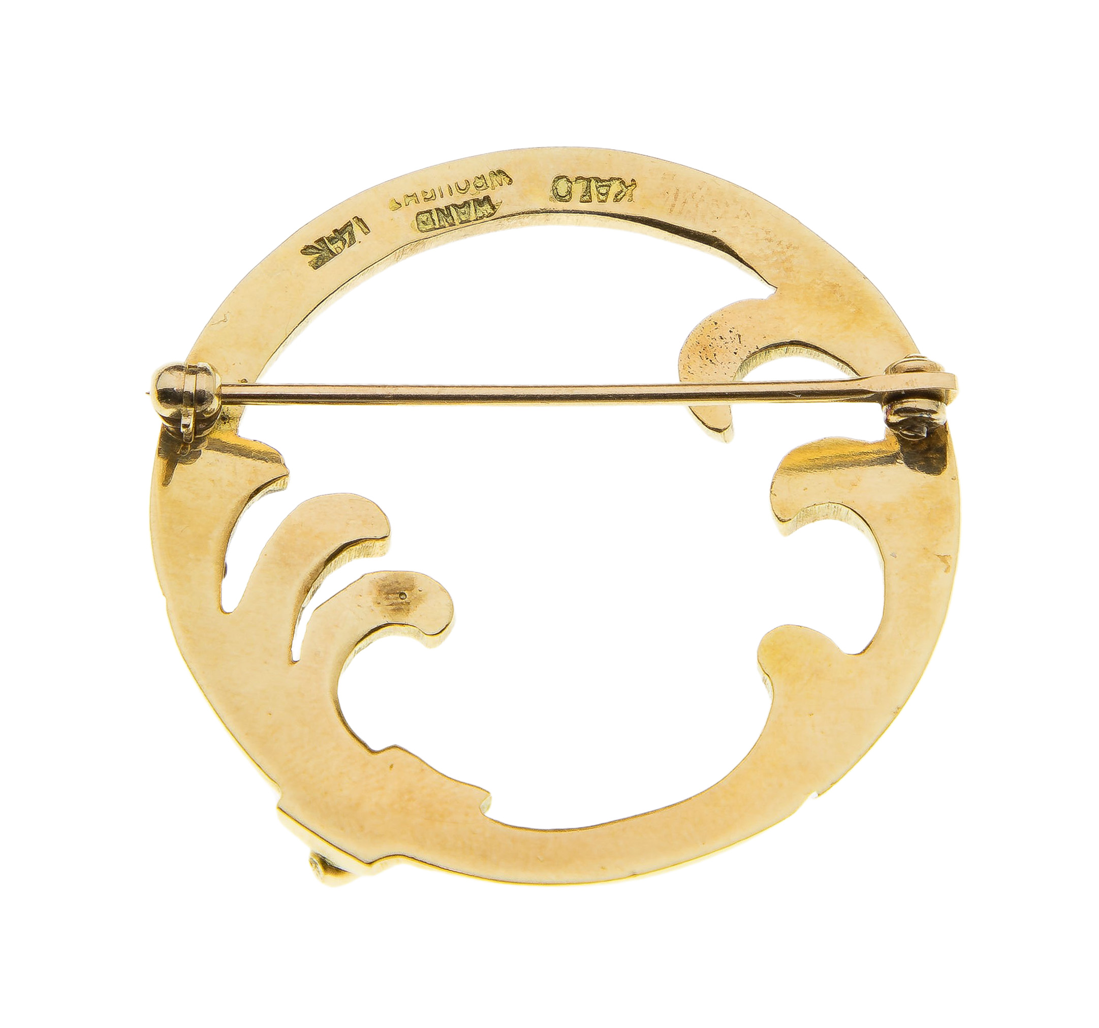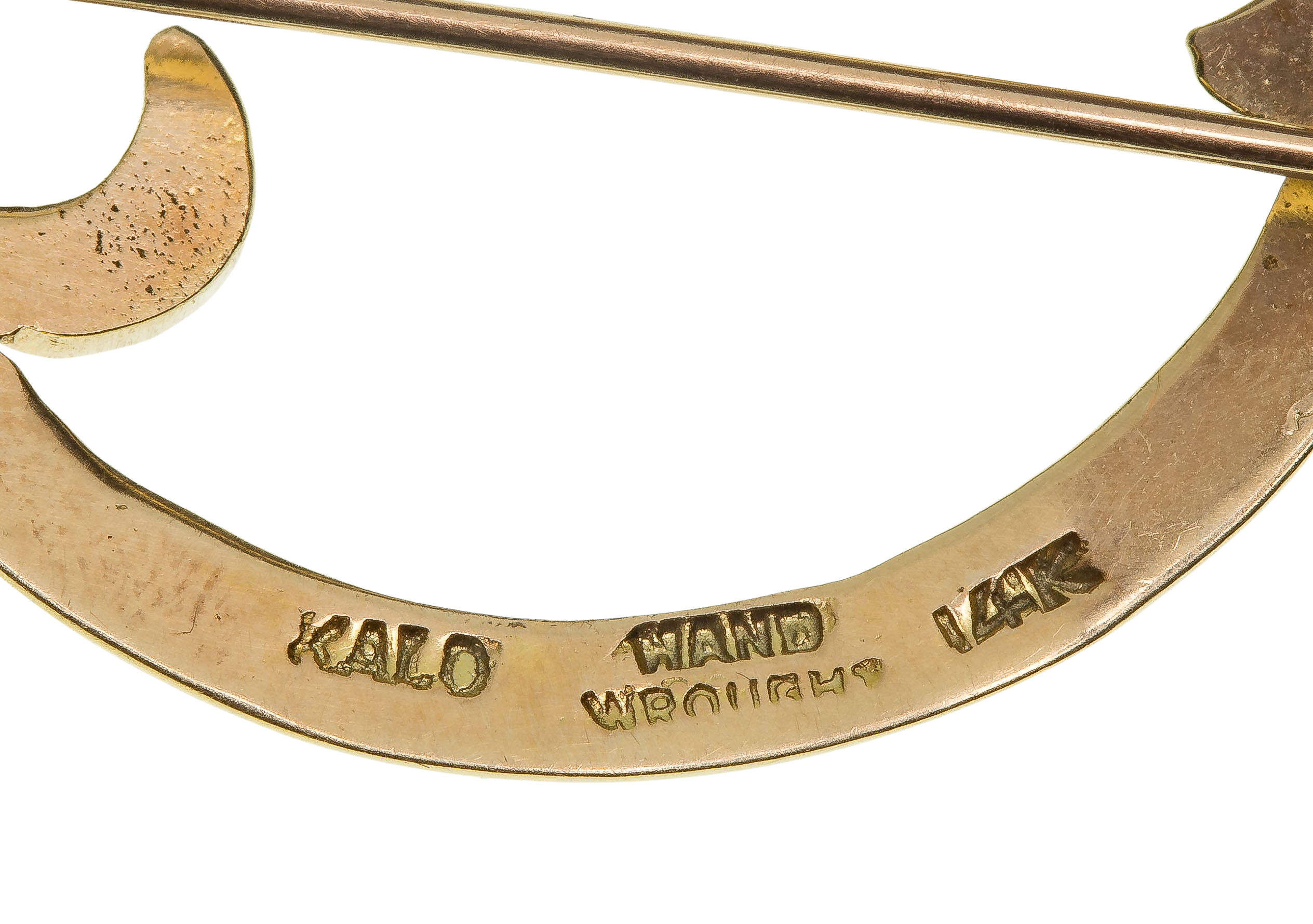 Having a flourish circular design (marked ’14k’) and a Kalo Shop advertising display box