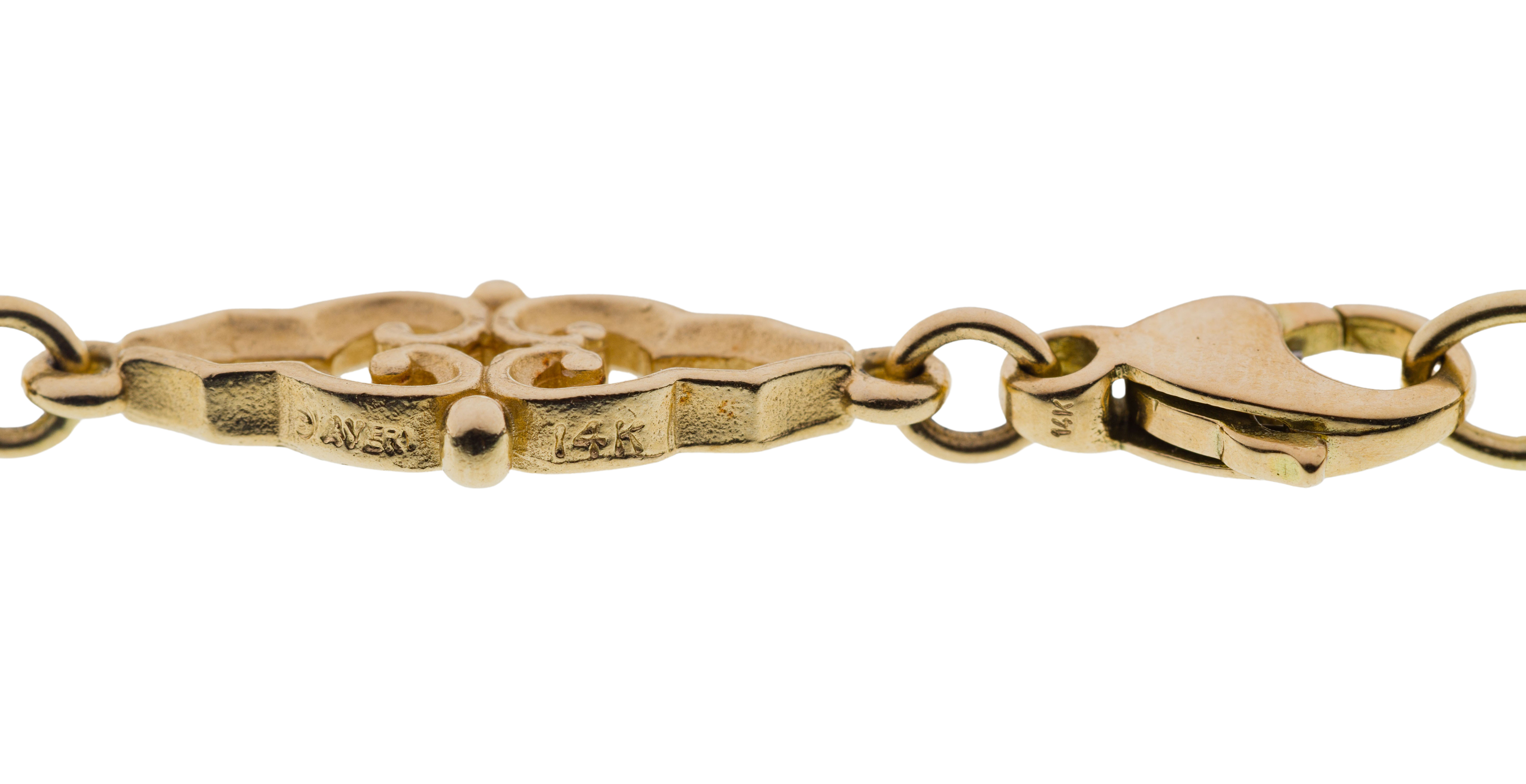Filigree necklace having matching bracelet (marked ’14k’ on side of clasp, ‘Avery’ on side of link)