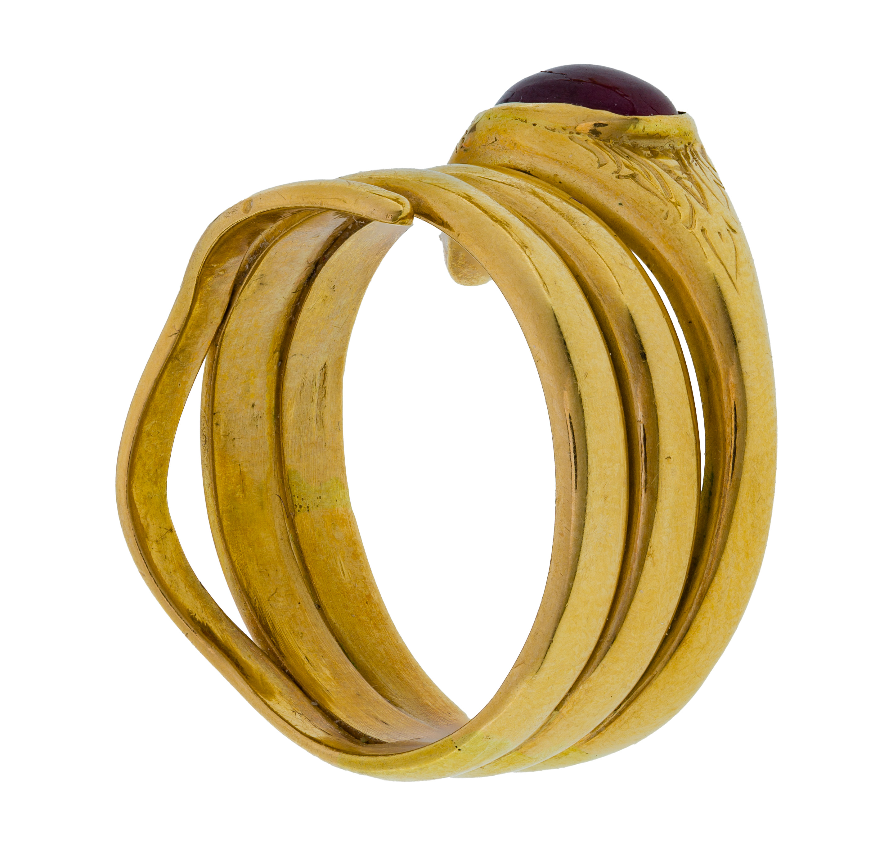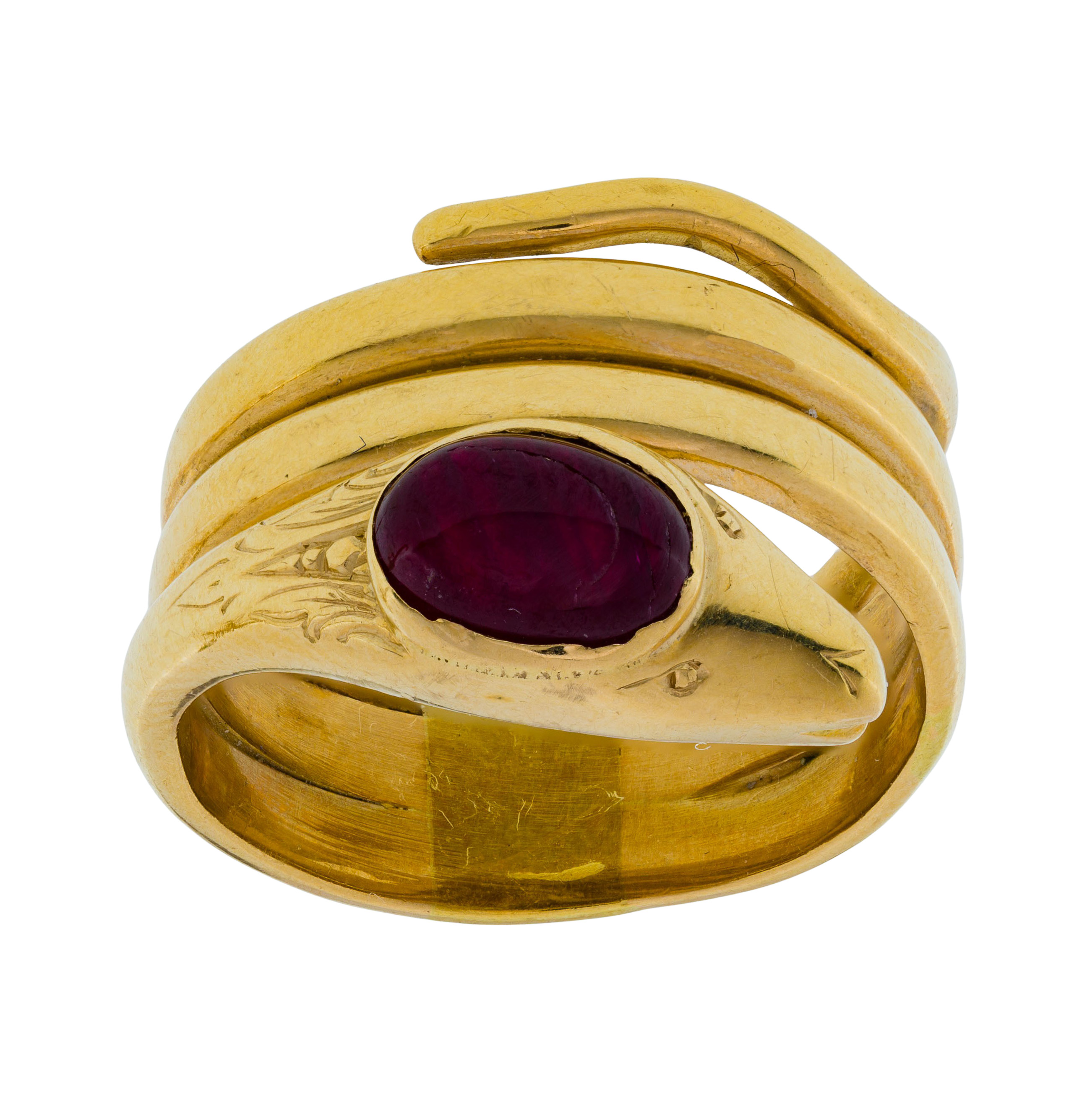 overall light wear consistent with normal uses, ruby having natural fissure / crack, ring XRF tested as 18k gold, lizard unmarked but XRF tested as 14k gold