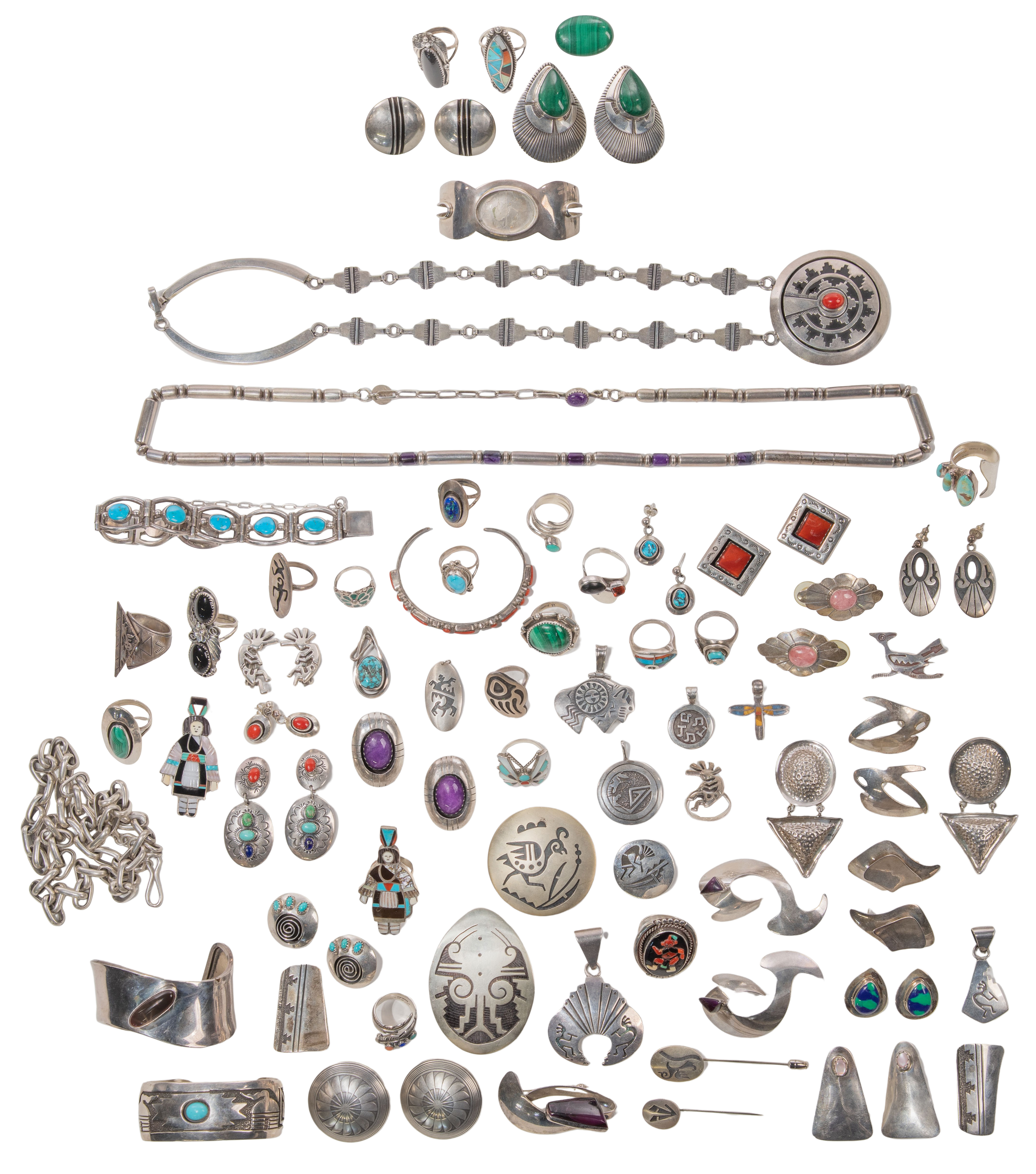Including necklaces, bracelets, pins, rings and earrings (most marked ‘925’ / ‘sterling’)