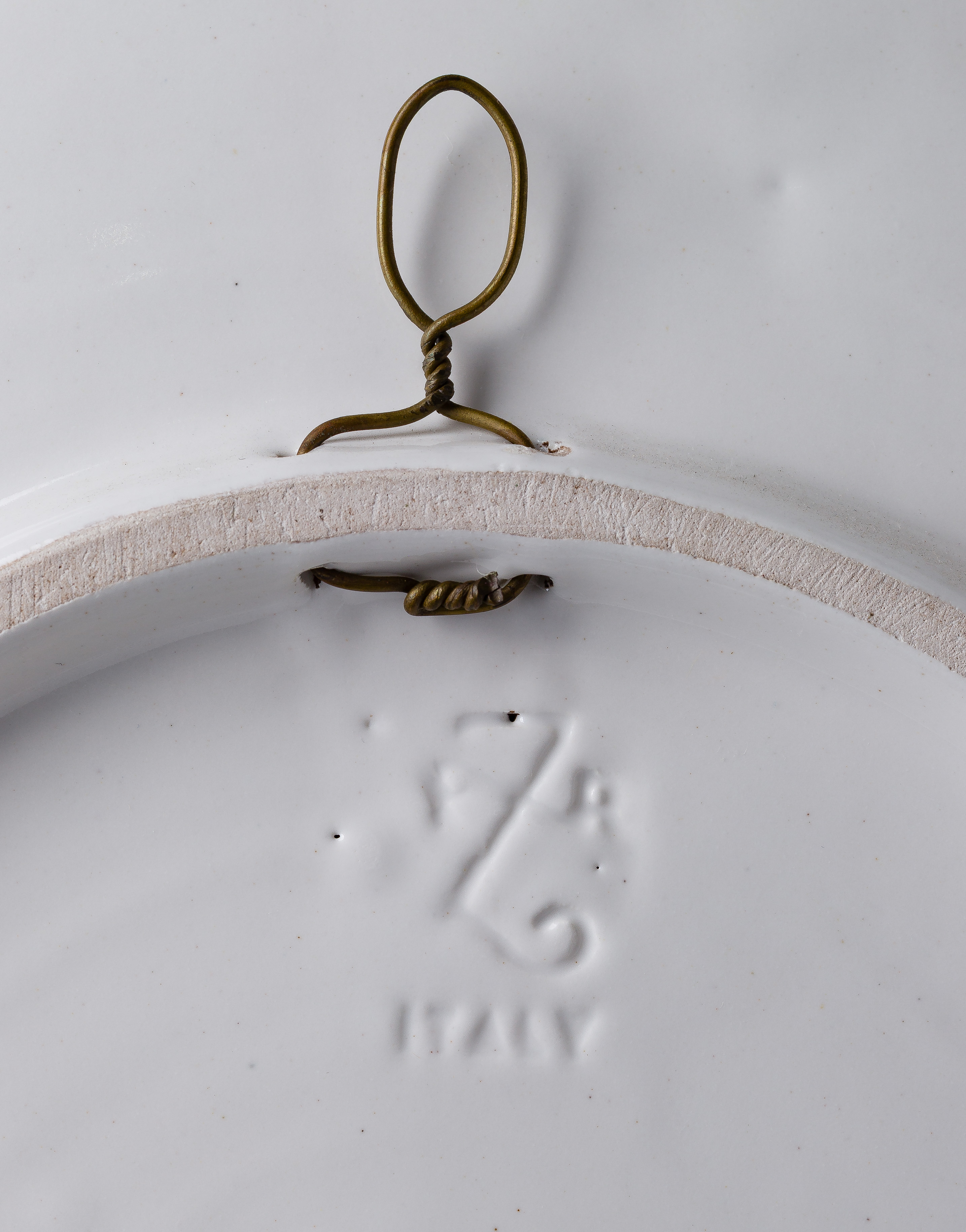 (4) items having various vegetable models attached to matching plates, hanging wires through foot rings, (3) having impressed marks verso