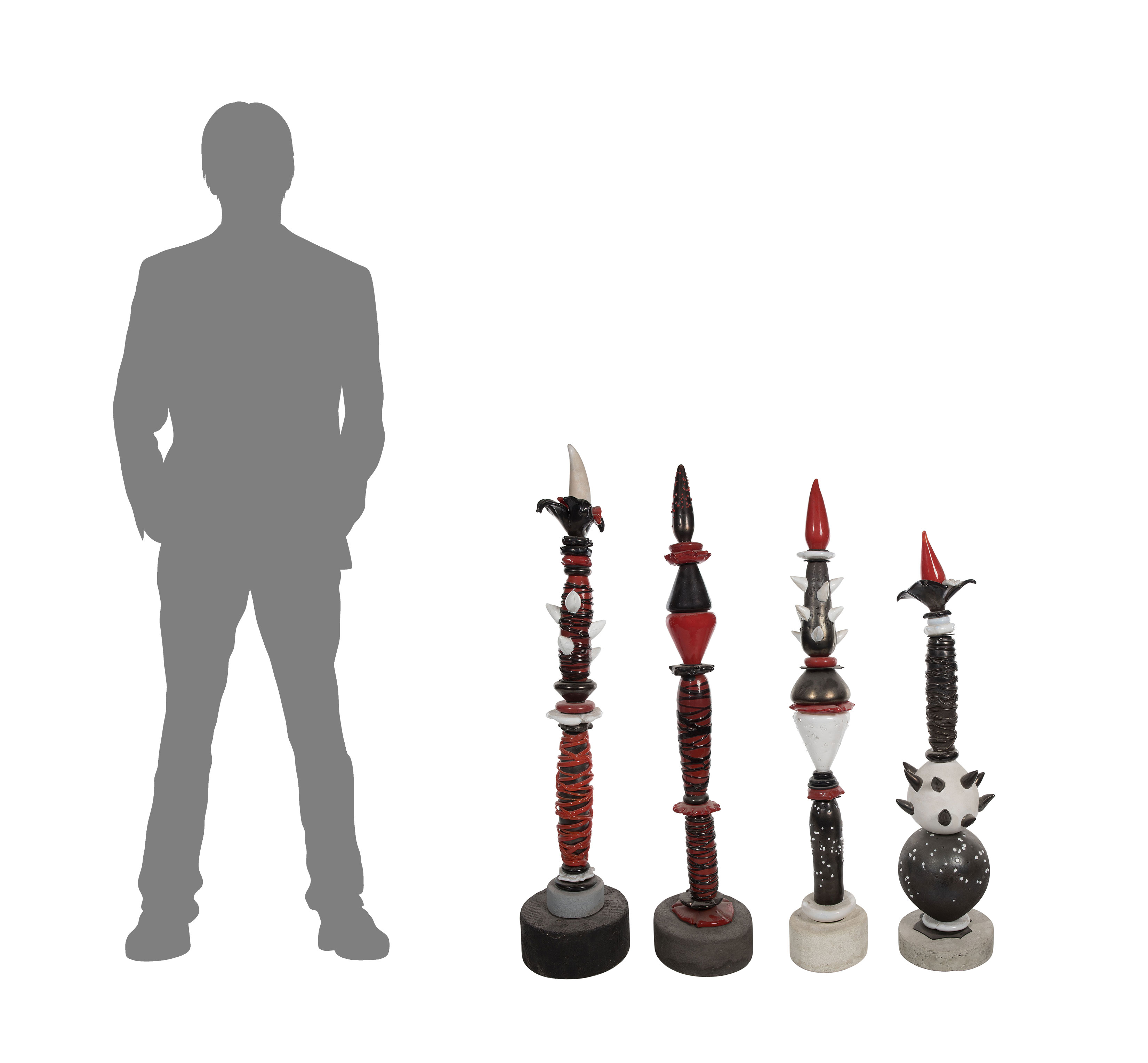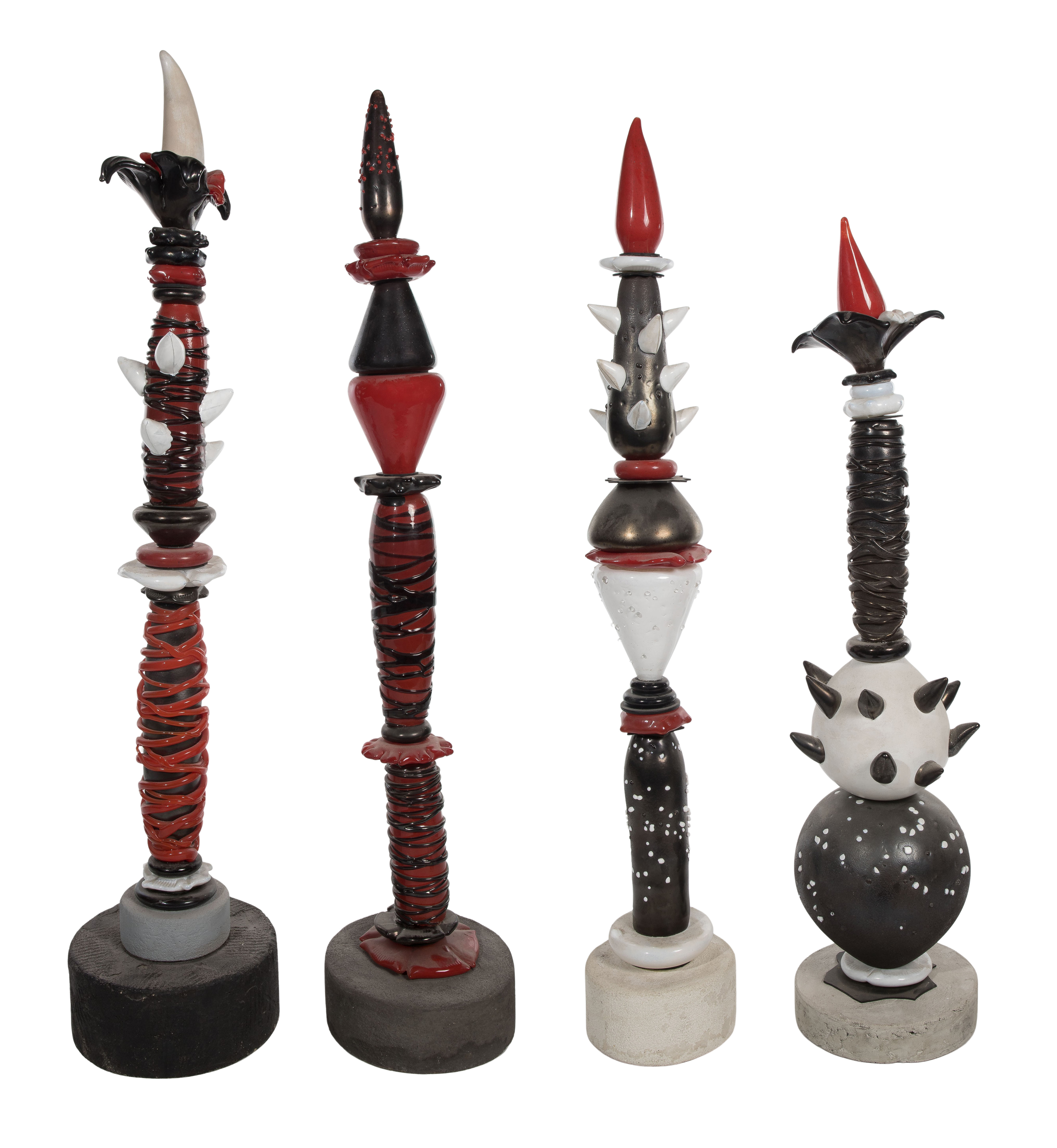 (4) items consisting of red, black and white glass, one signed illegibly on underside of base, all having concrete bases
