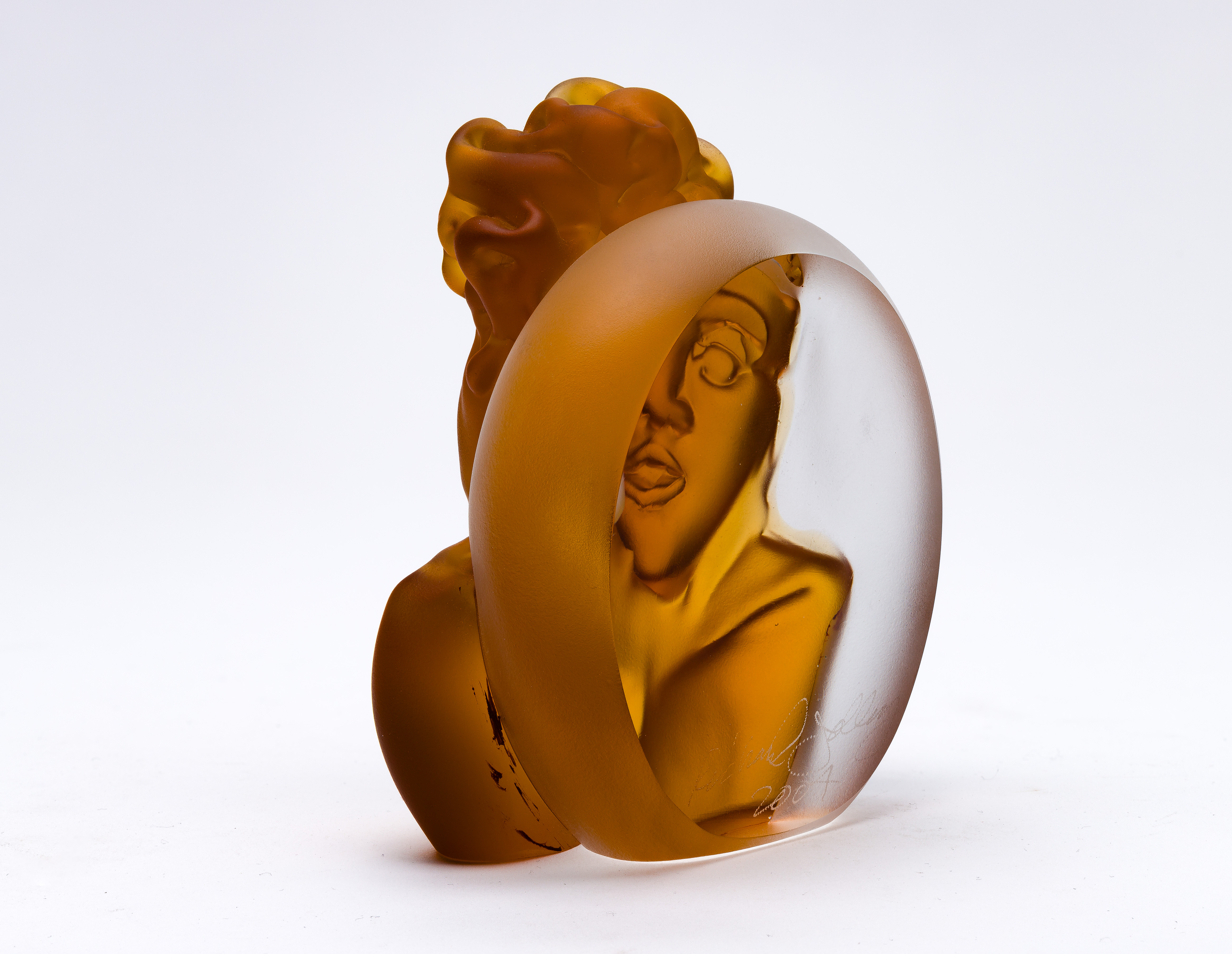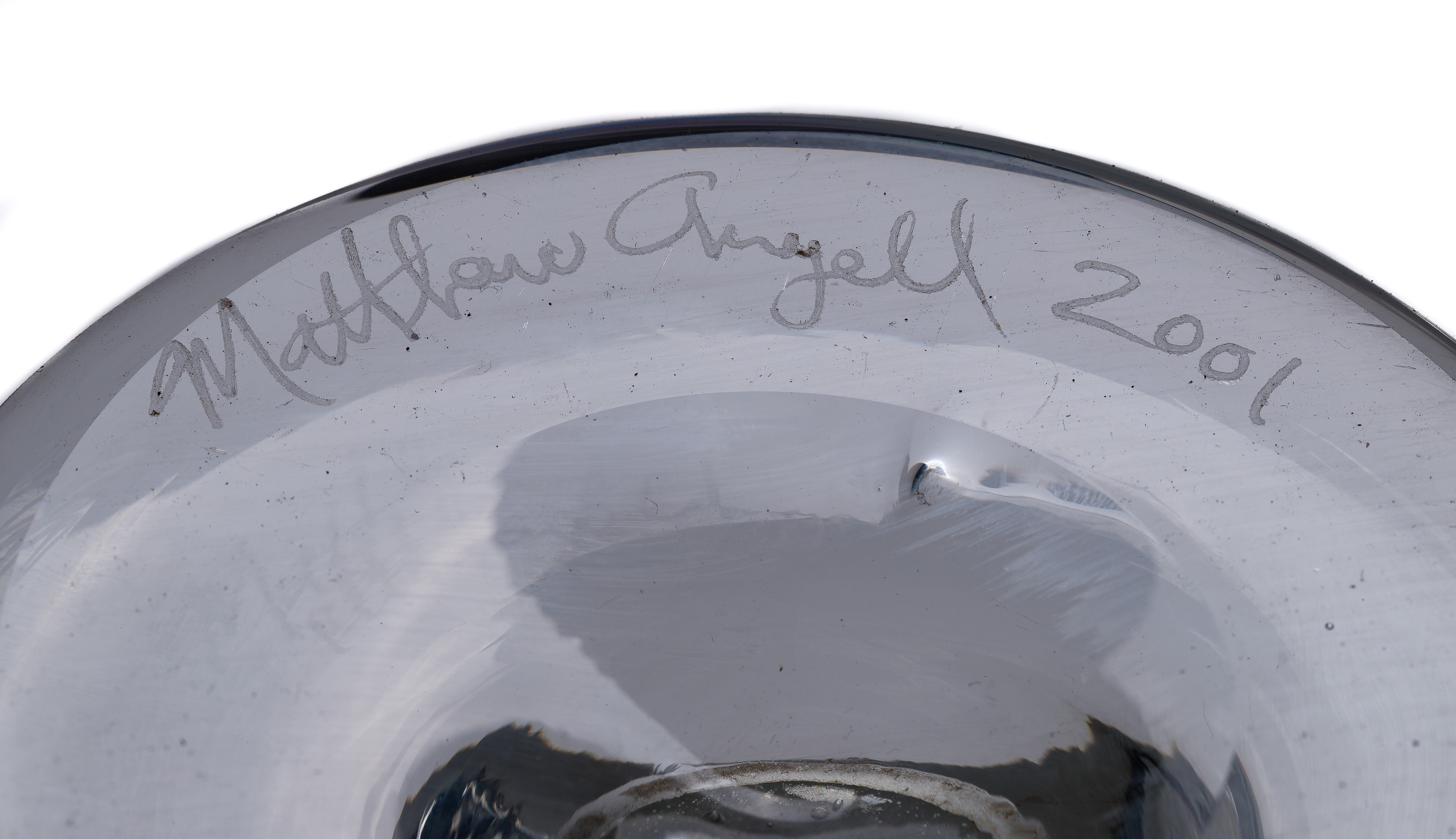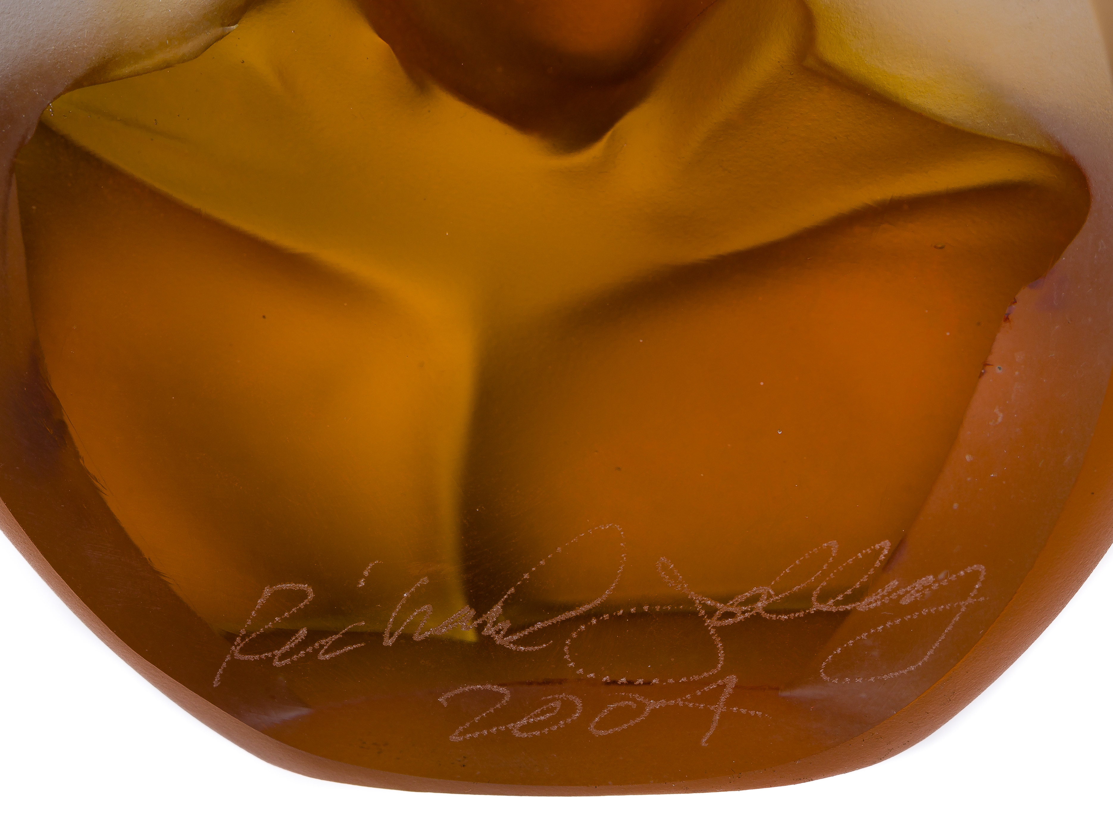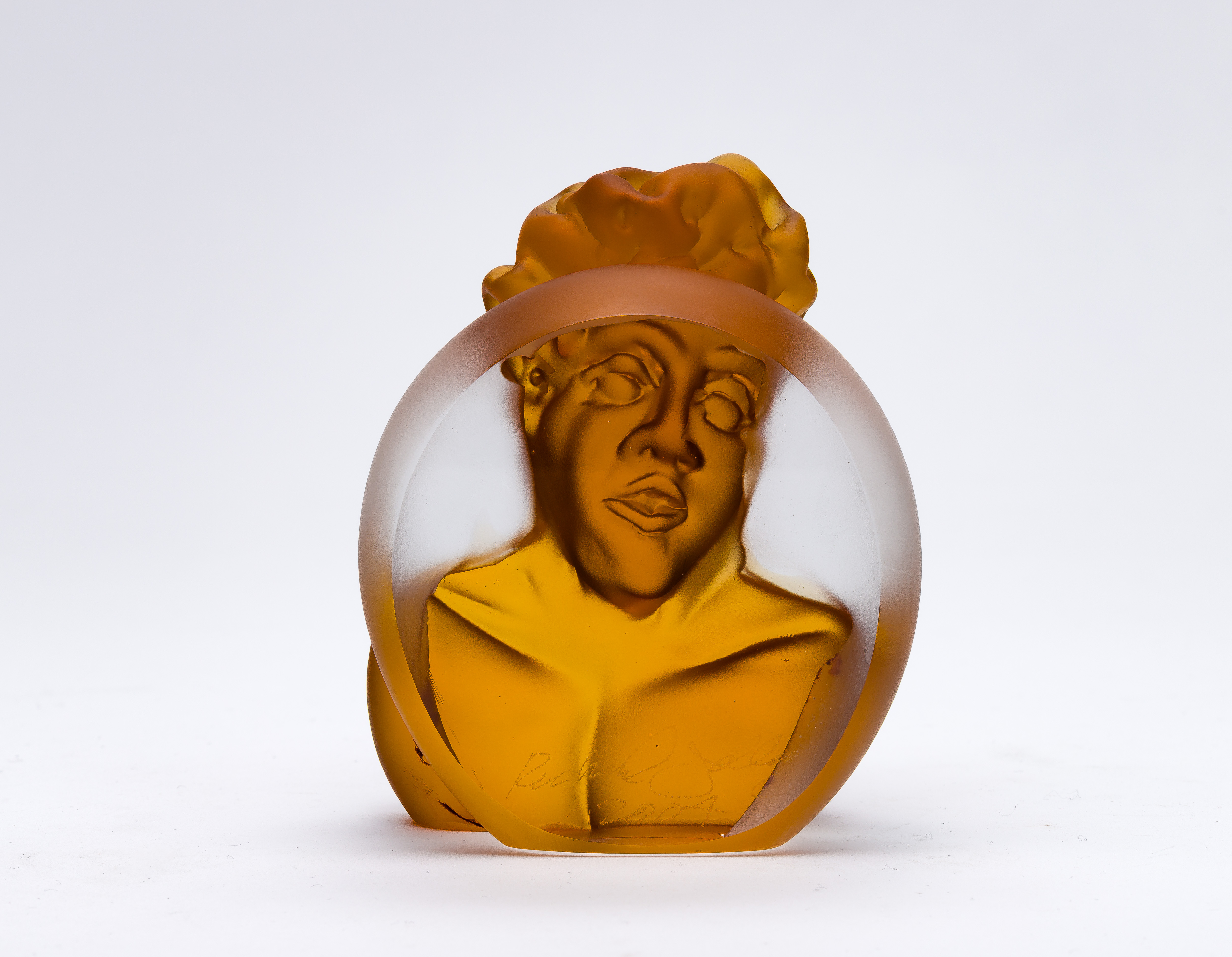 (6) items including vases, sculptures, figurines in various shapes, sizes and colors including ‘Amber Interior Exterior’ by Richard Jolley measuring 5 x 4 x 3-inches, works by M. Angell, Hartney and others