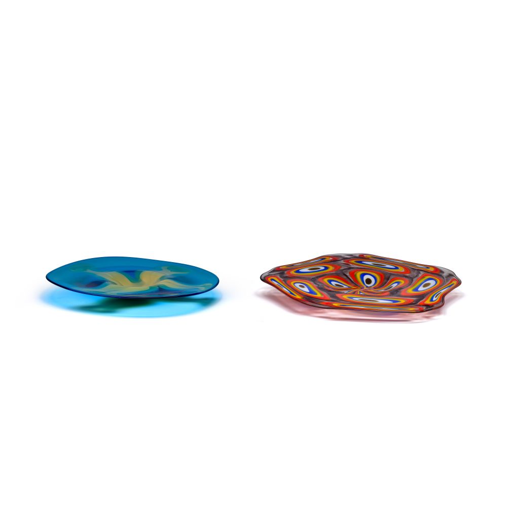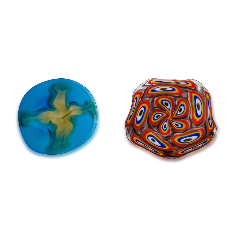 (2) total items including a multi-colored disc dated 1996 by Millard; together with an unsigned blue and yellow disc