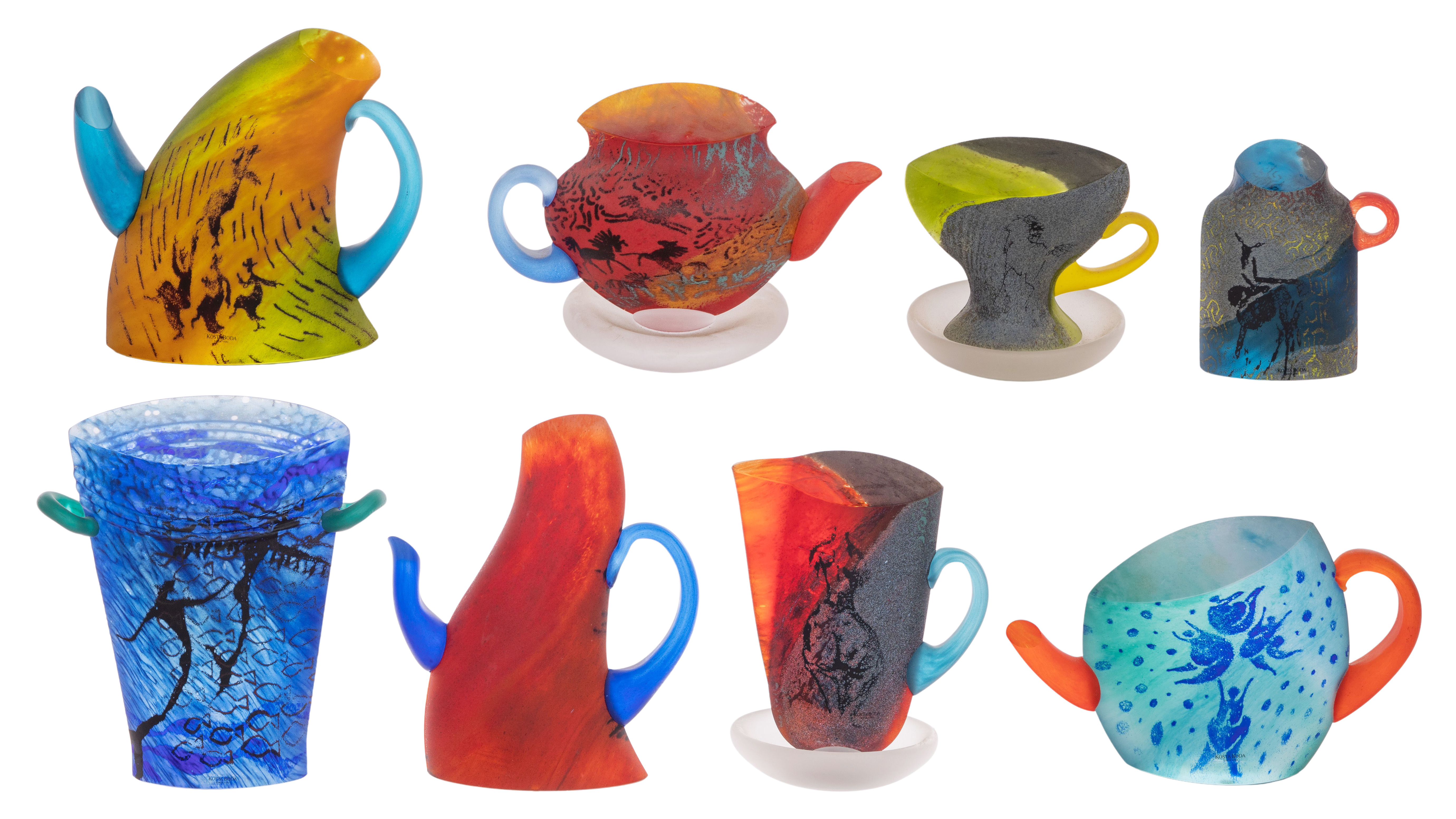 Kjell Engman for Kosta Boda Art Glass Beverage Service