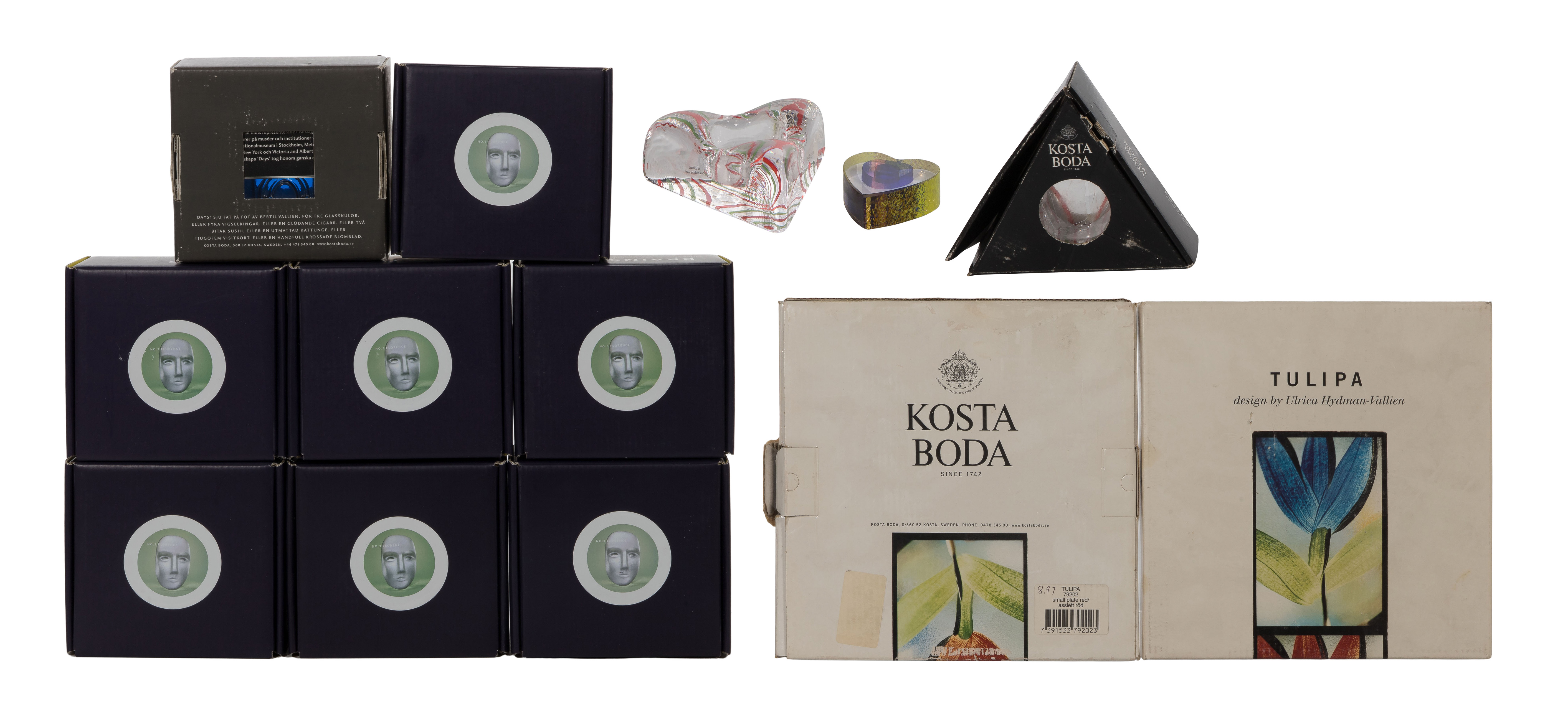 (13) items including (7) Florence Brains, a Wednesday Day Dish and a Heart by Bertil Vallien and (2) Piece of Cake votive candle holders, a red and a yellow Tulipa plates by Ulrica Hydman-Vallien, all but Heart and a Piece of Cake having original boxes