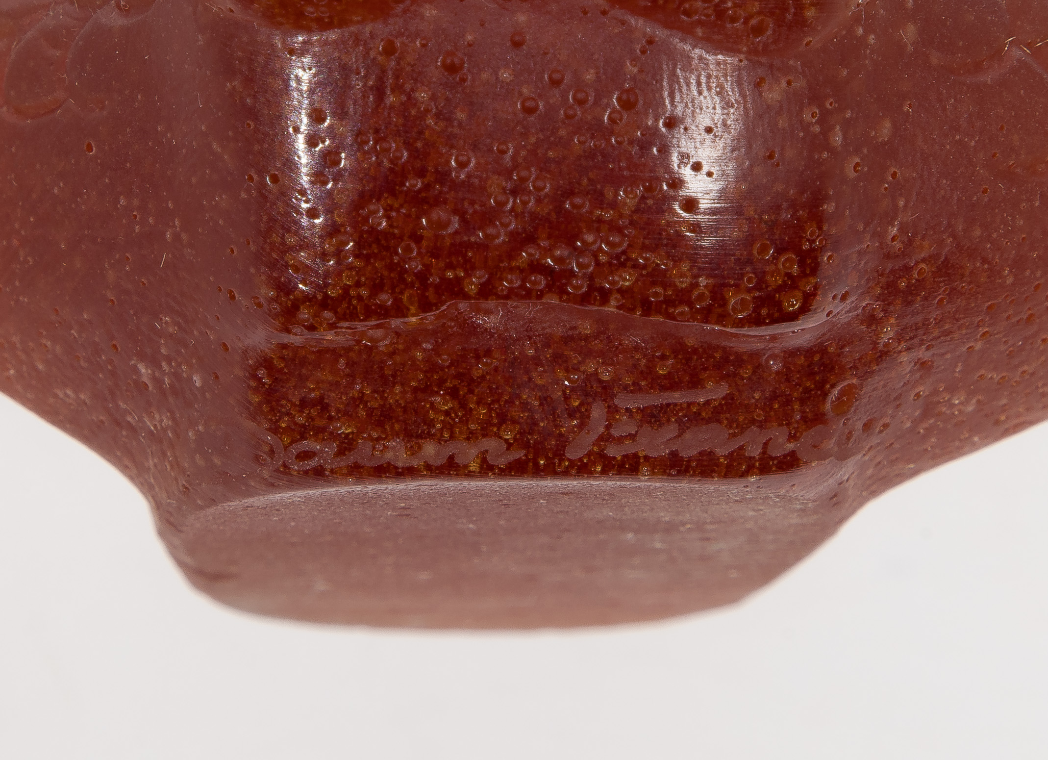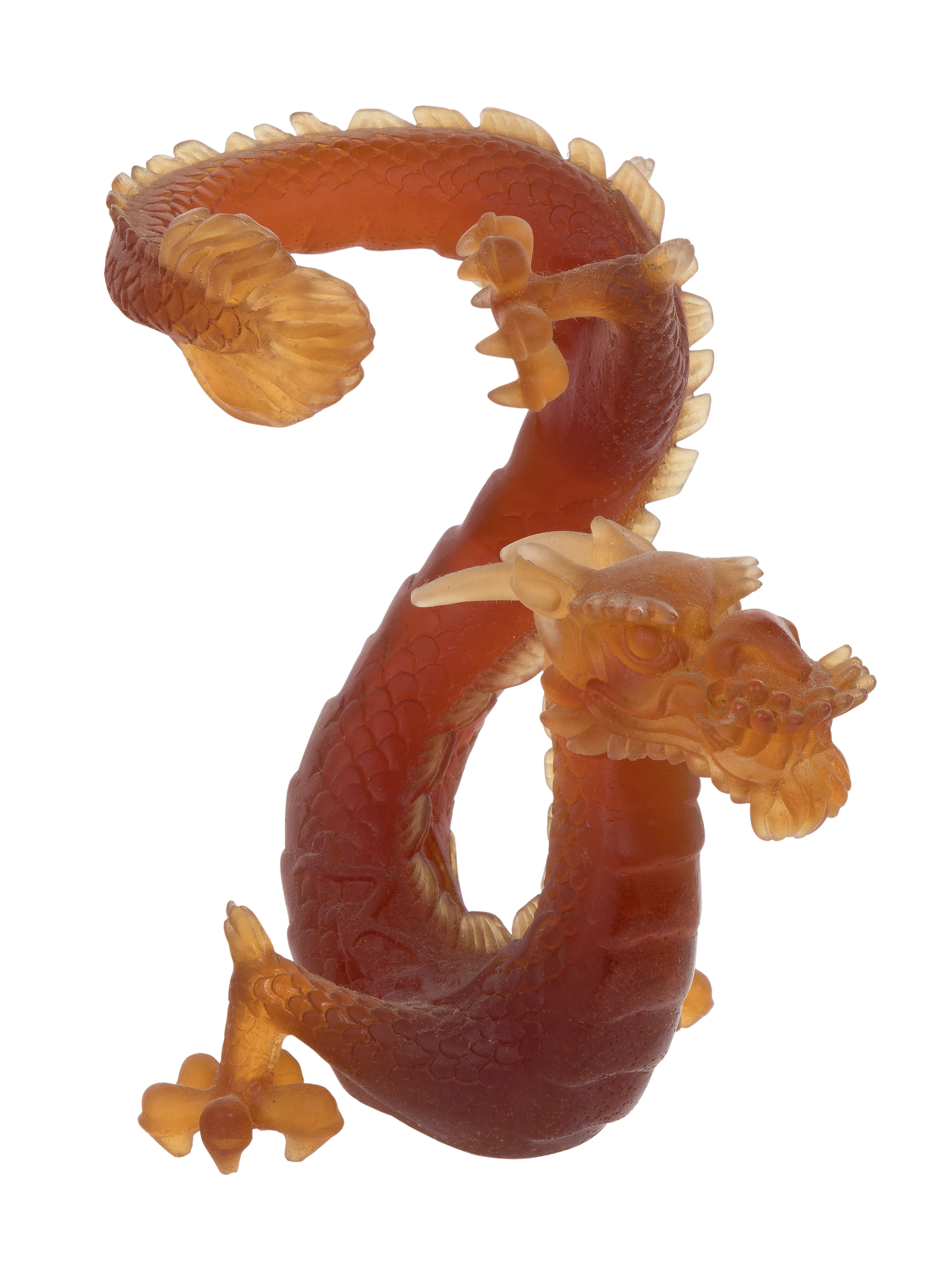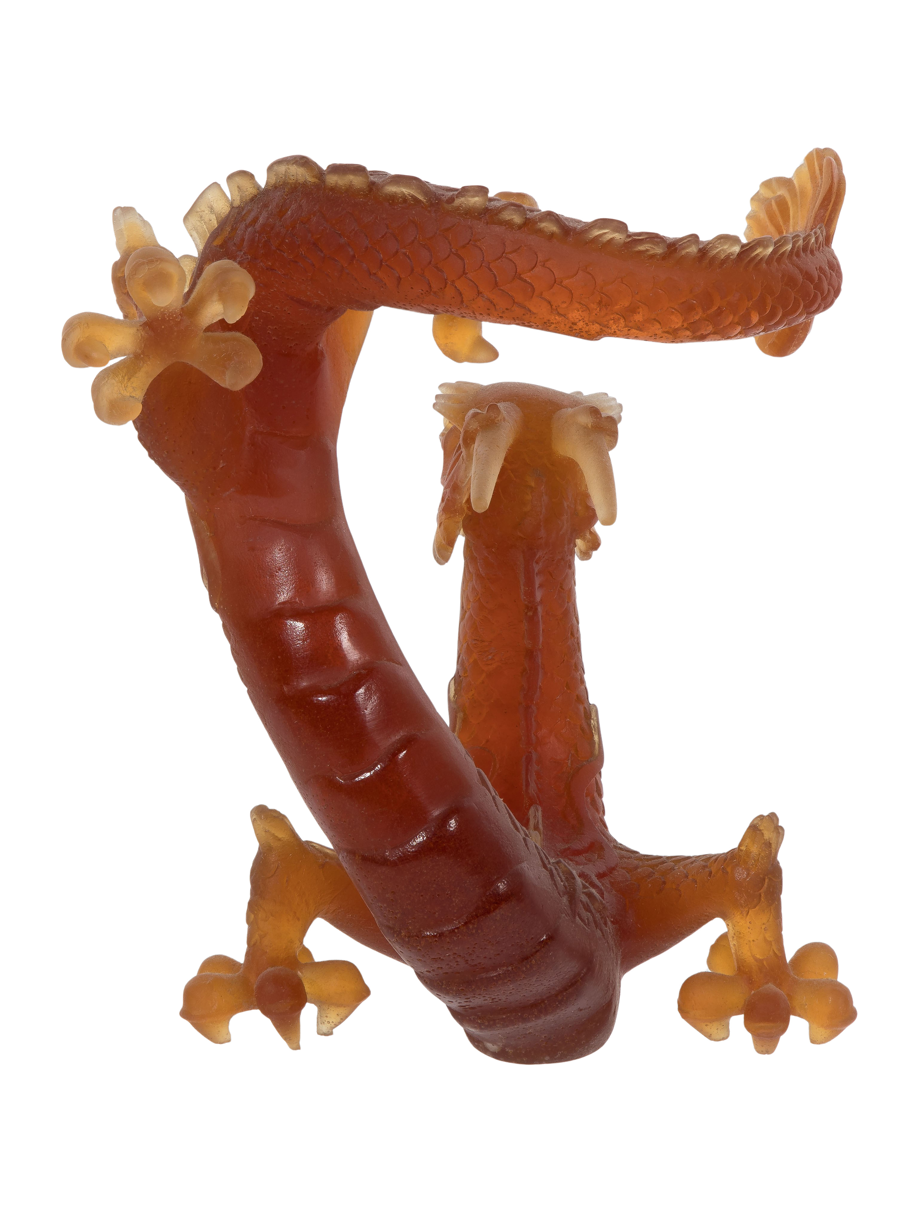 Depicting a dragon on its fore feet having a raised tail, marked ‘Daum France’