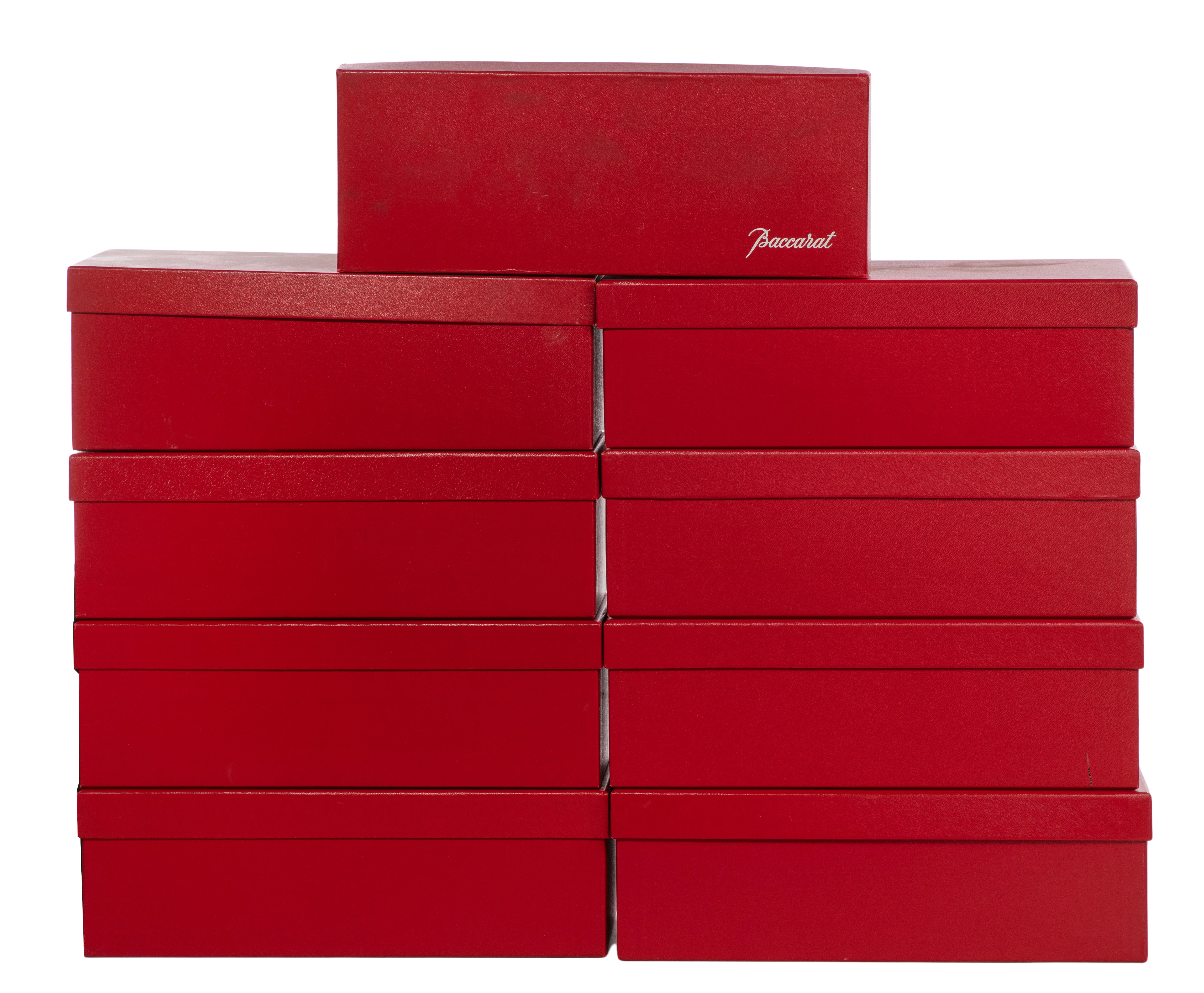 (9) flutes including (4) Cobalt Blue, (3) Ruby and (2) Emerald, all having original boxes