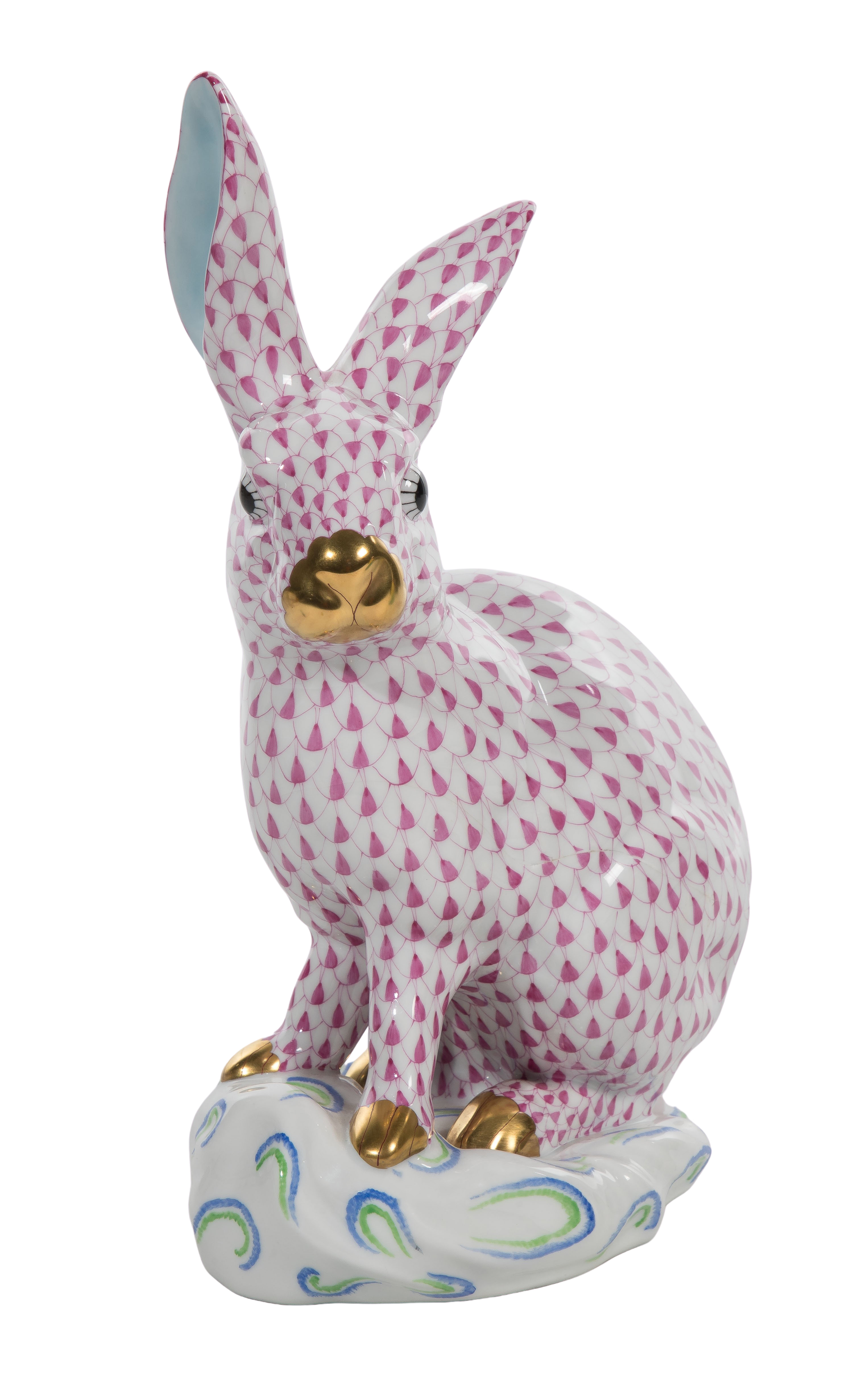 Herend Pink Fishnet Rabbit Porcelain Figurine
