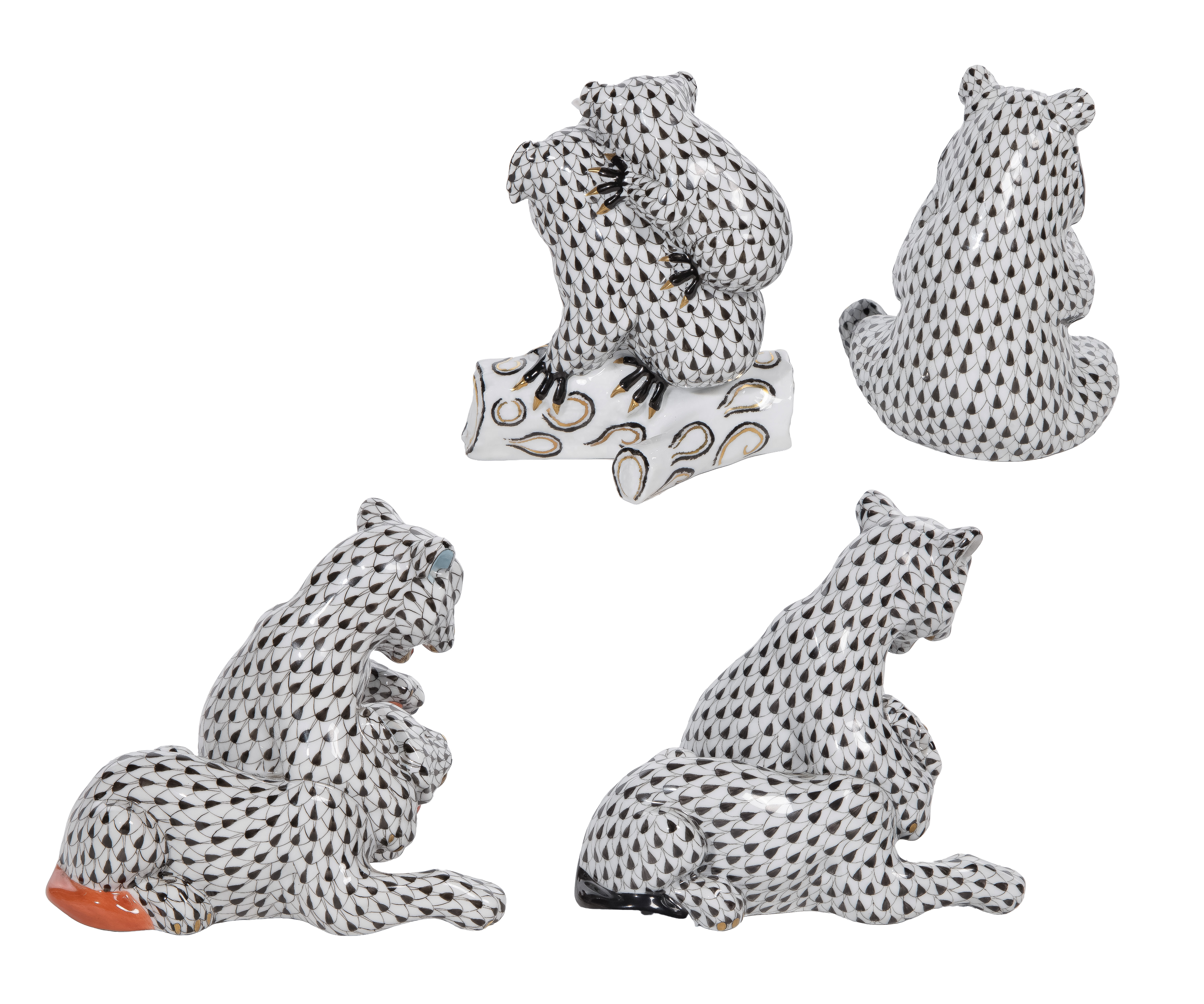 Herend Black Fishnet Porcelain Figurines